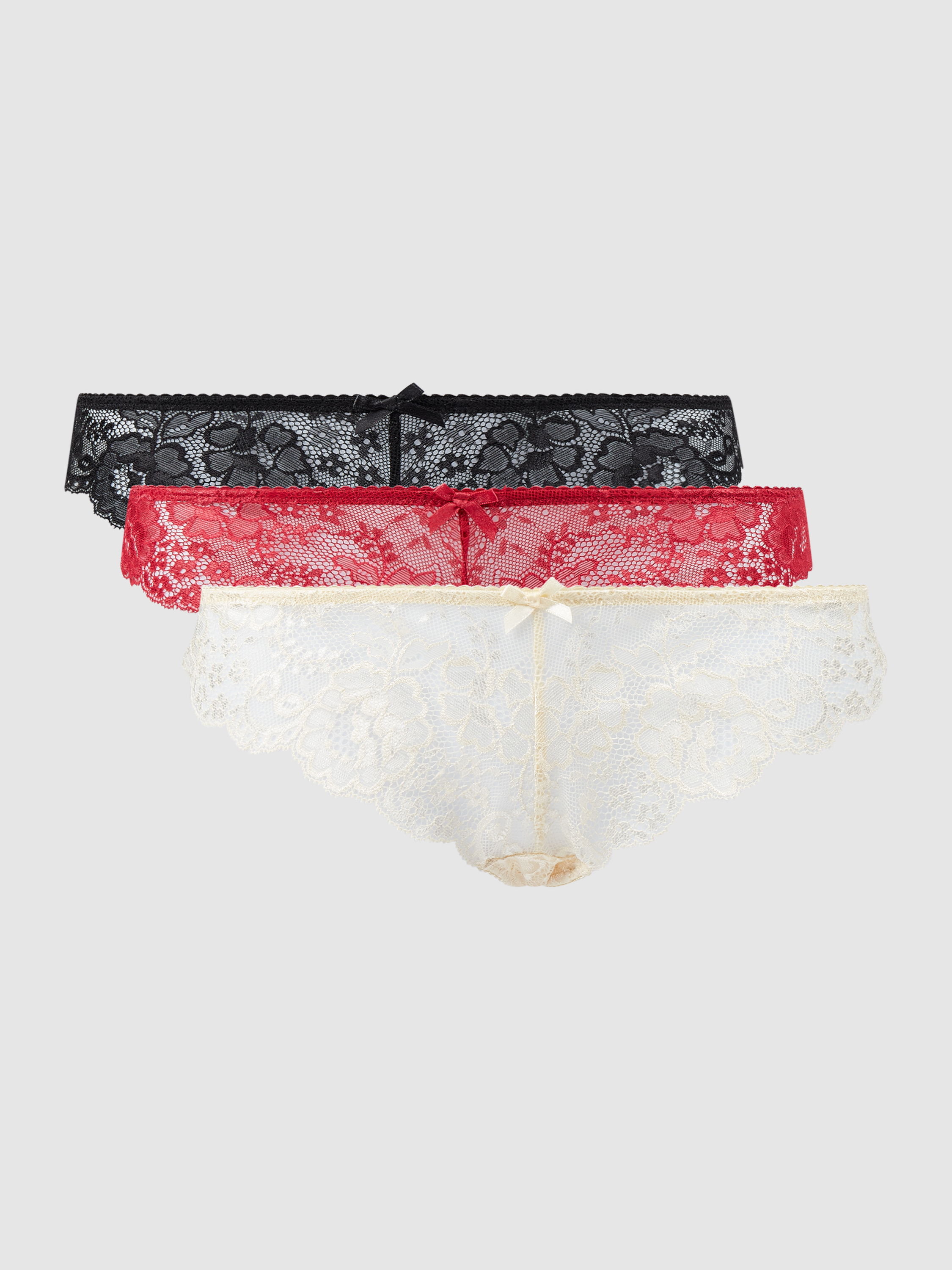 Figi z koronki w zestawie 3 szt. - czarny