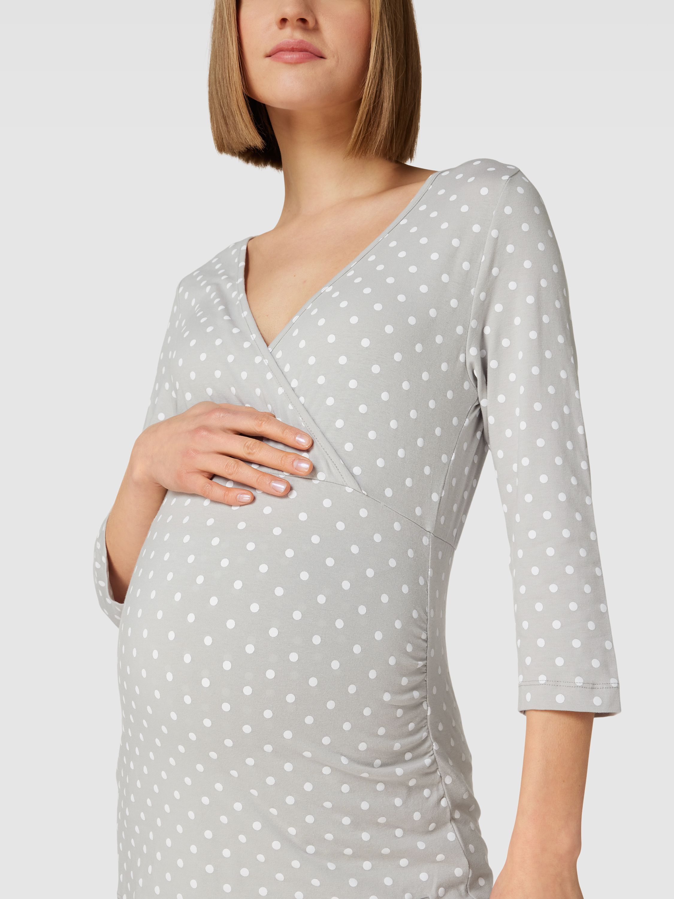 Piżama ciążowa z rękawem o dł. 3/4, o kroju odpowiednim do karmienia piersią - średnioszary