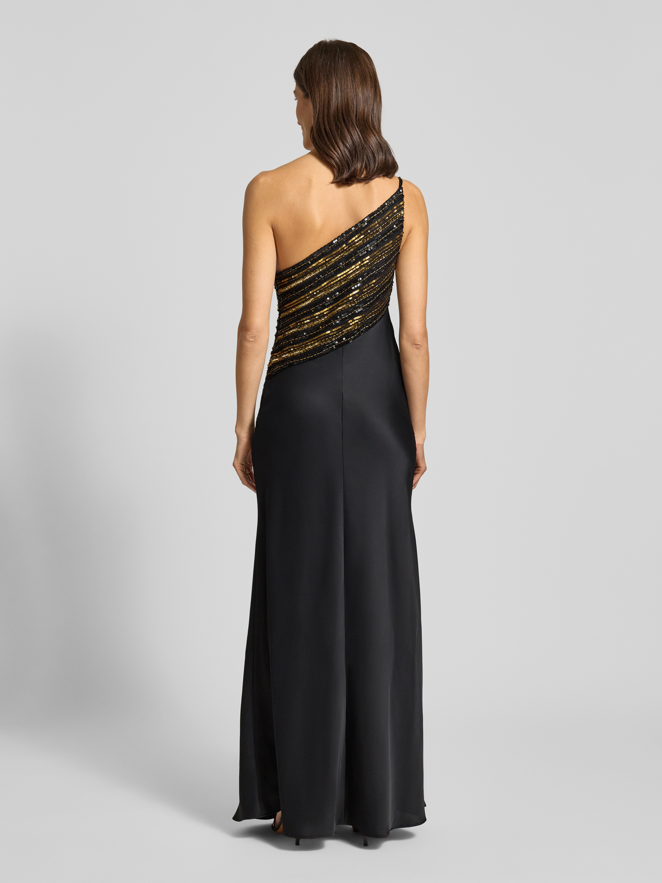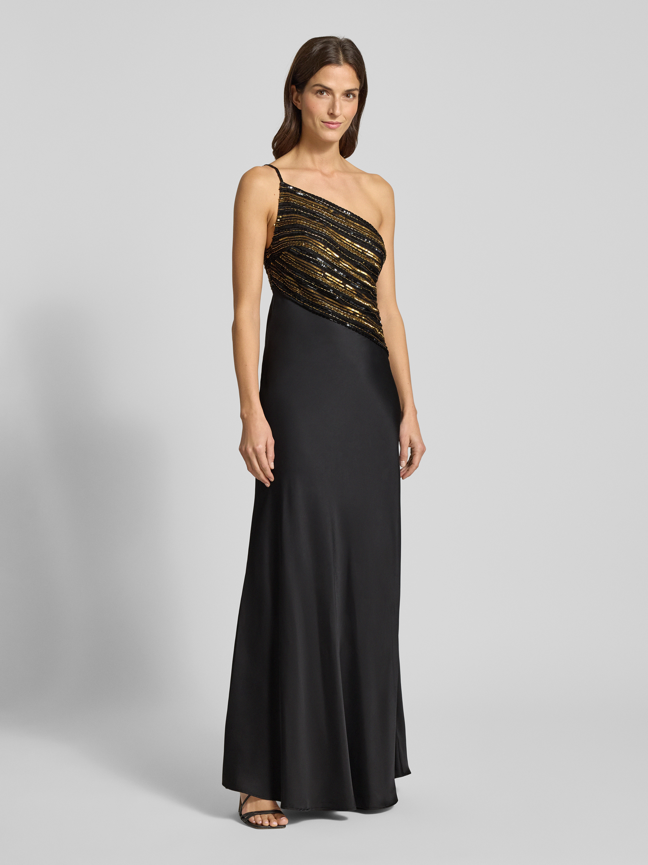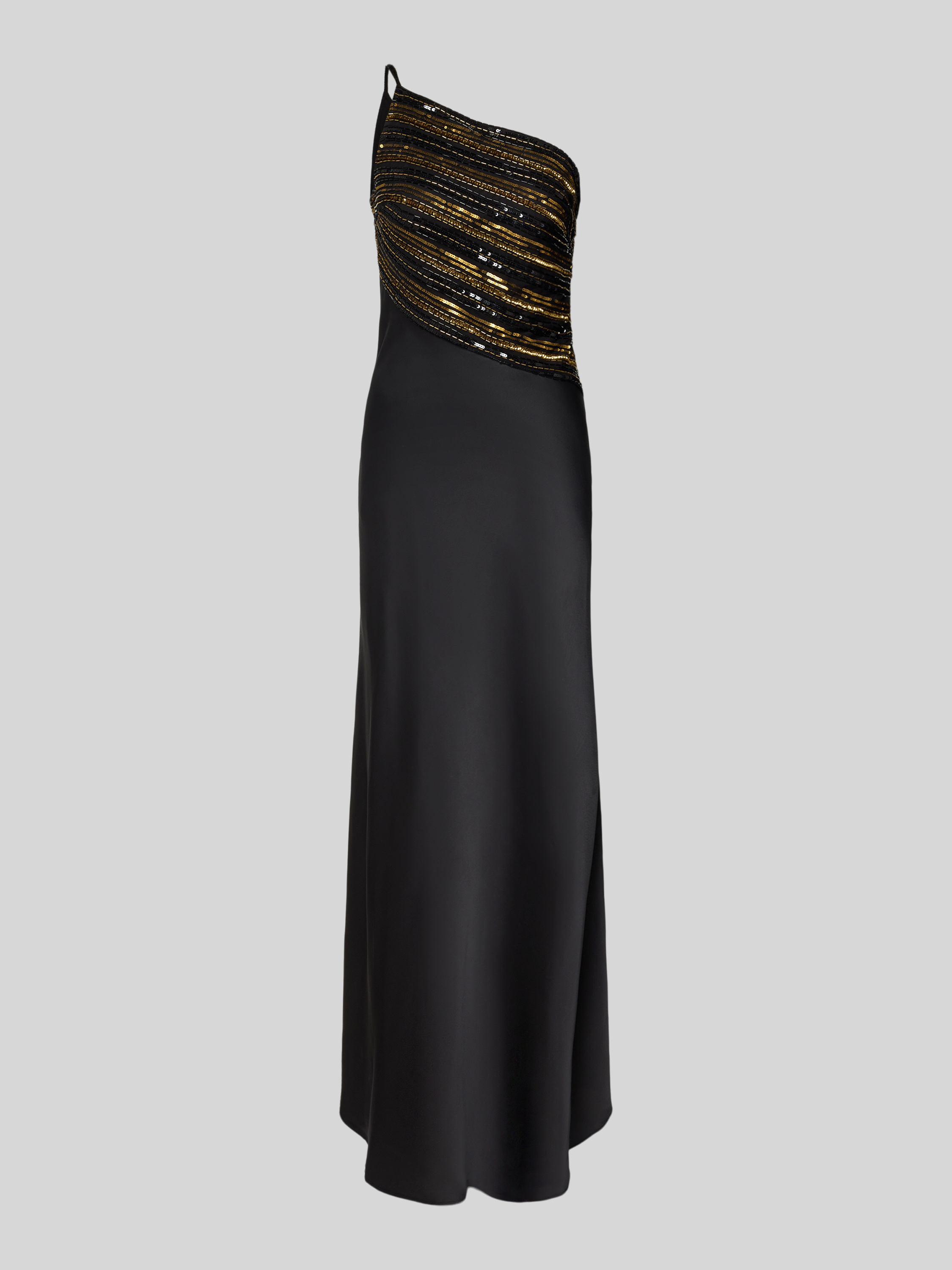 Sukienka wieczorowa o kroju na jedno ramię z perełkami i cekinami - czarny
