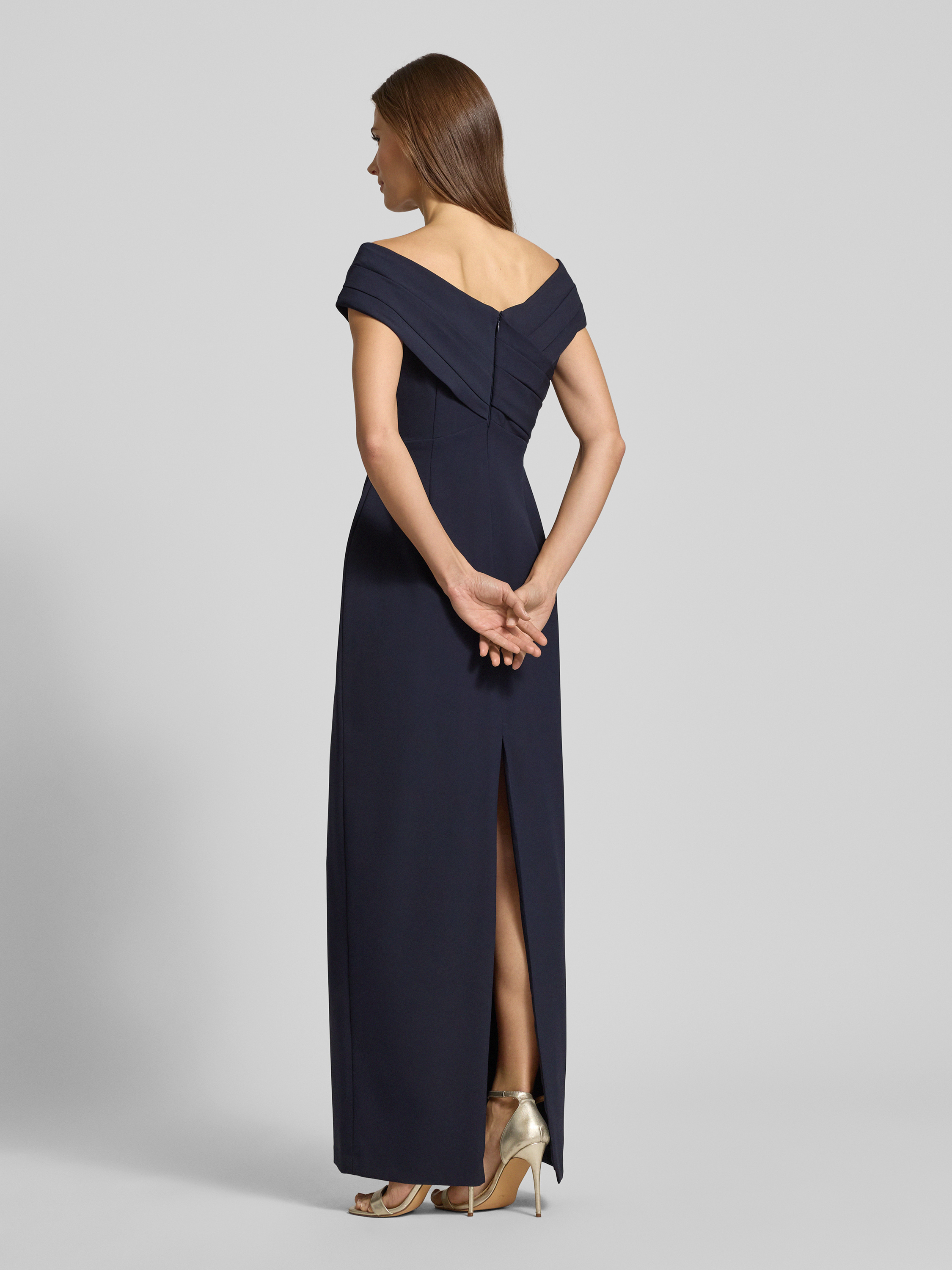 Sukienka wieczorowa z dekoltem carmen model ‘IRENE’ - ciemnoniebieski