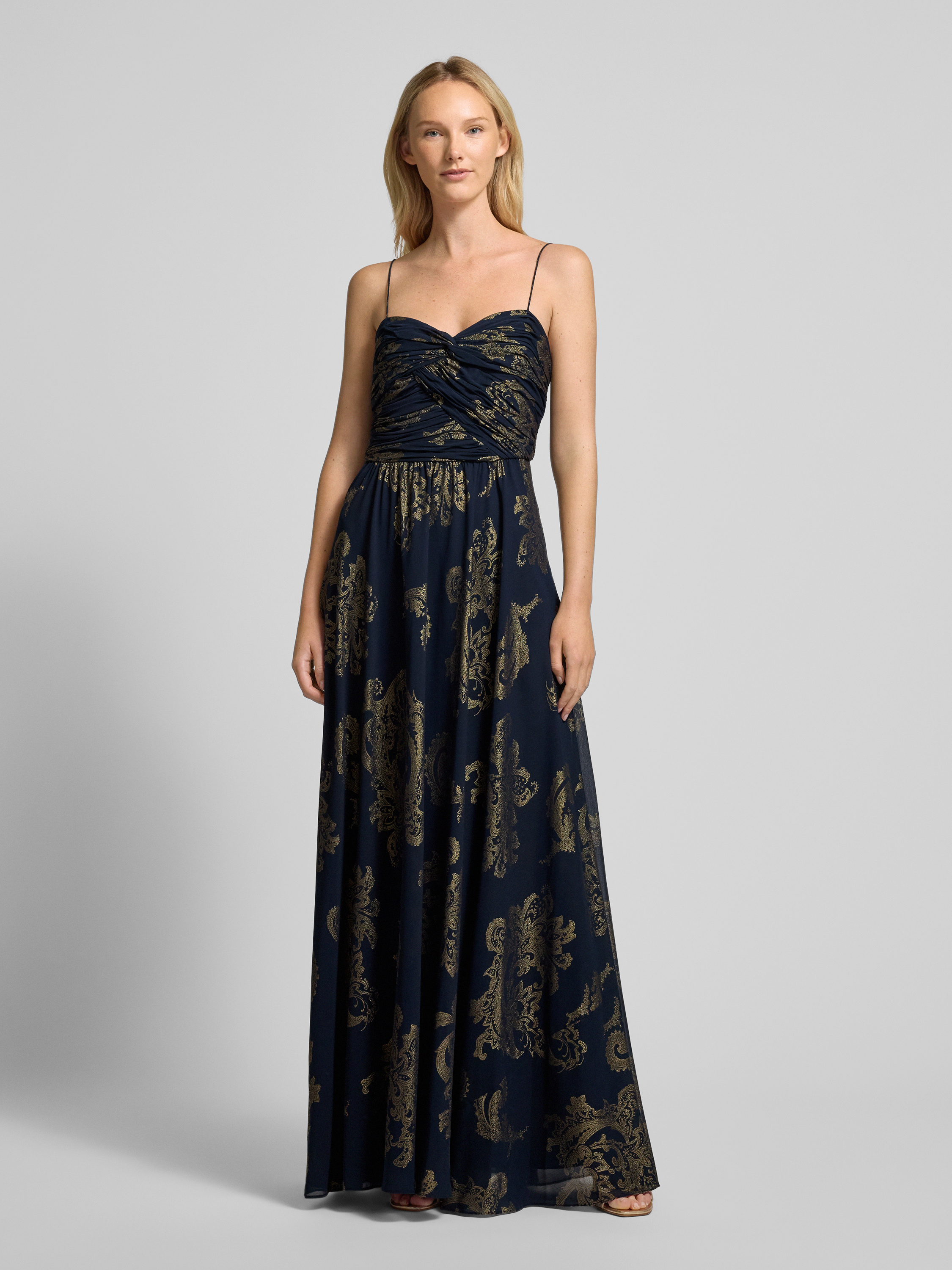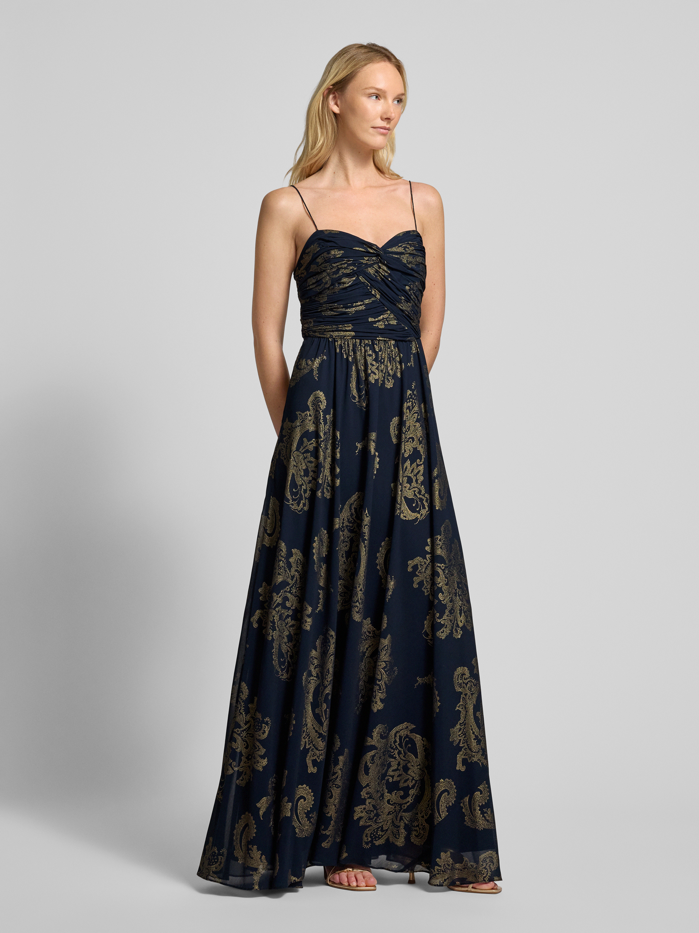 Sukienka wieczorowa z dekoltem w kształcie serca model ‘JACINDRA’ - ciemnoniebieski