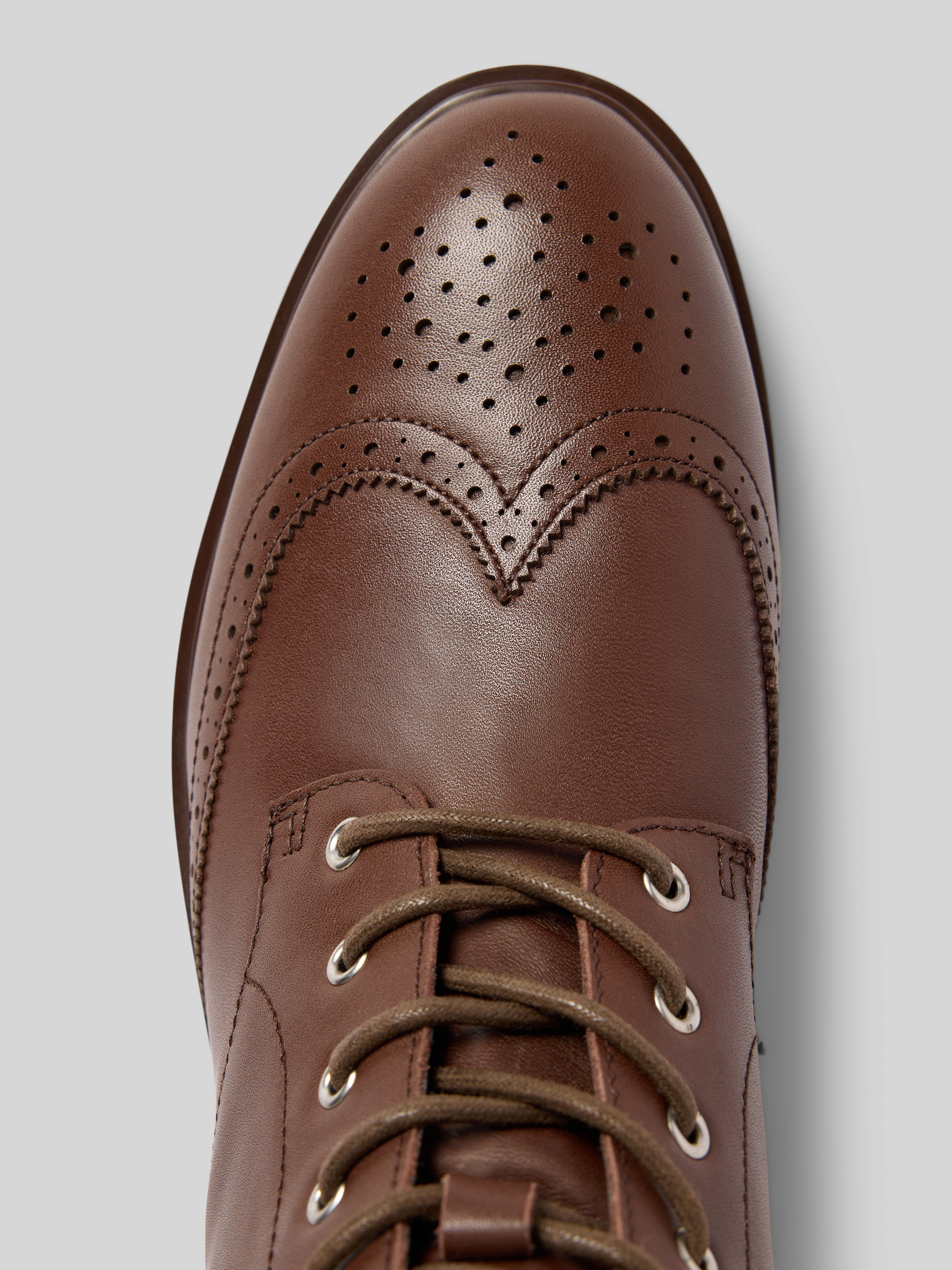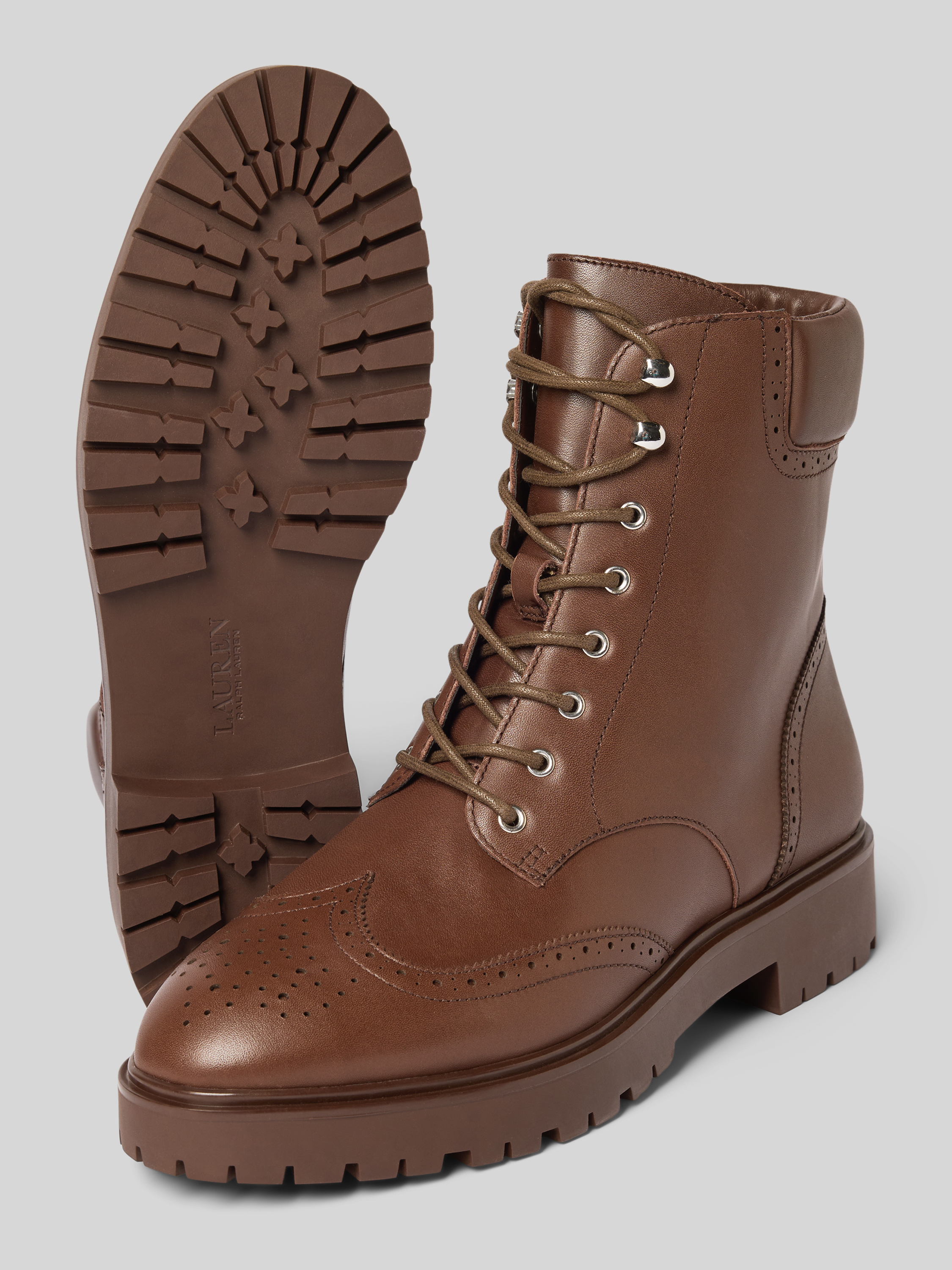 Buty sznurowane ze skóry z ozdobnymi szwami model ‘ALYSN’ - średniobrązowy