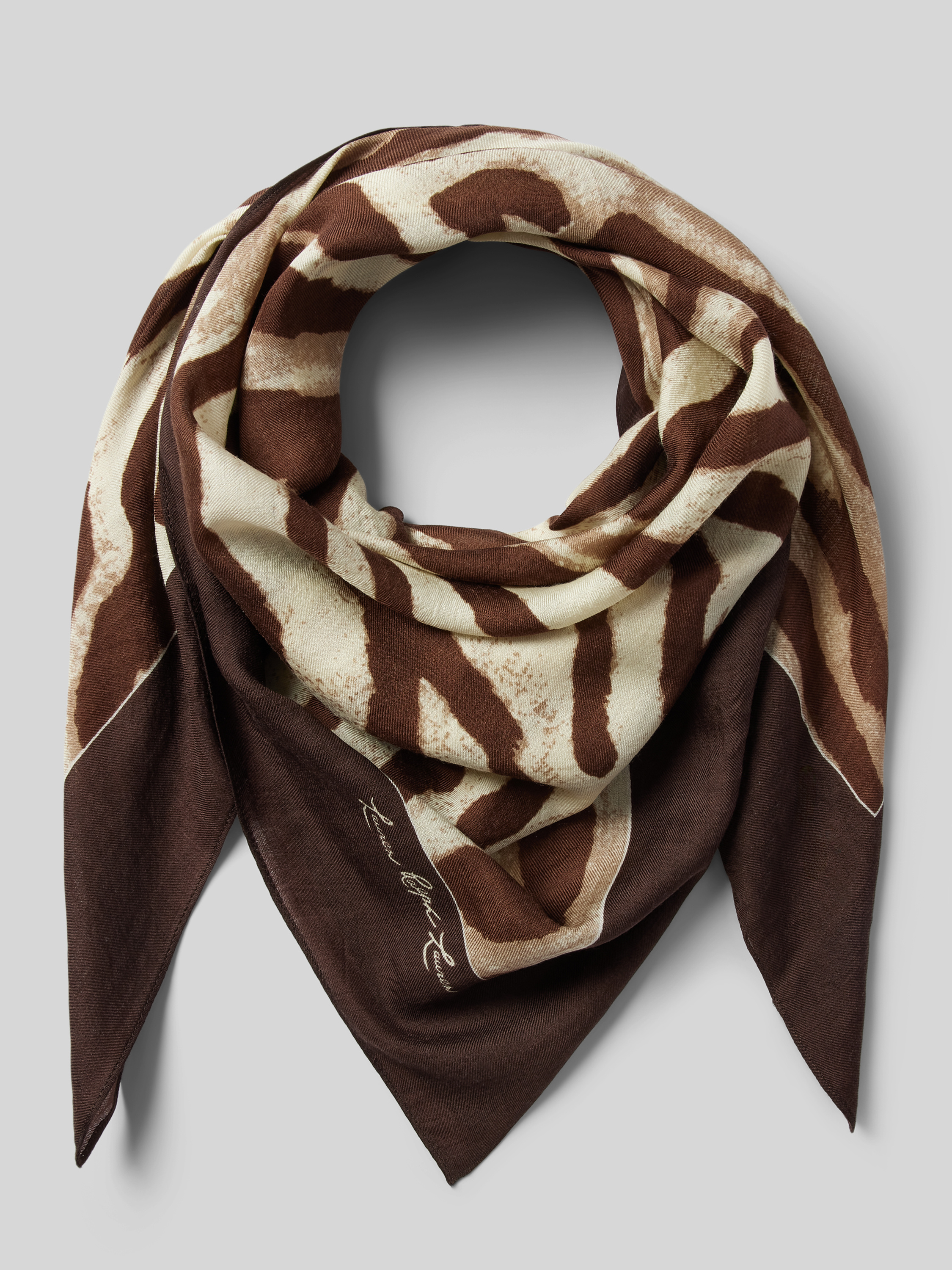 Chusta z mieszanki wełny i jedwabiu model ‘ZEBRA’ - złamany biały