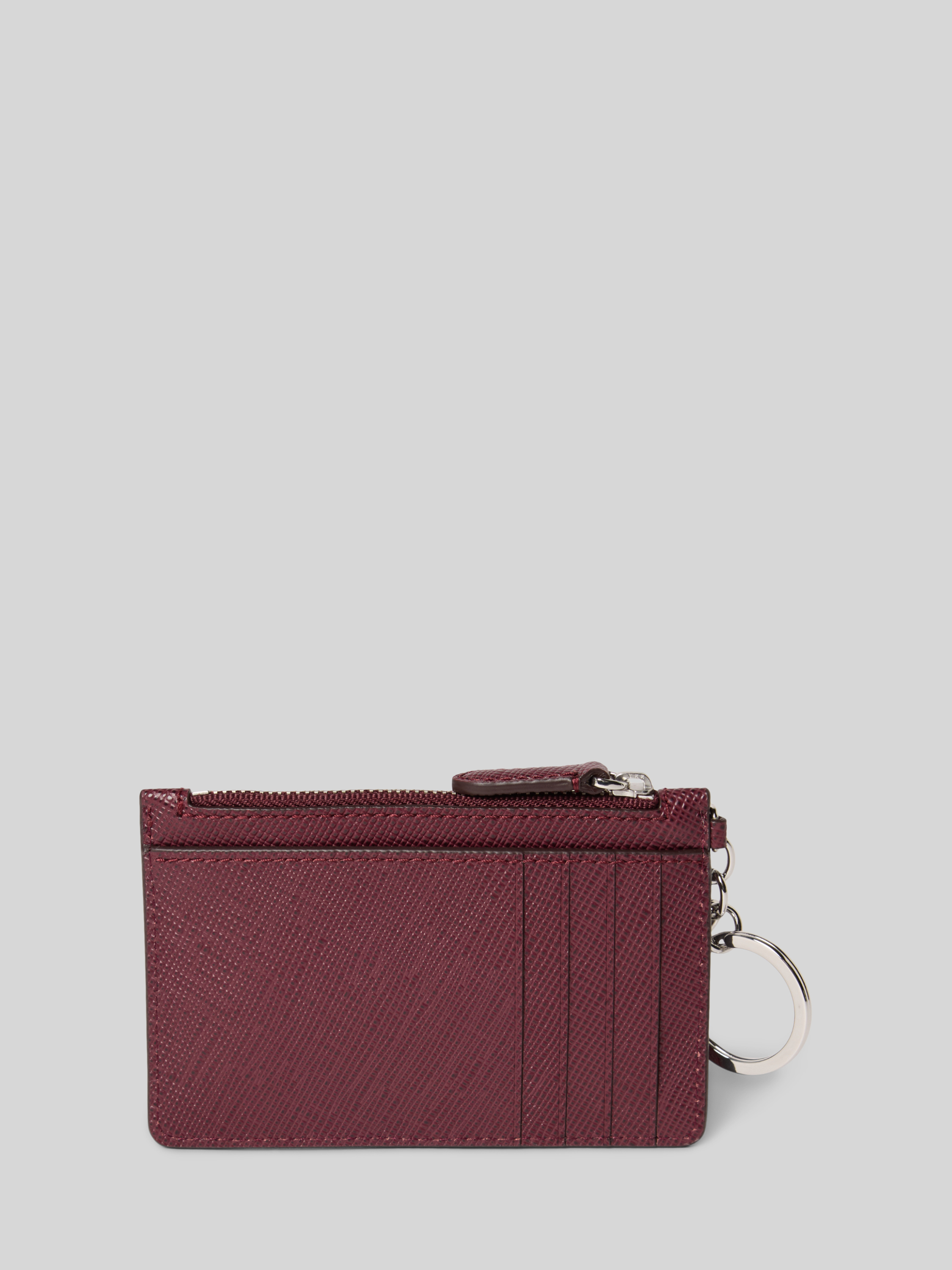 Etui na karty ze skóry bydlęcej z karabińczykiem - ciemnobrązowy