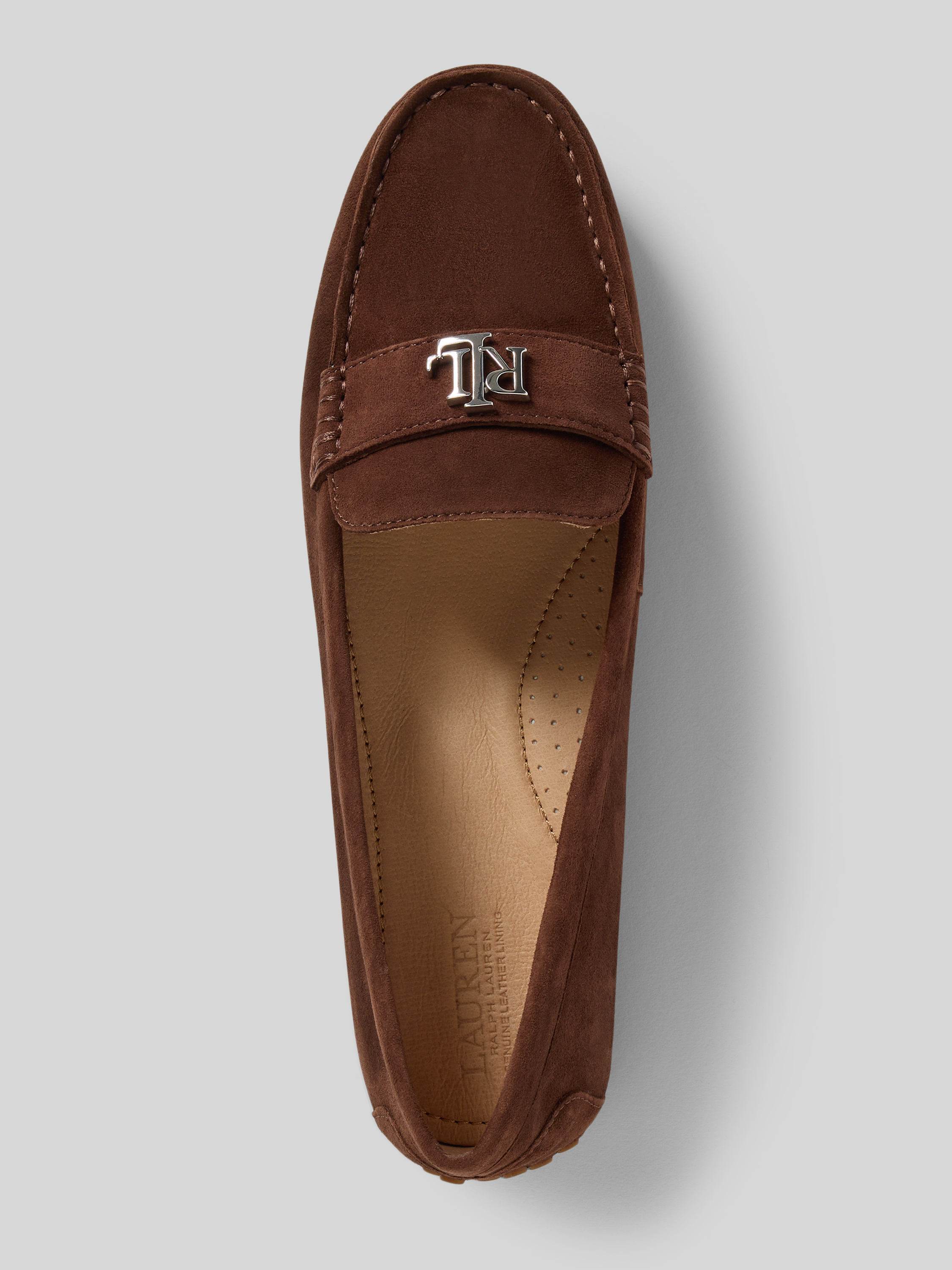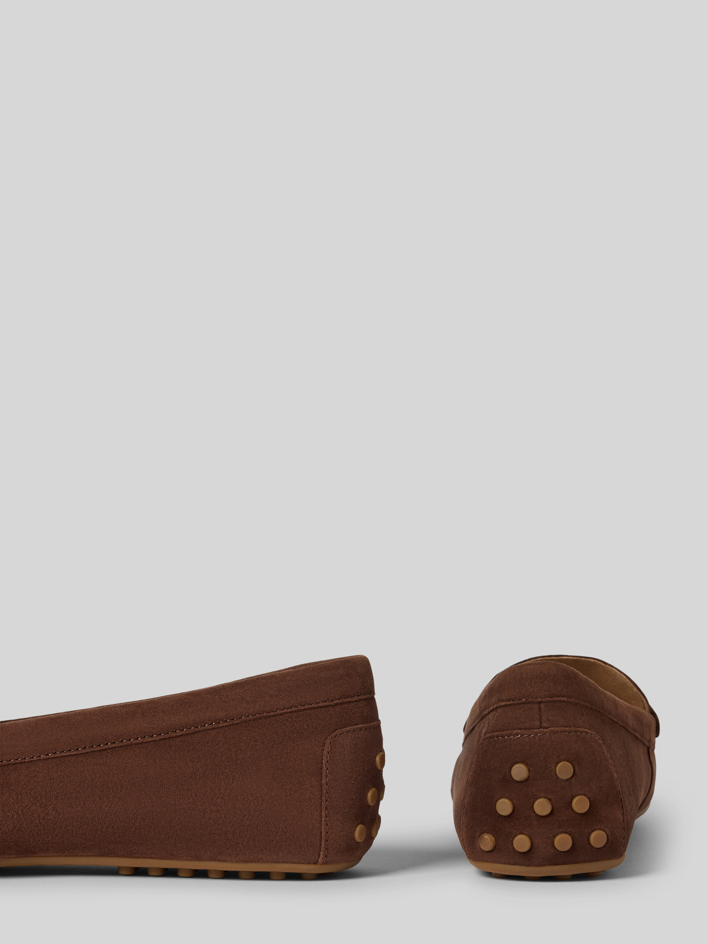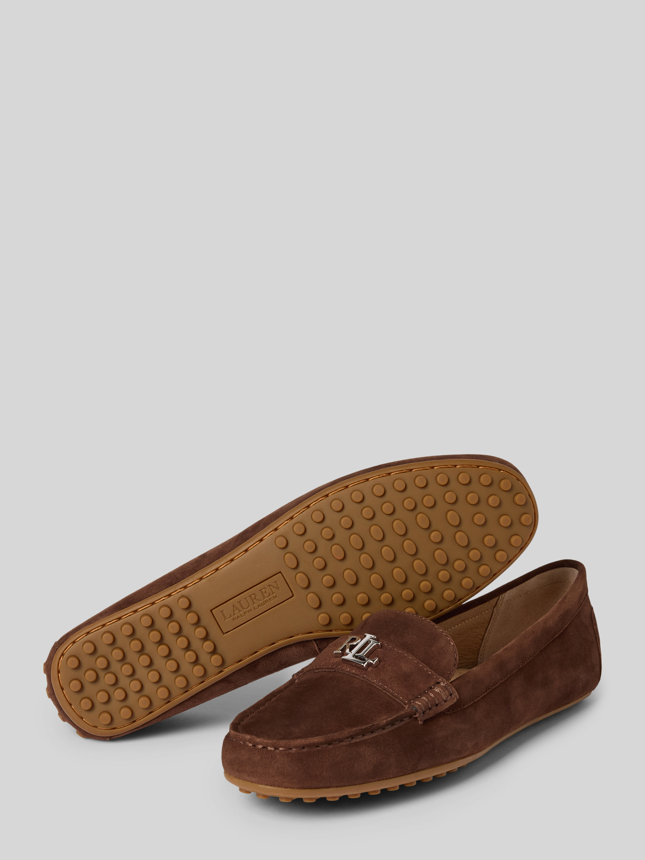 Klapki skórzane z aplikacją z logo model ‘BARNSBURY’ - średniobrązowy
