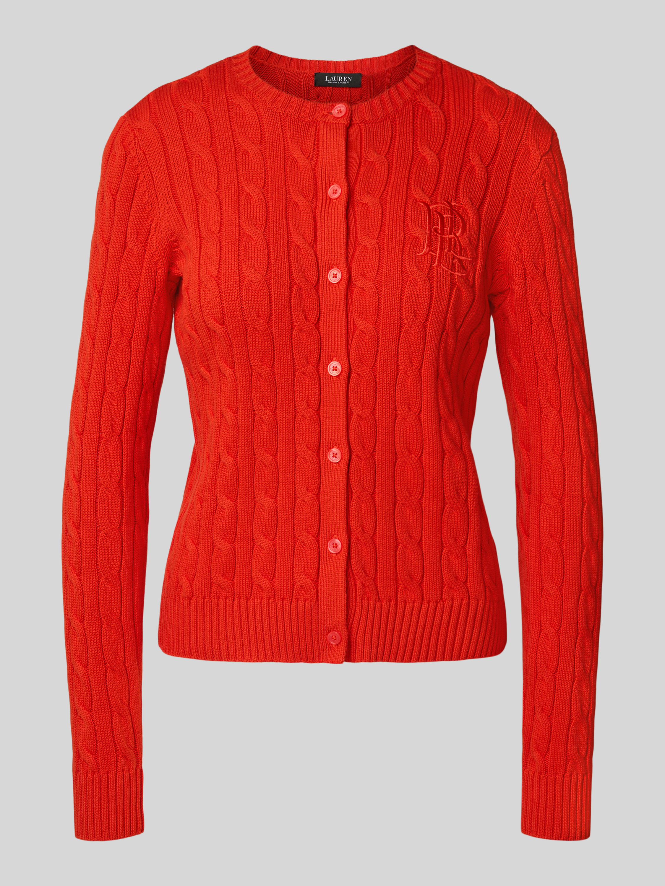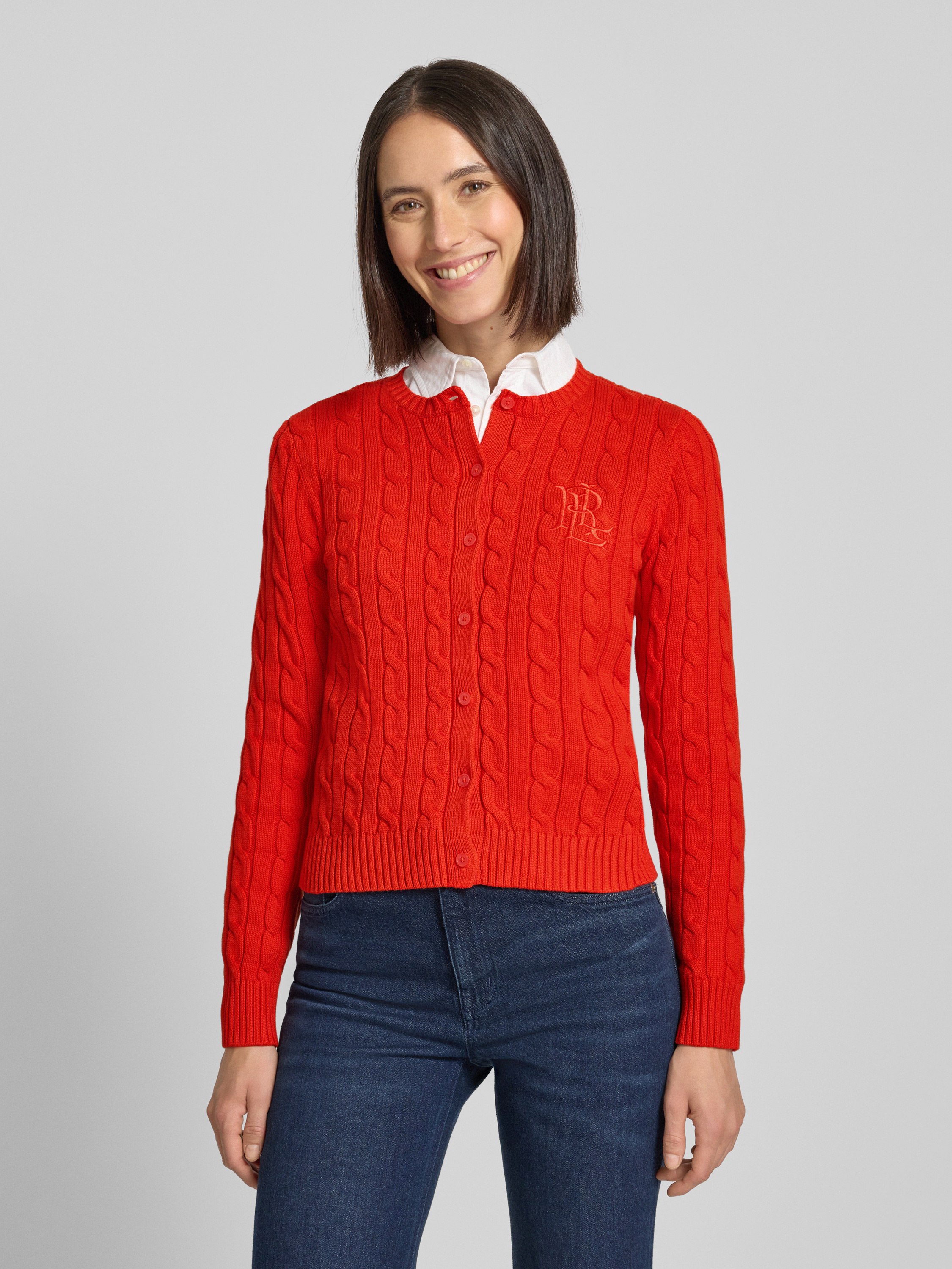 Kurtka z dzianiny ze ściegiem warkoczowym i wyhaftowanym logo model ‘RALHAN’ - jasnoczerwony