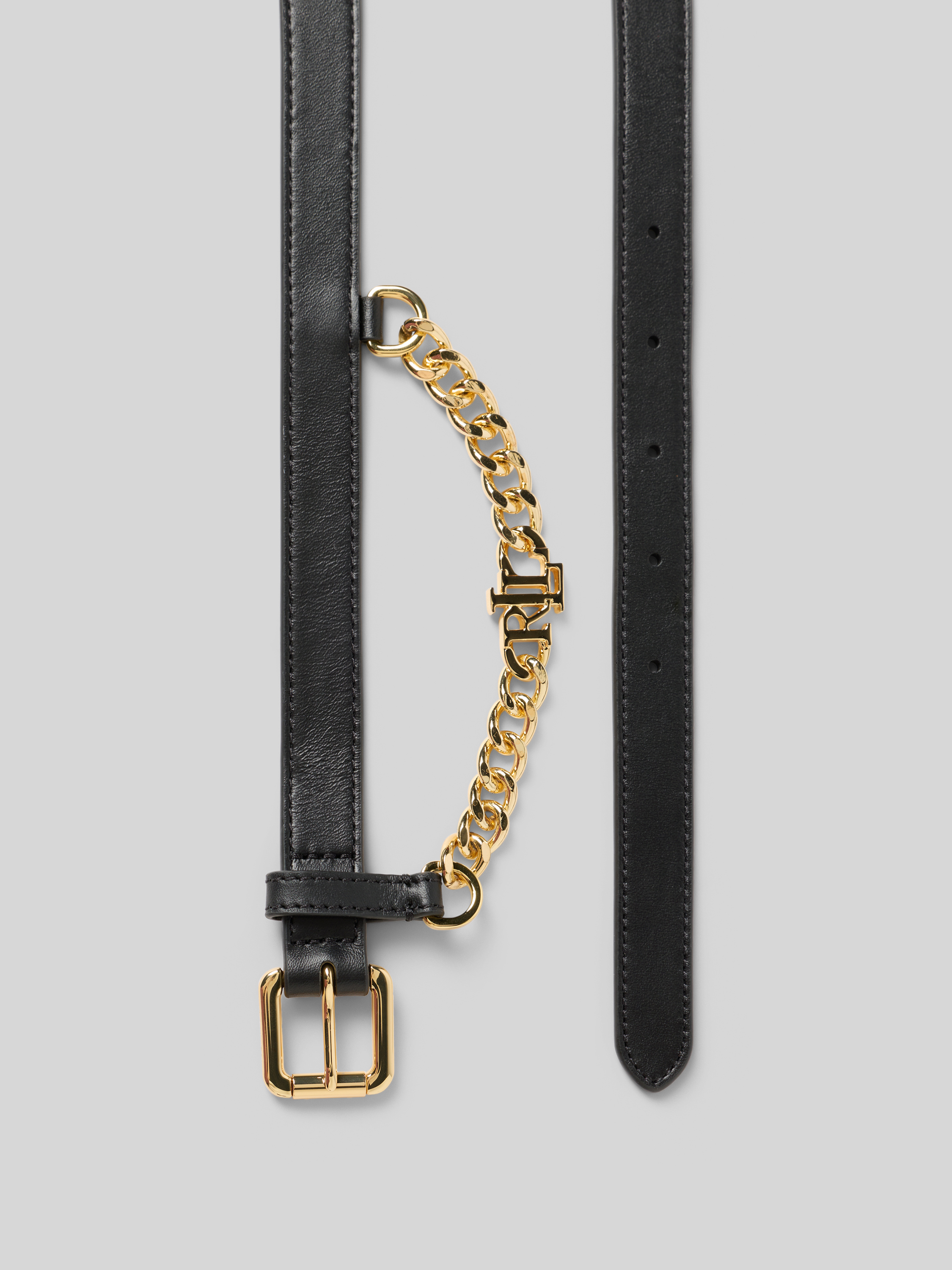 Pasek ze sprzączką i aplikacją z logo - czarny