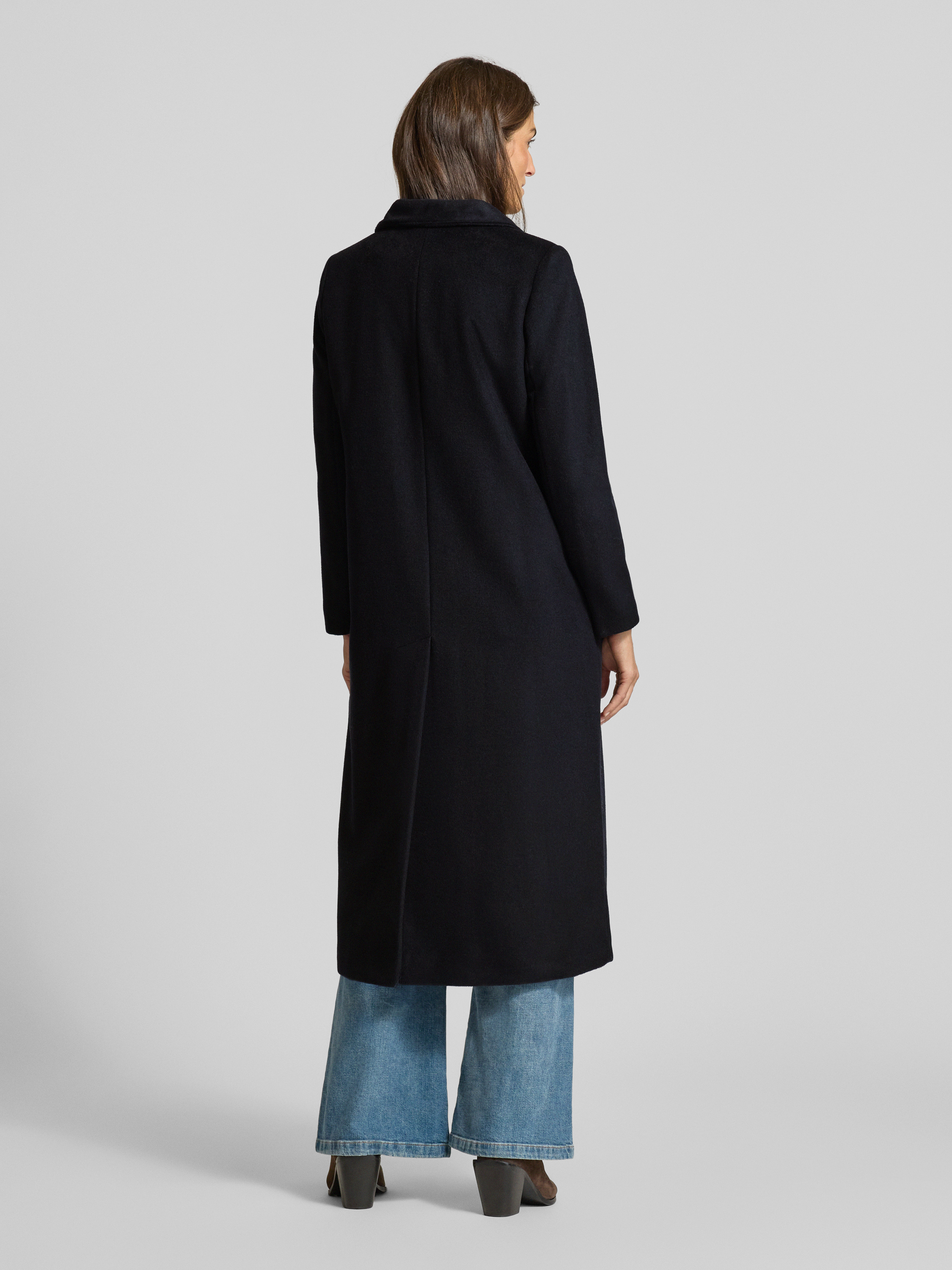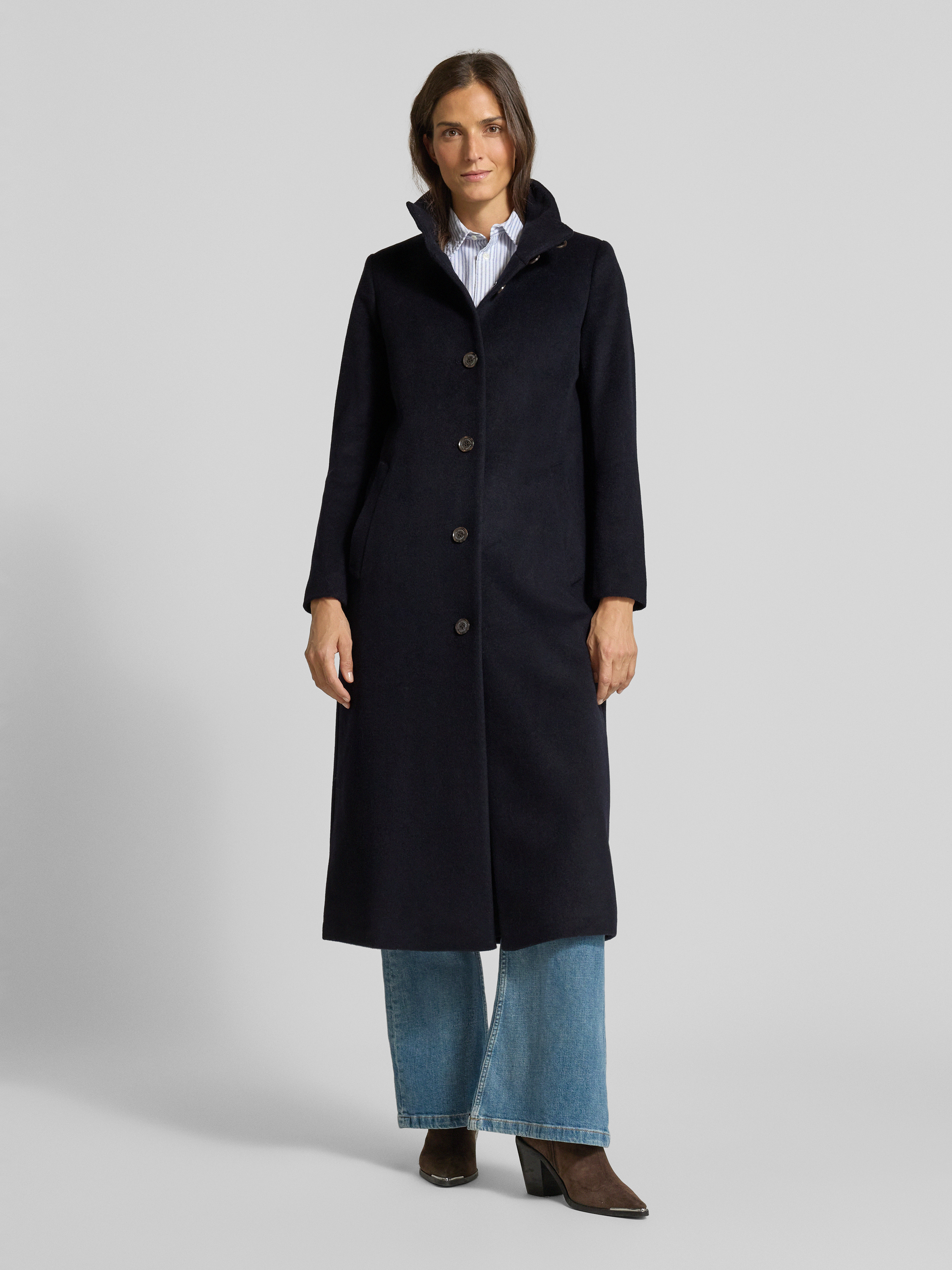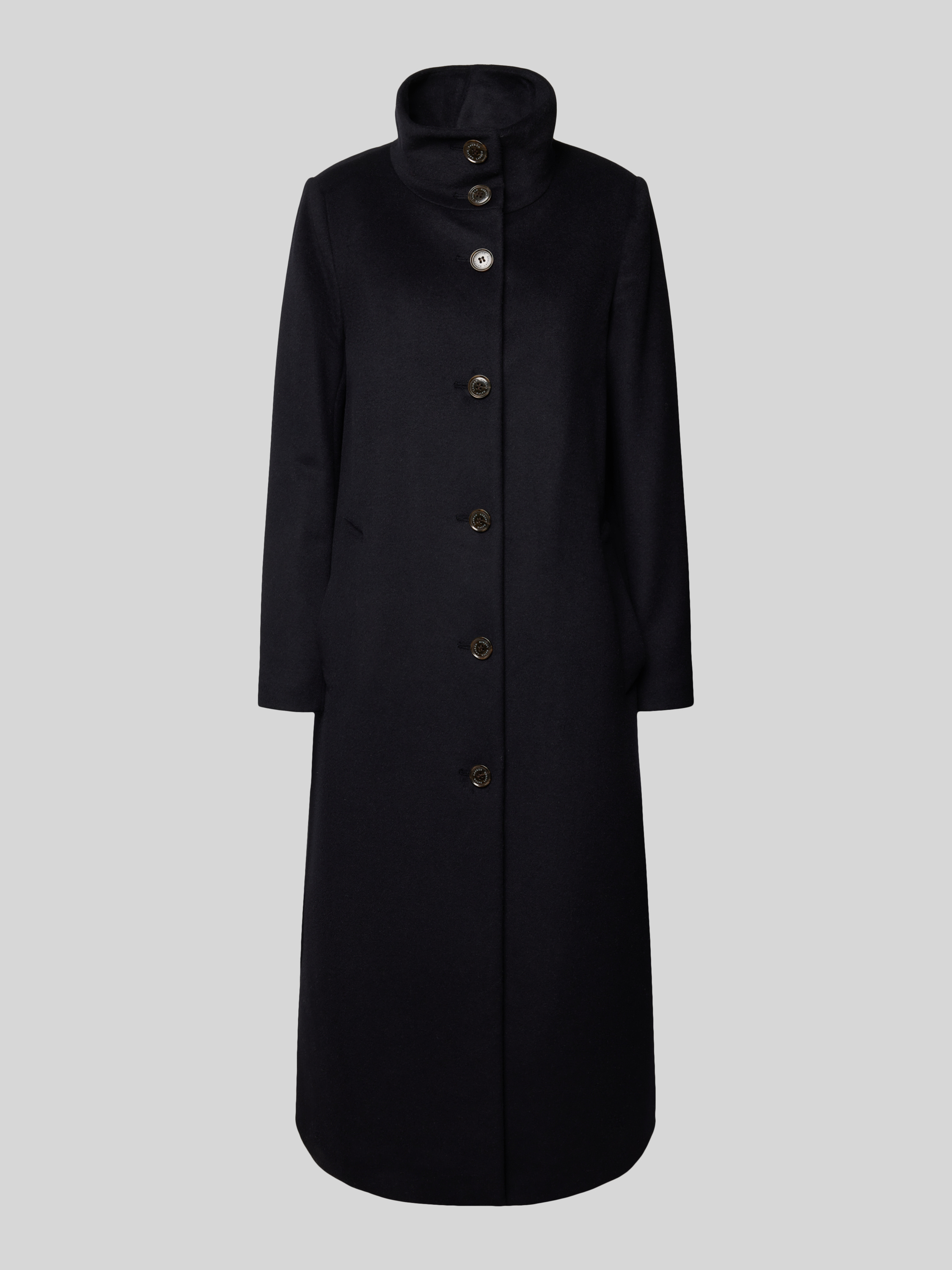 Płaszcz z mieszanki wełny ze stójką - granatowy