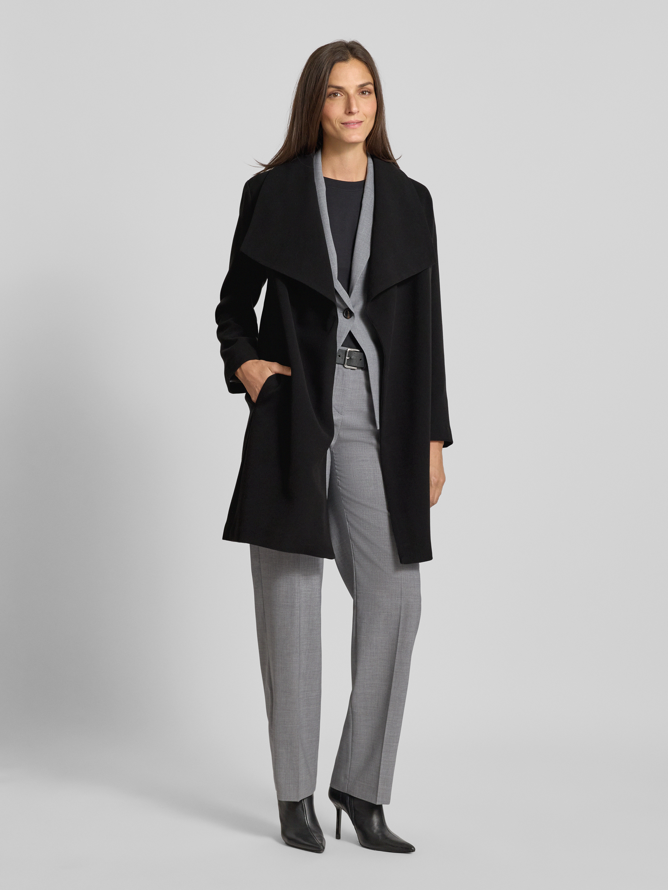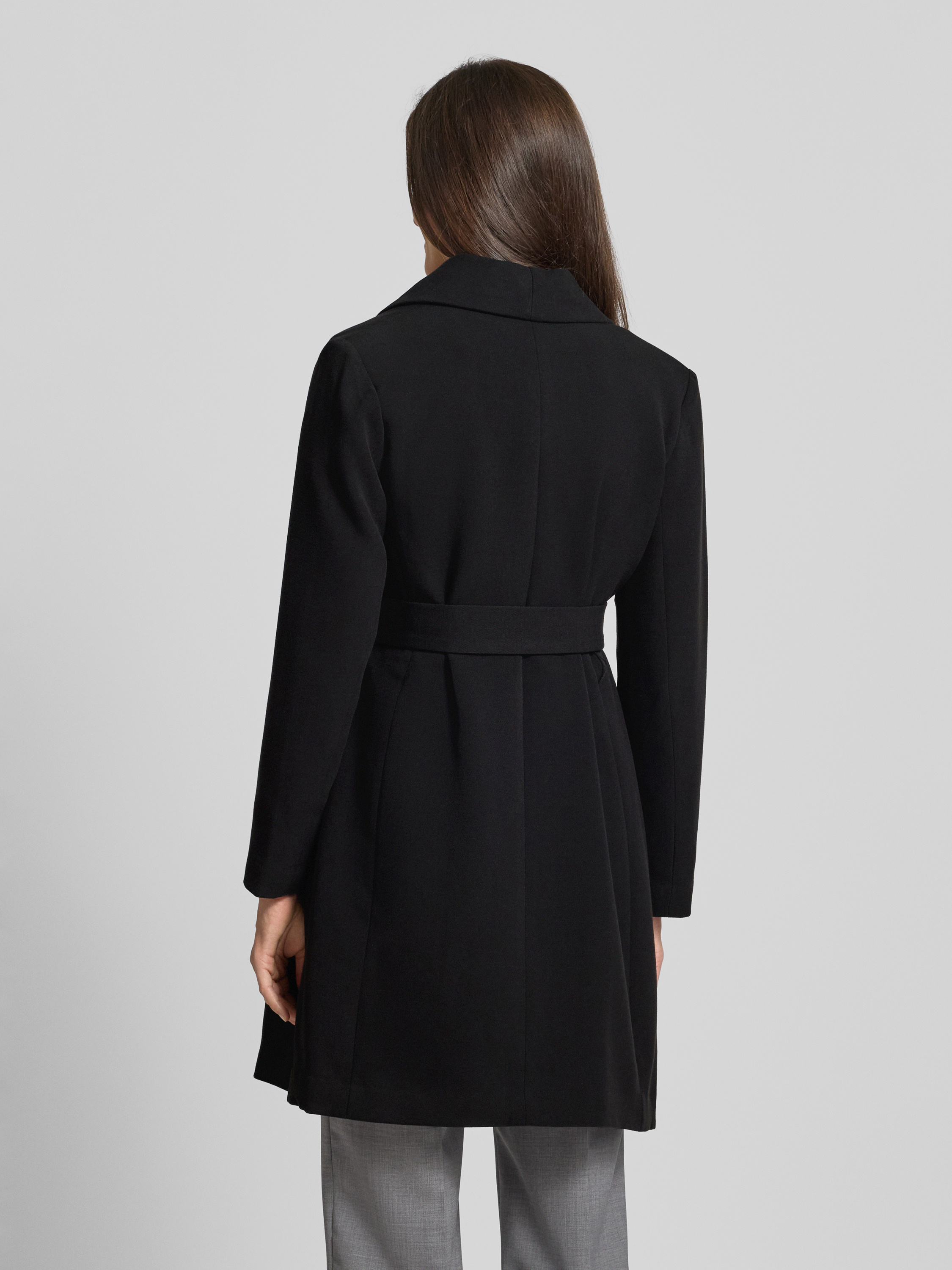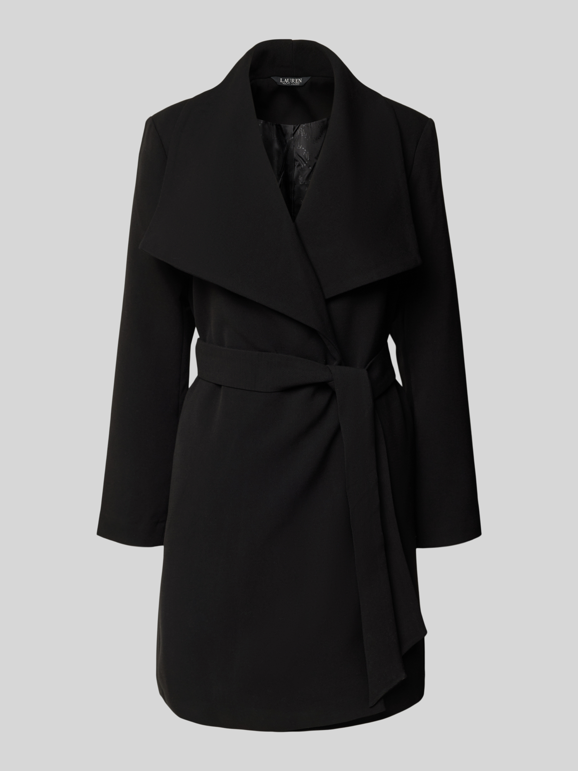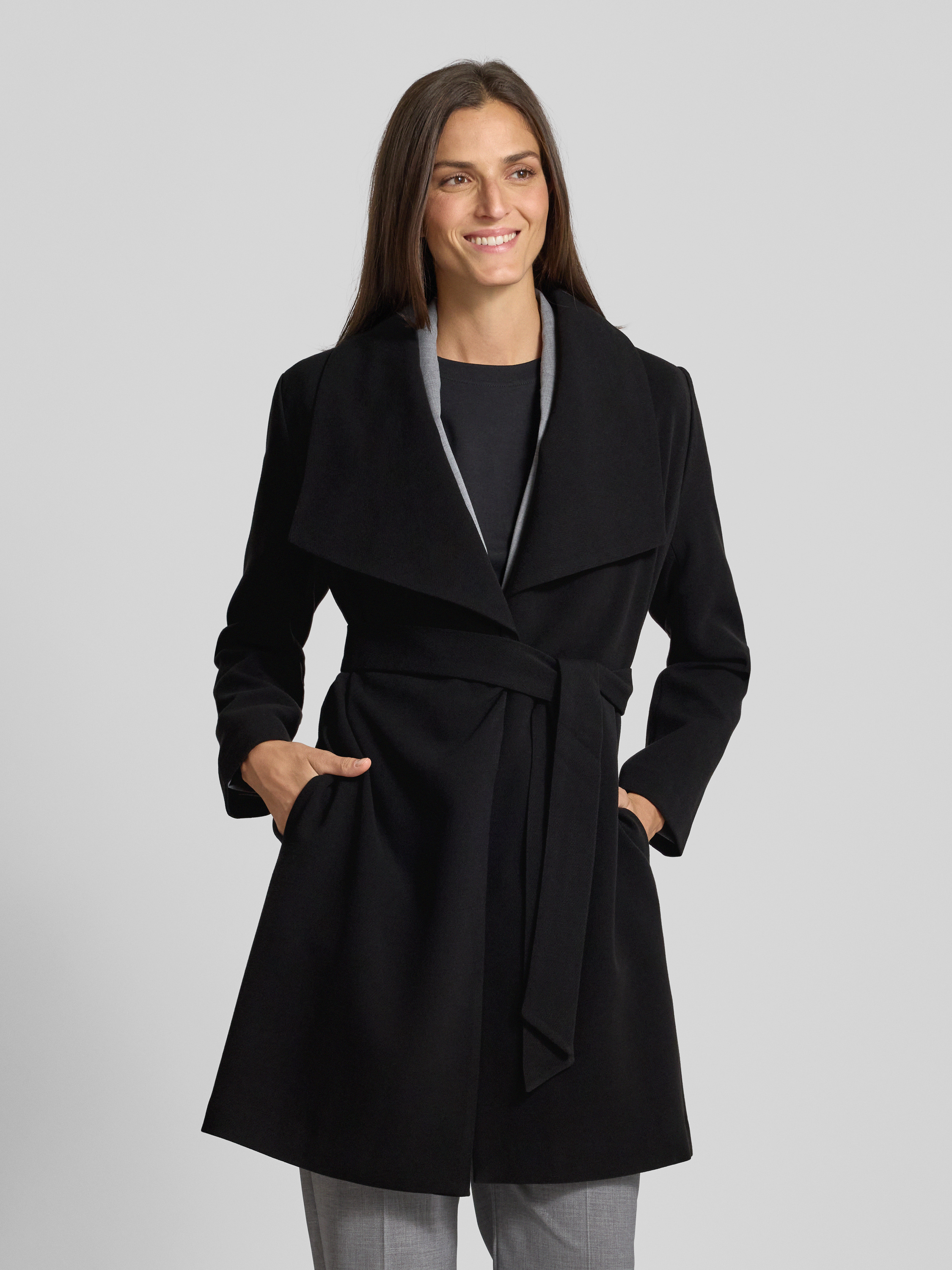 Płaszcz z szerokim kołnierzem i wiązanym paskiem - czarny