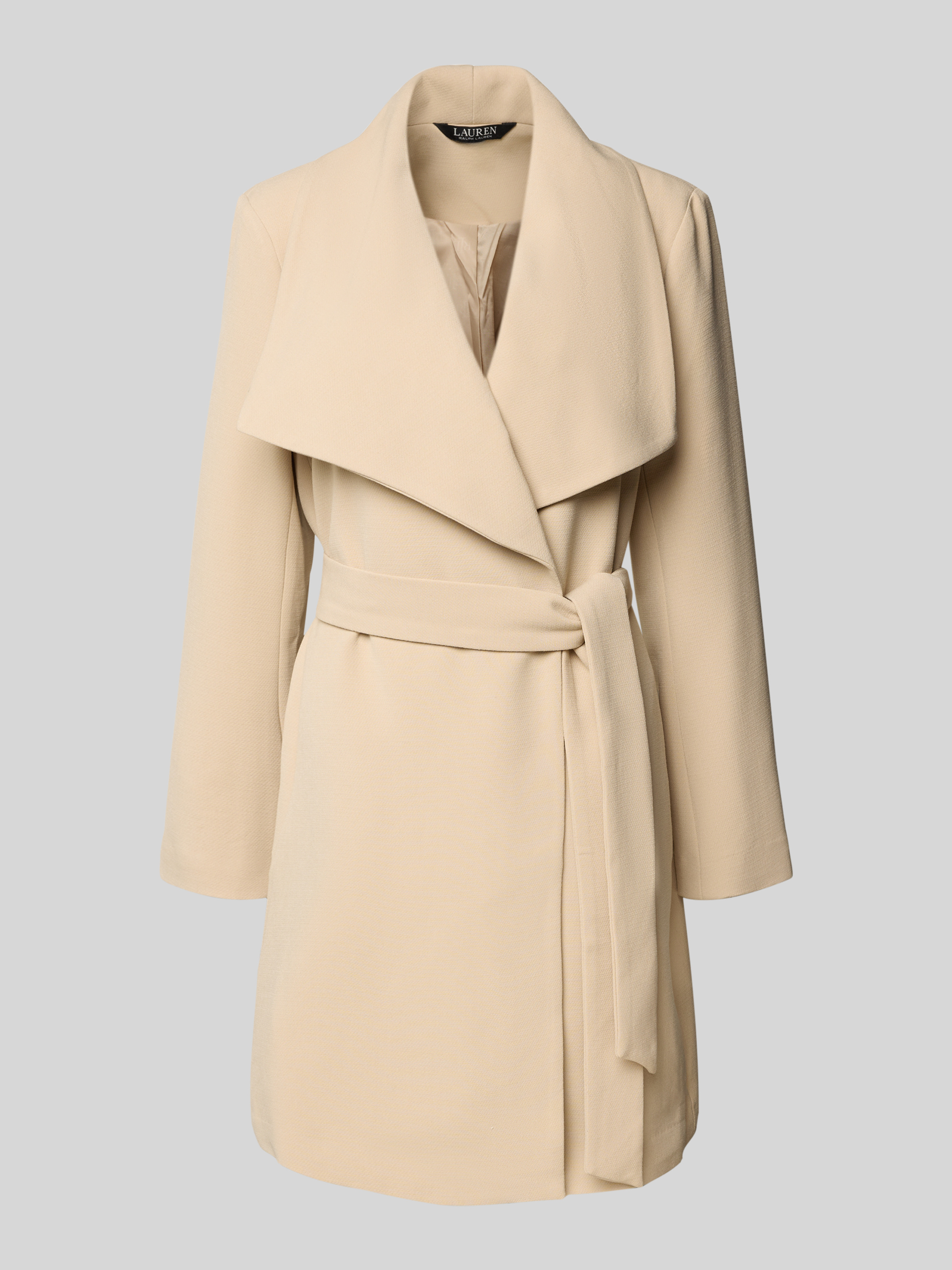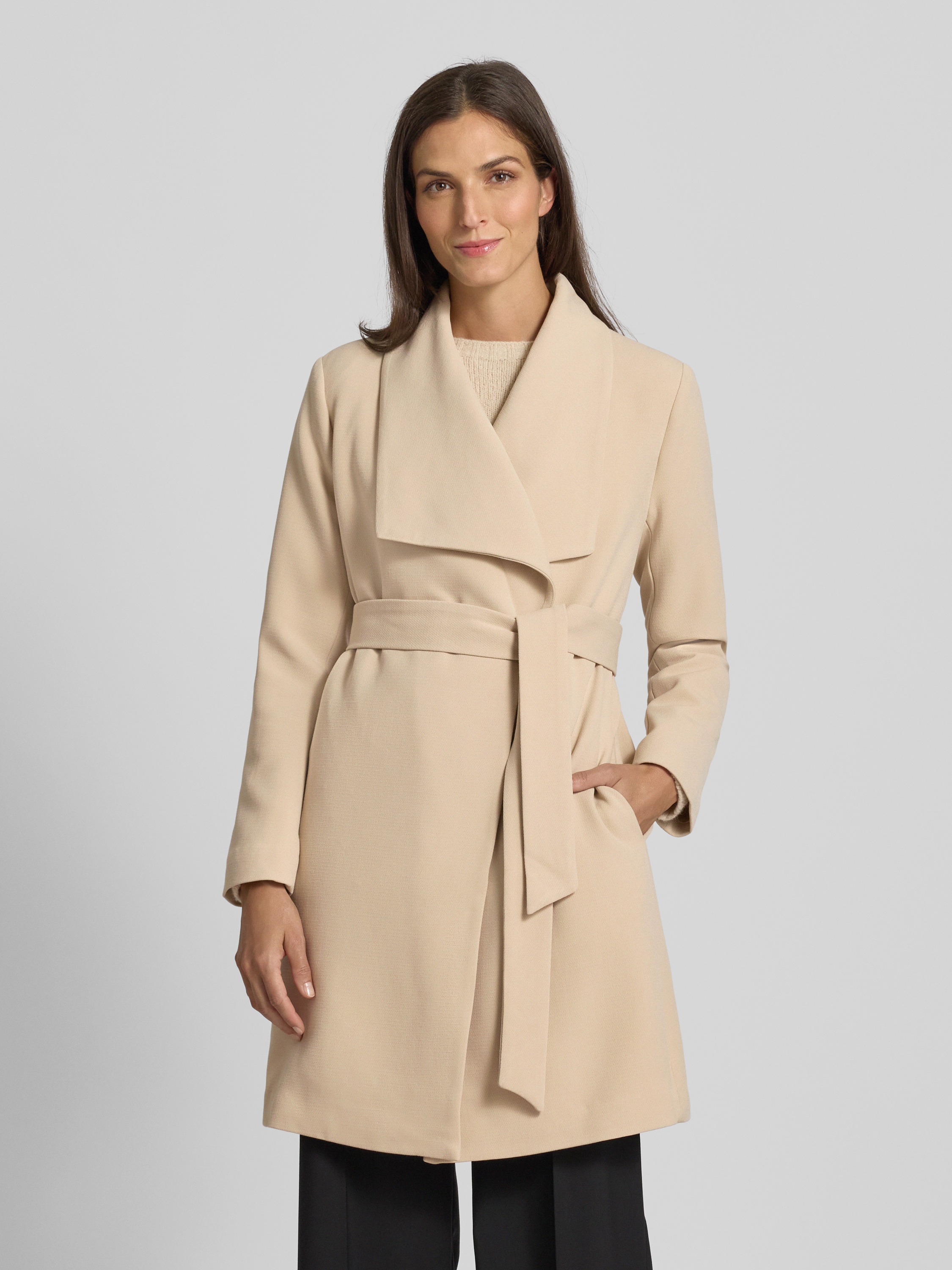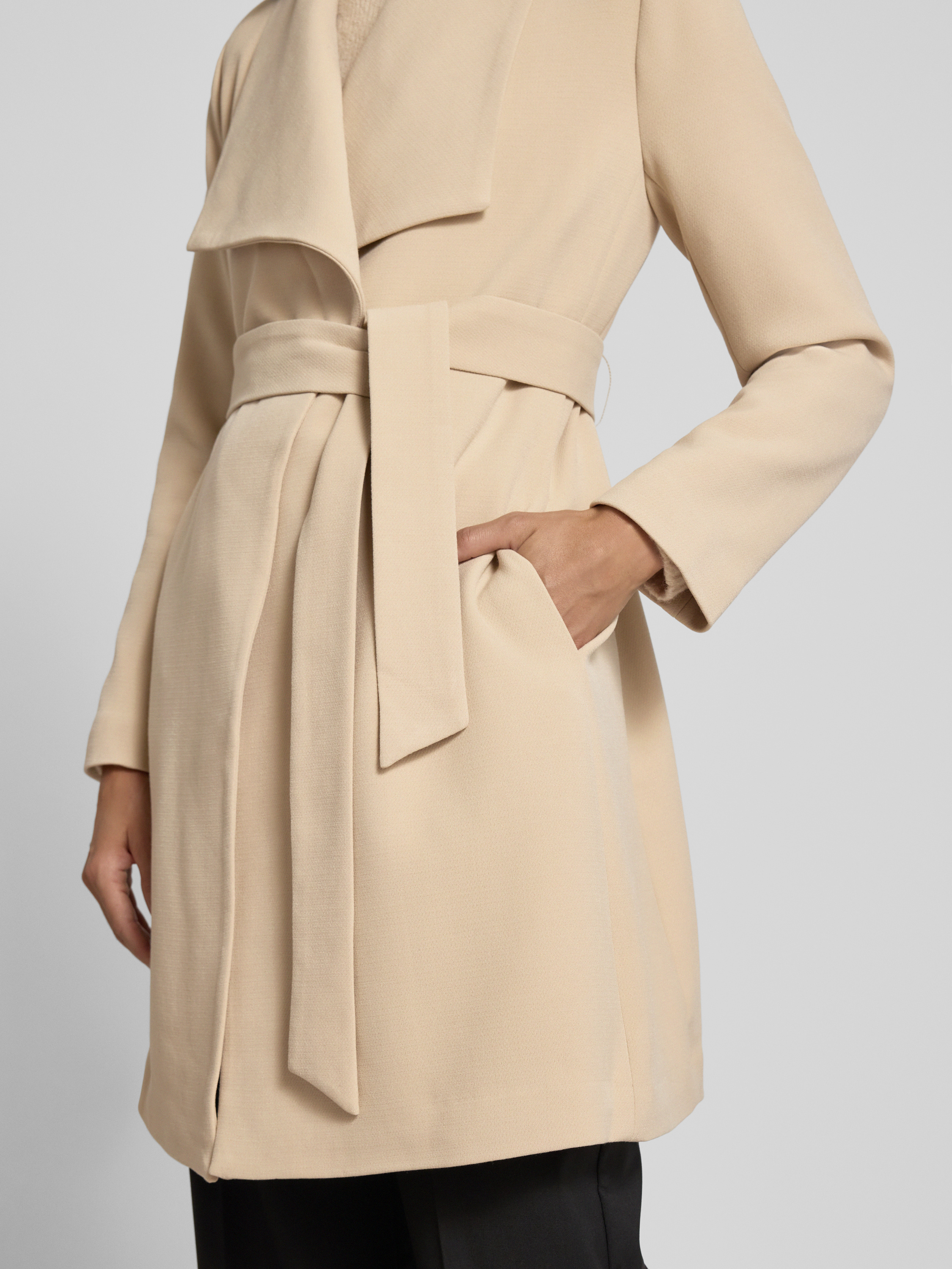 Płaszcz z szerokim kołnierzem i wiązanym paskiem - piaskowy