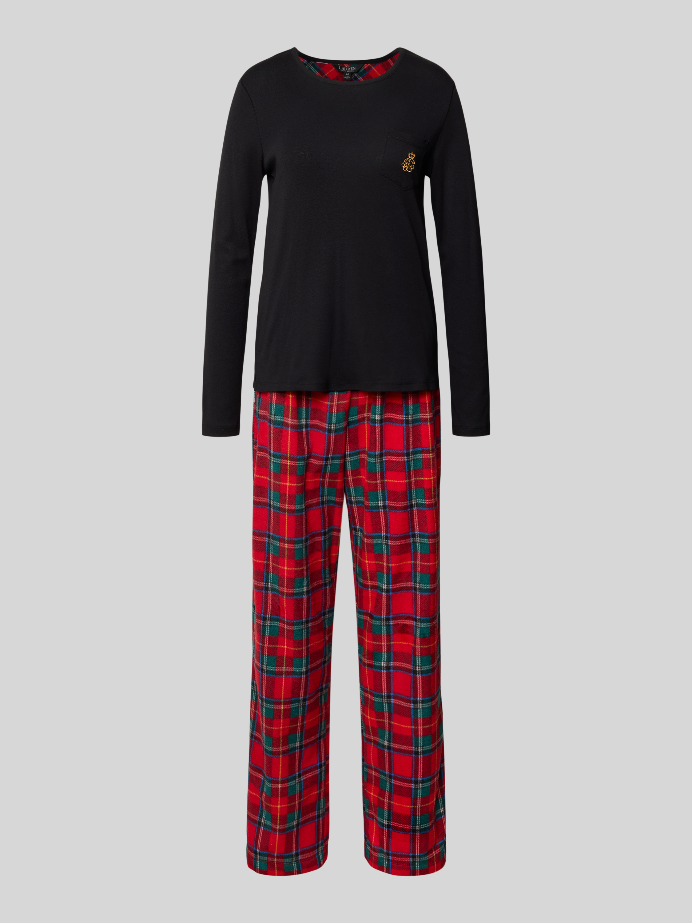 Piżama o kroju regular fit z kieszenią na piersi - czerwony