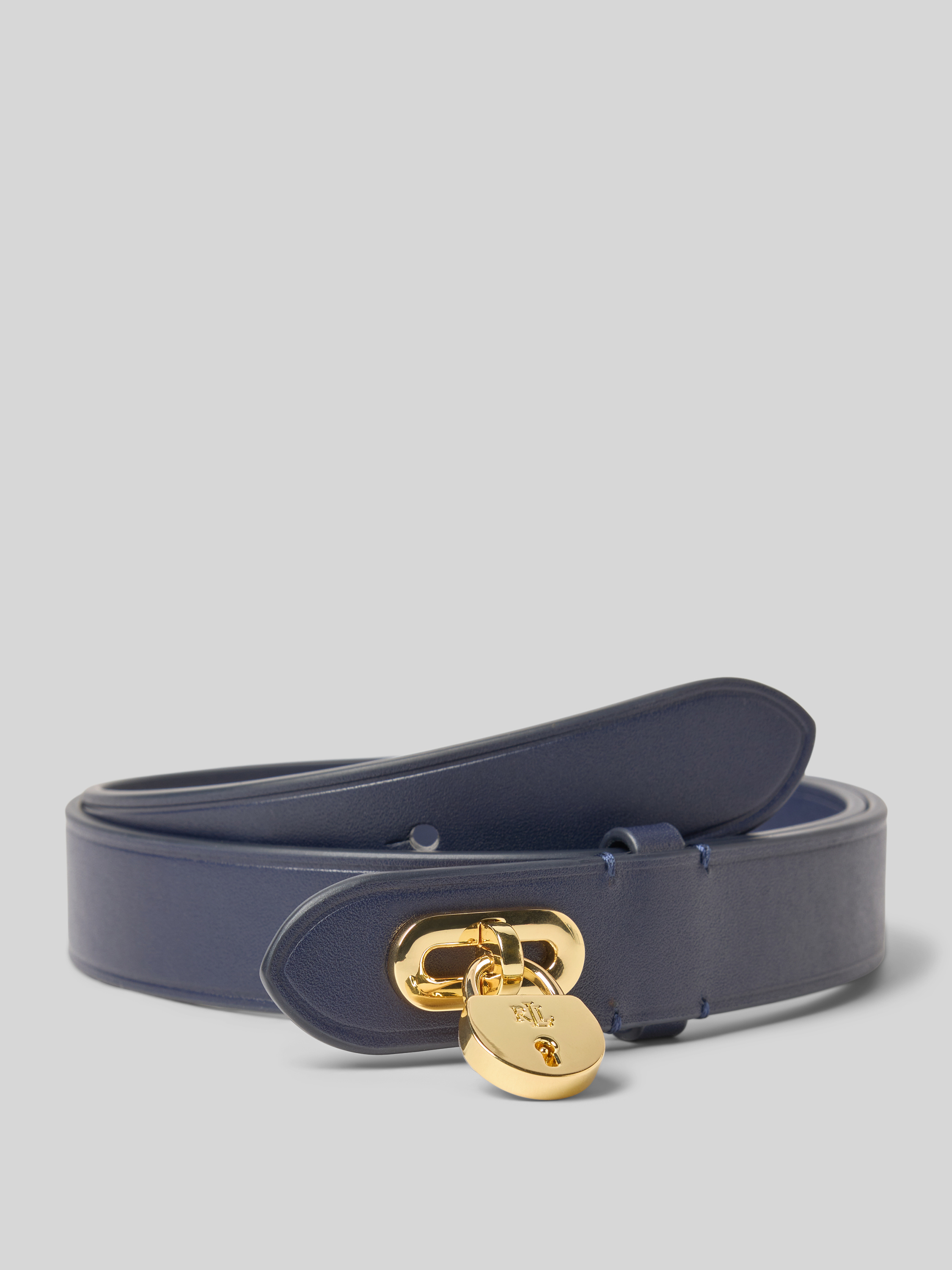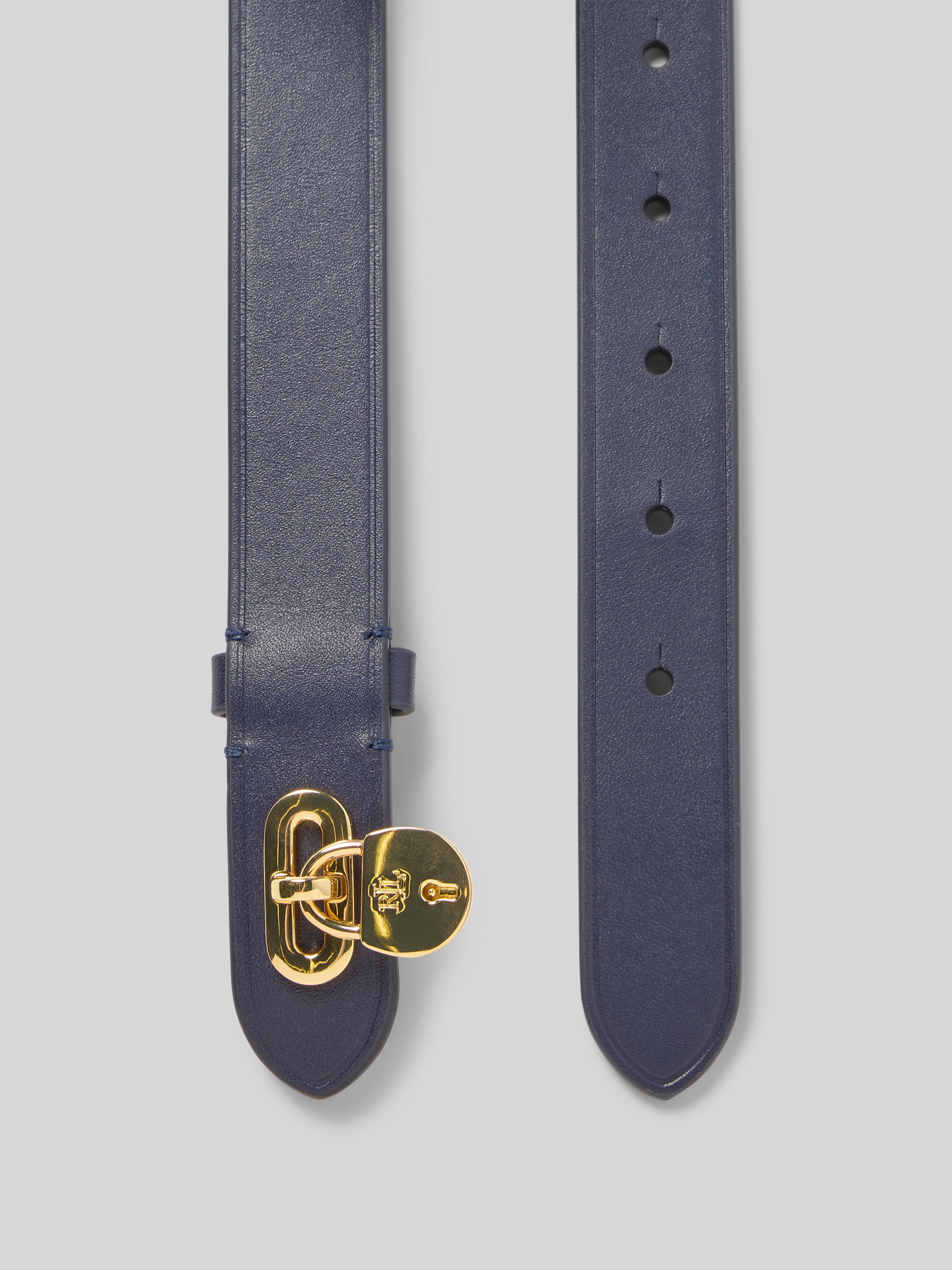 Skórzany pasek z klamrą na pin - ciemnoniebieski