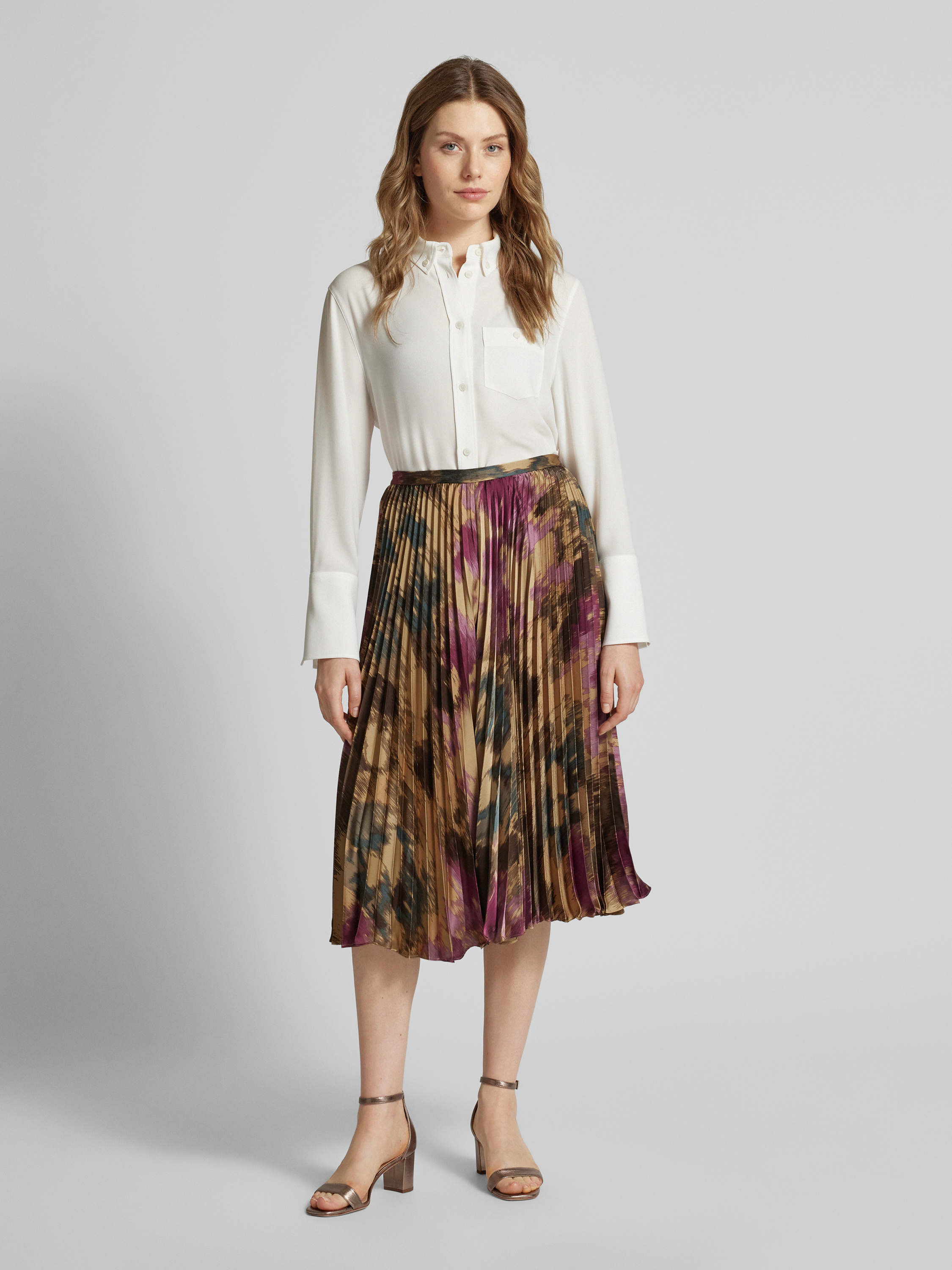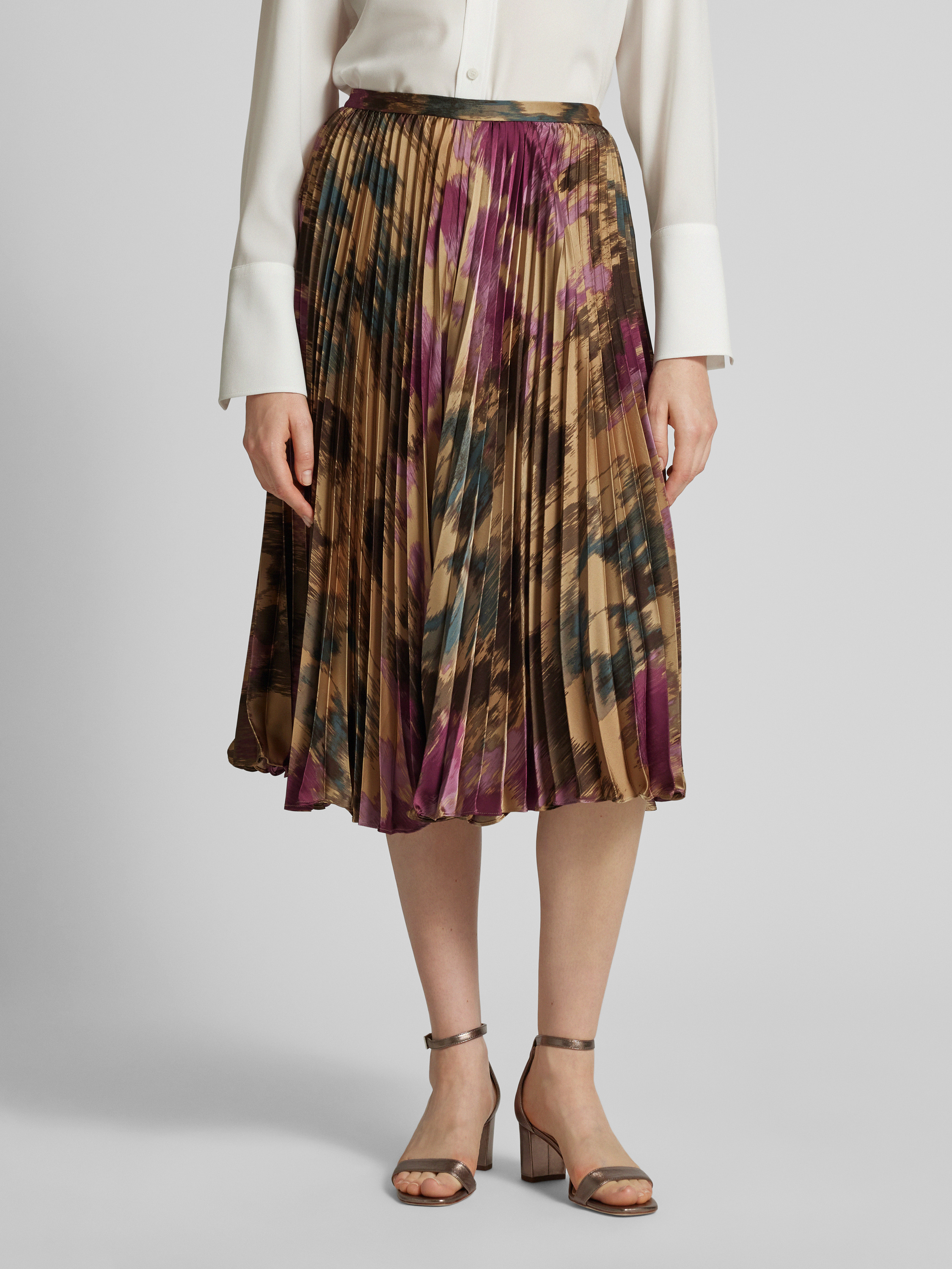 Spódnica midi z plisami model ‘SUZU’ - piaskowy