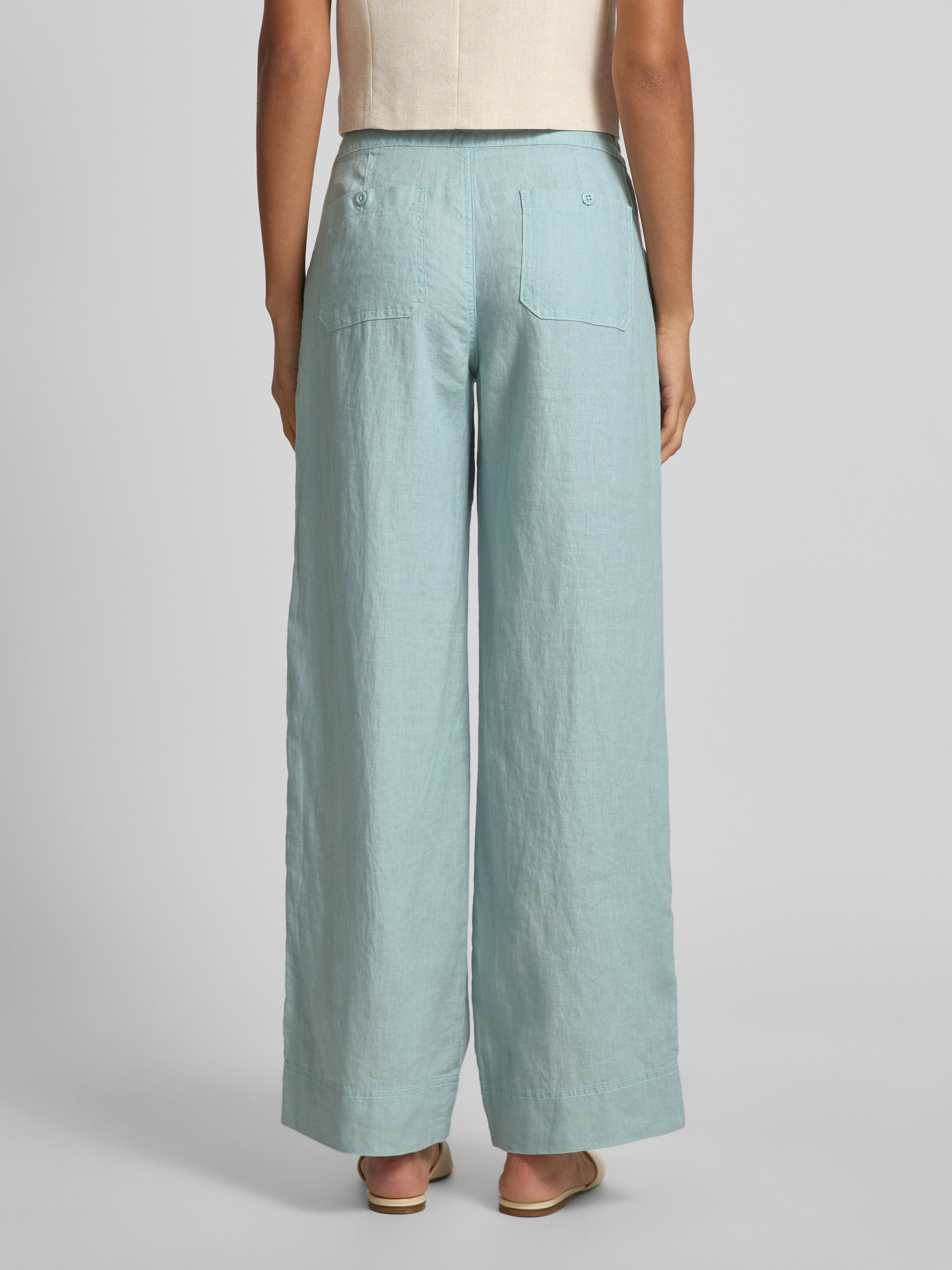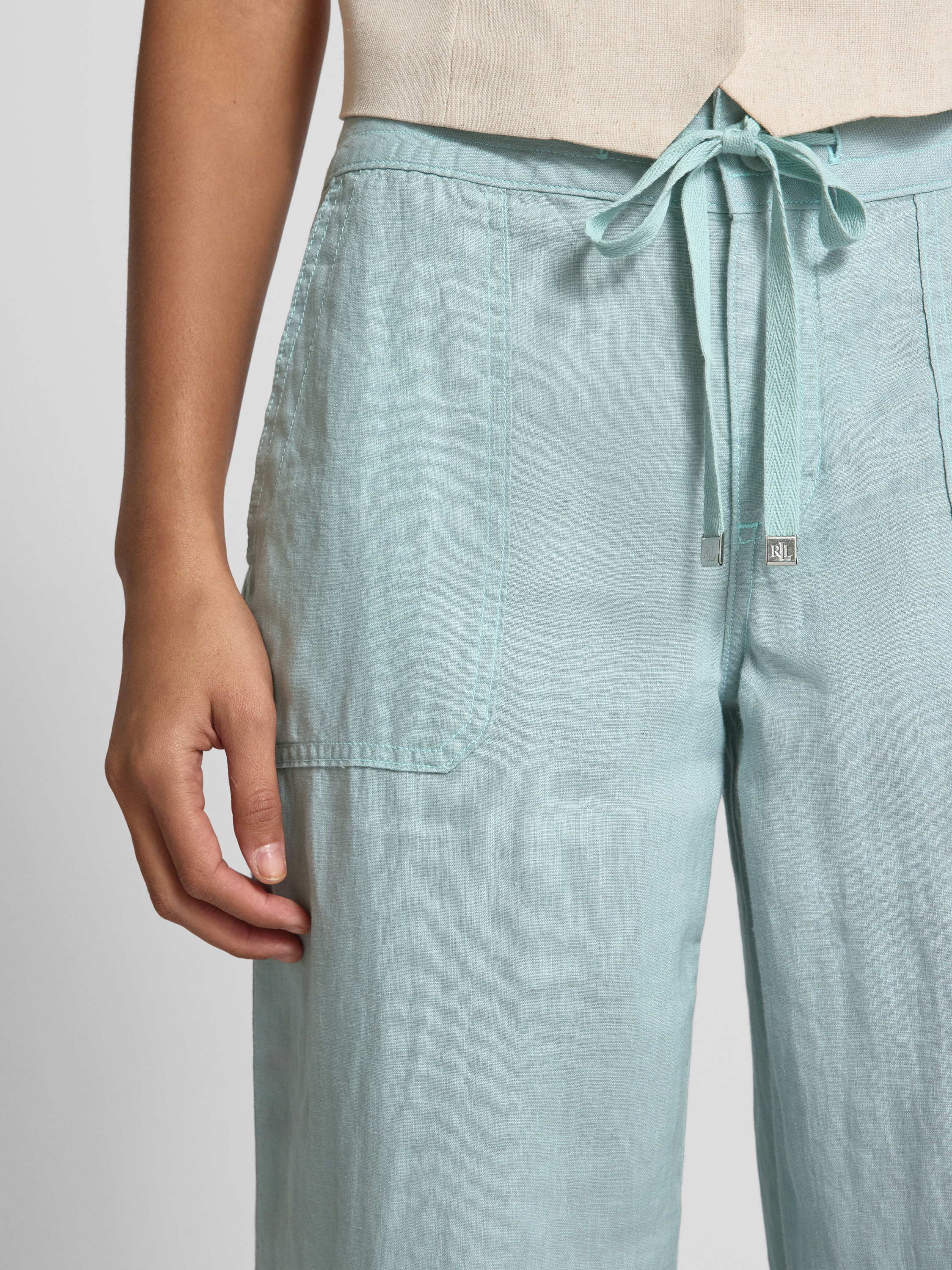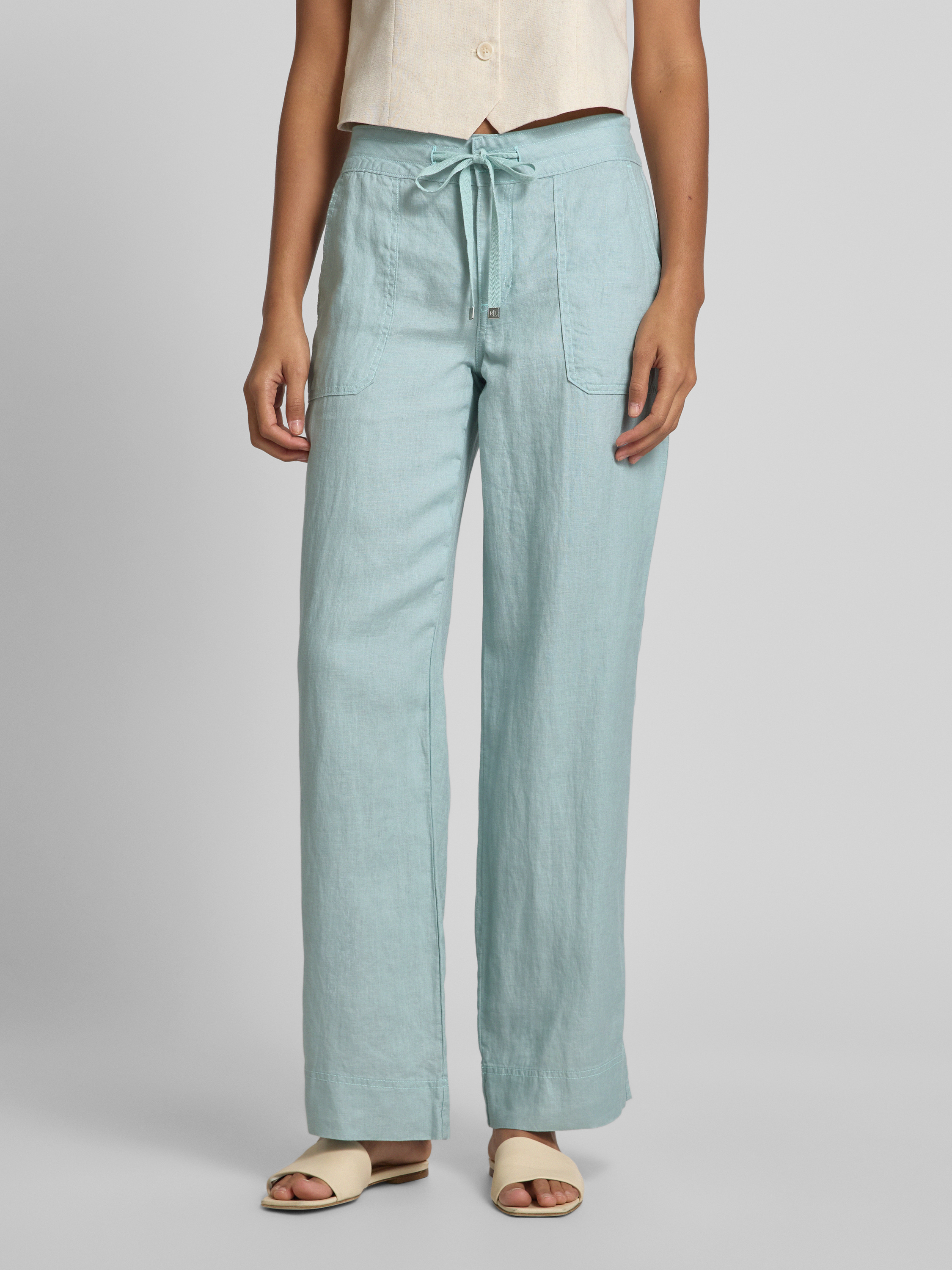 Lauren Ralph LaurenSpodnie lniane o luźnym kroju z elastycznym pasem model ‘JOVONIE’ - jasnoniebieski