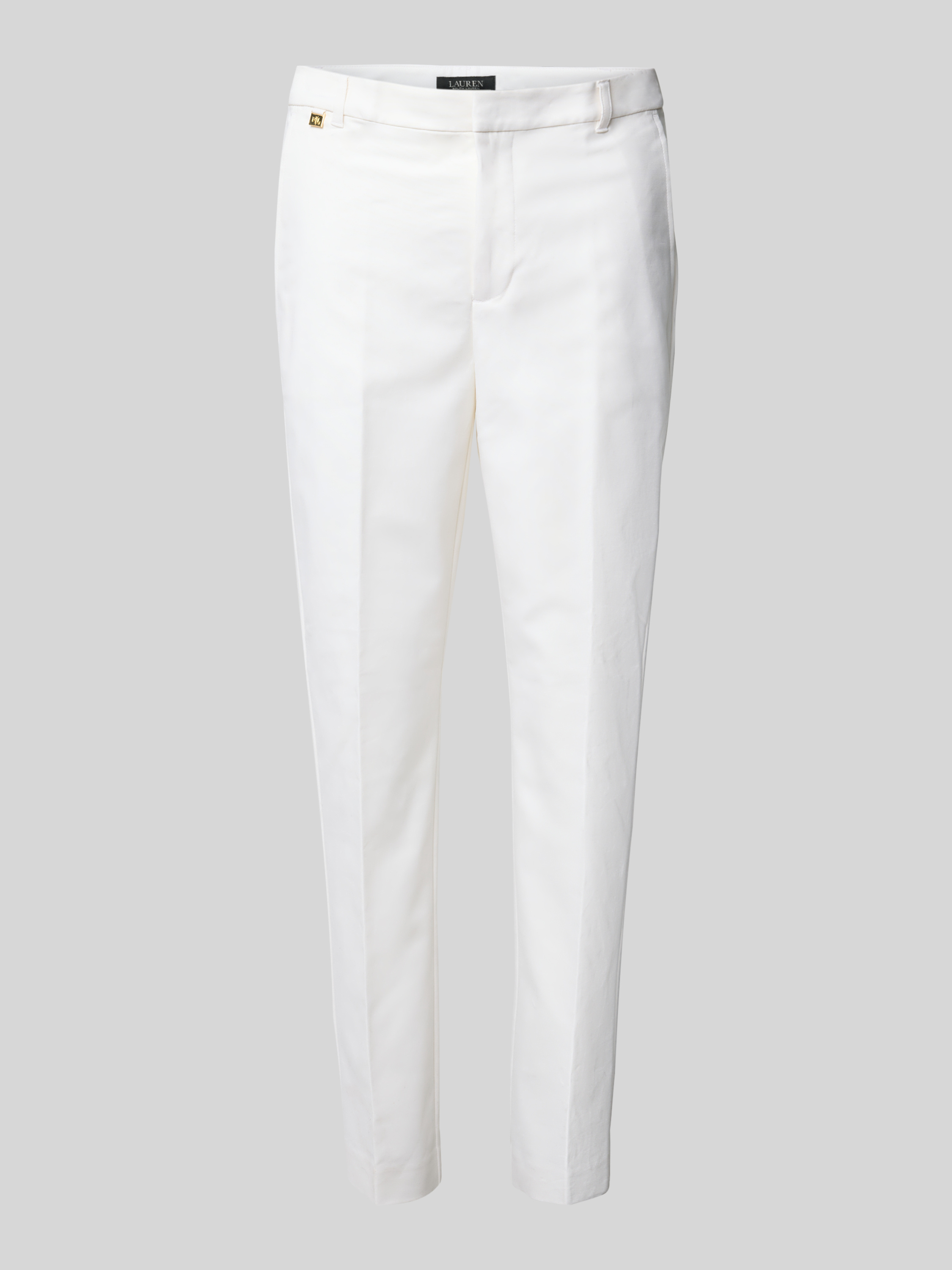 Spodnie materiałowe o kroju slim fit z detalem z logo model ‘LAKYTHIA’ - biały