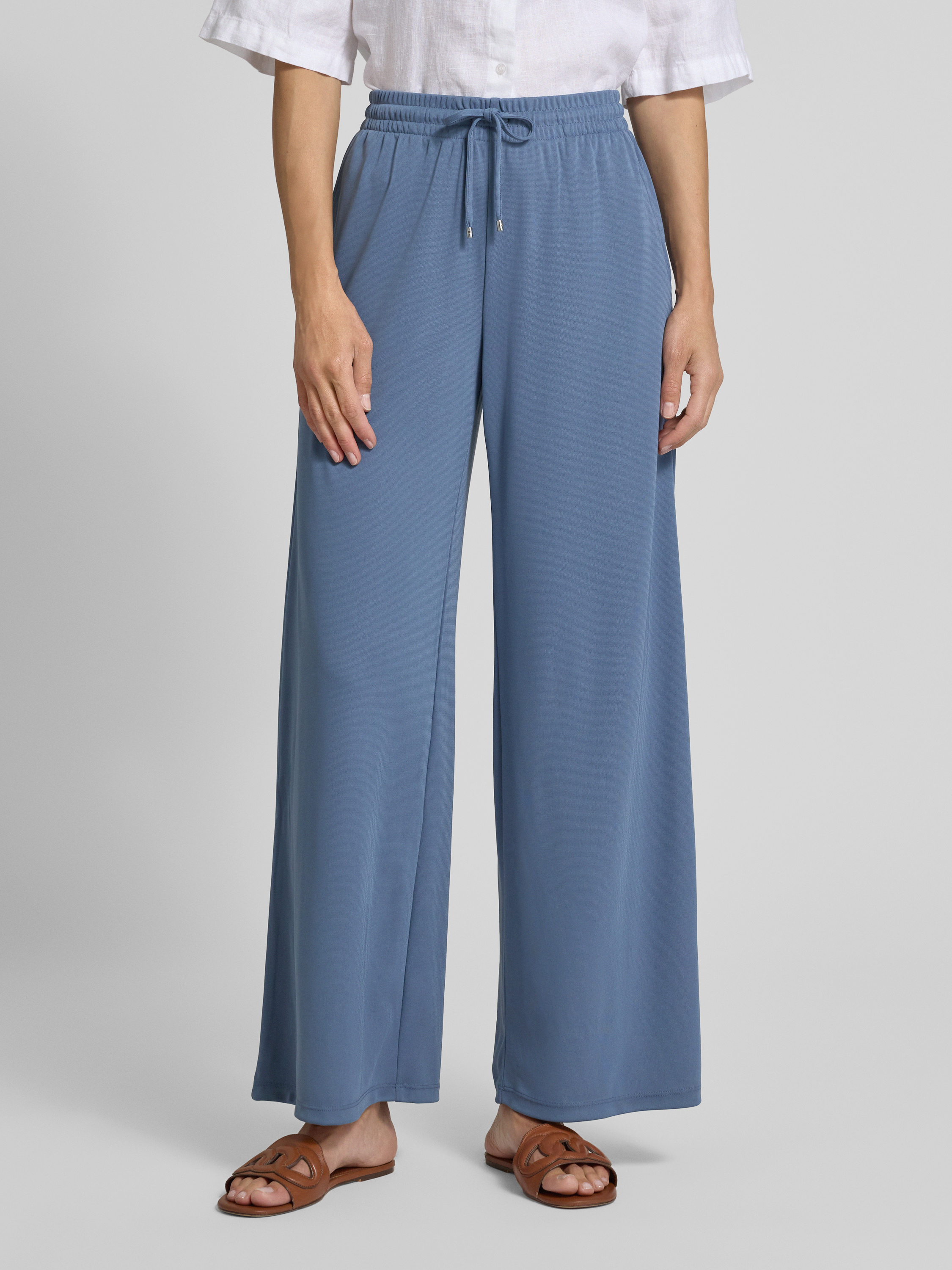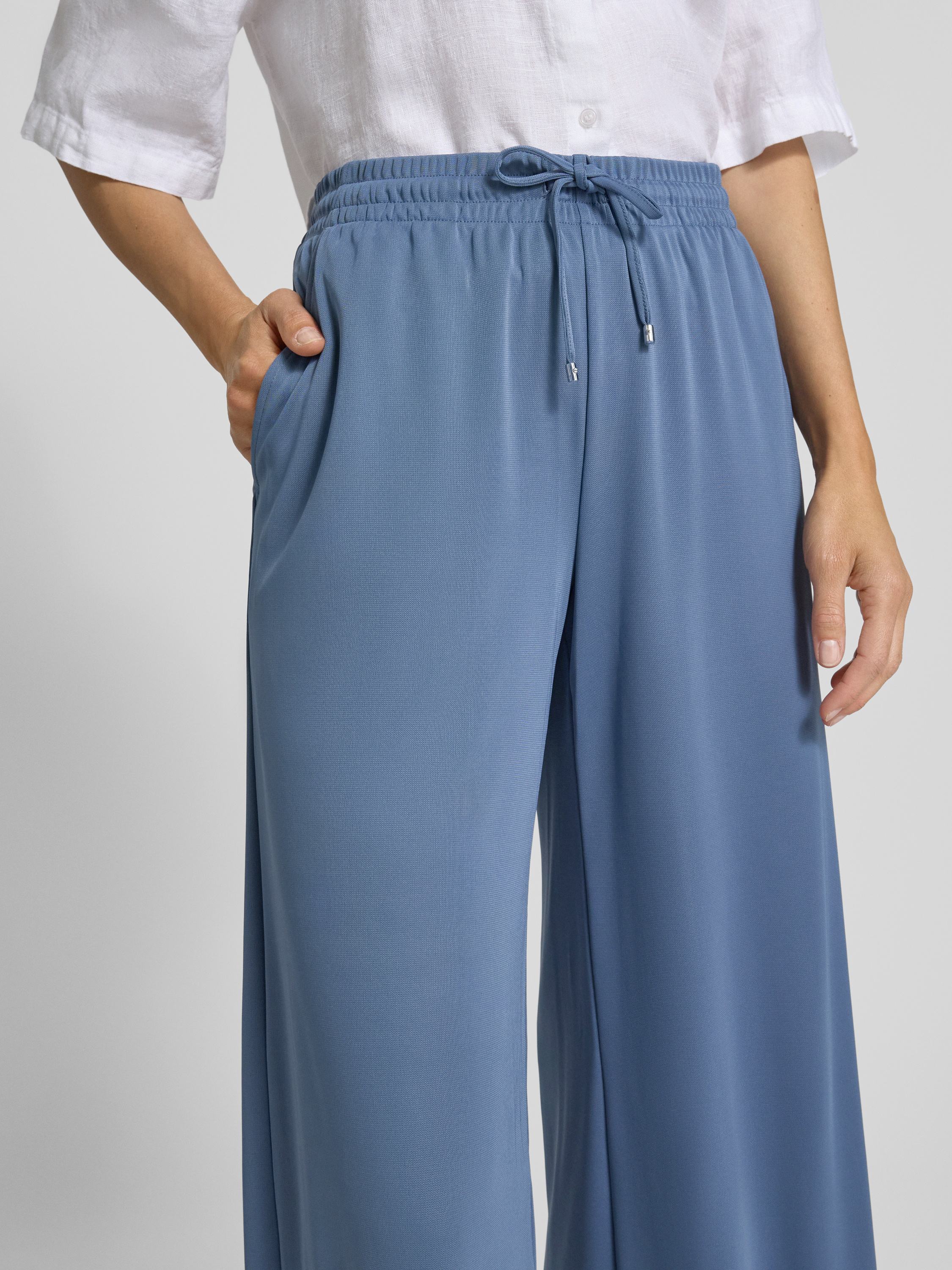 Spodnie materiałowe z elastycznym pasem model ‘TAYONE’ - jasnoniebieski