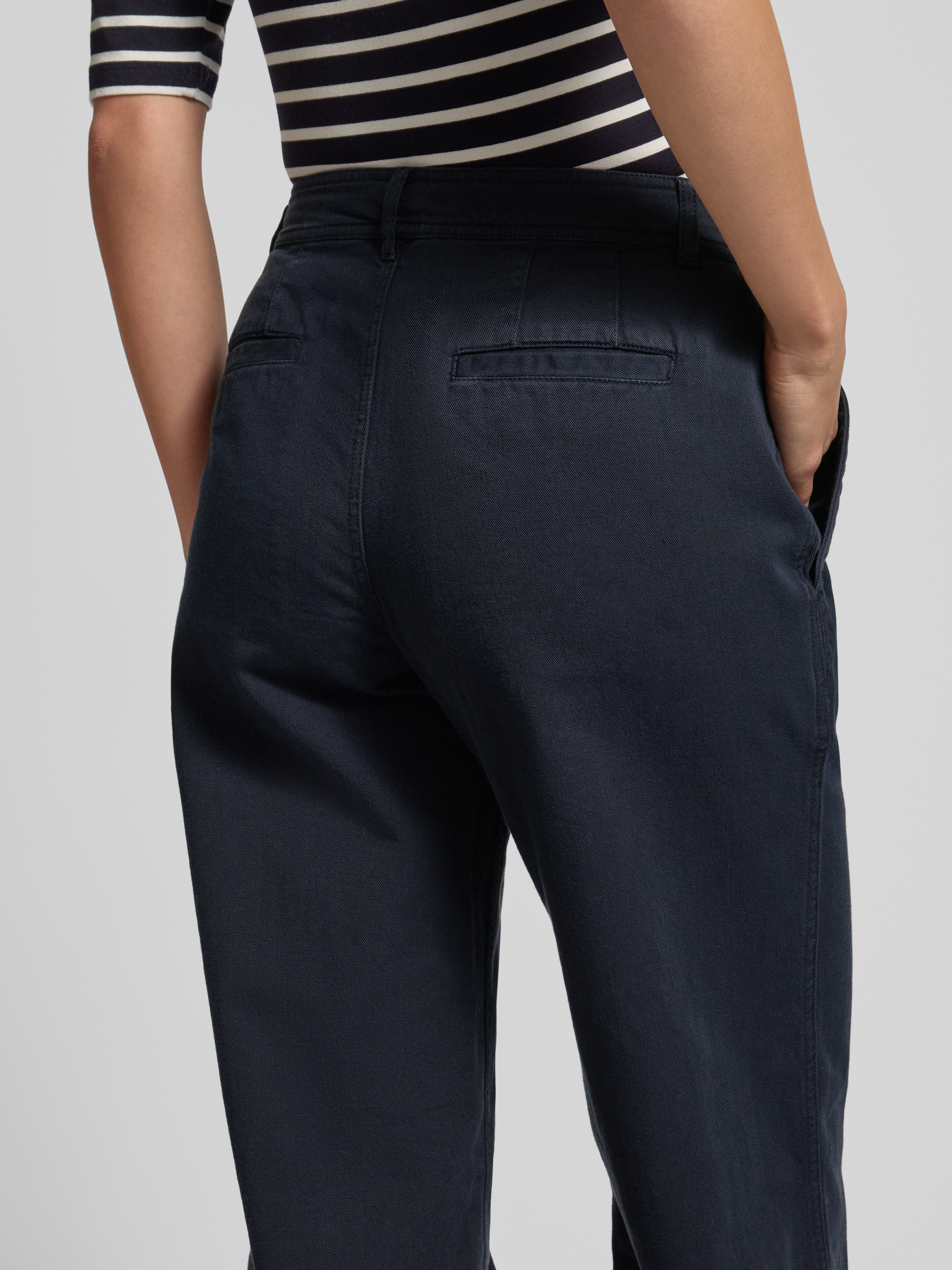Spodnie materiałowe z kieszeniami z tyłu model ‘MAHKEY’ - ciemnoniebieski