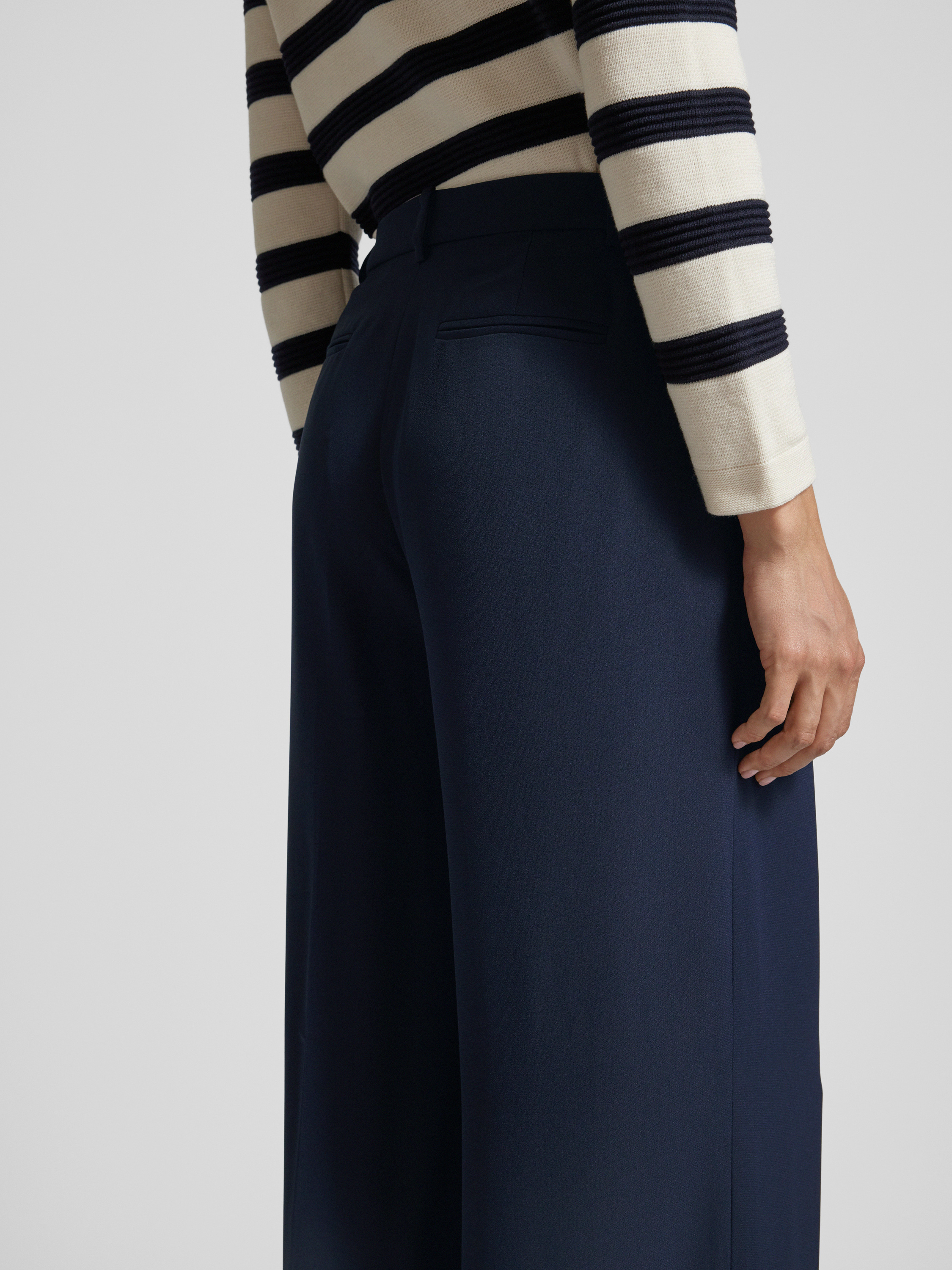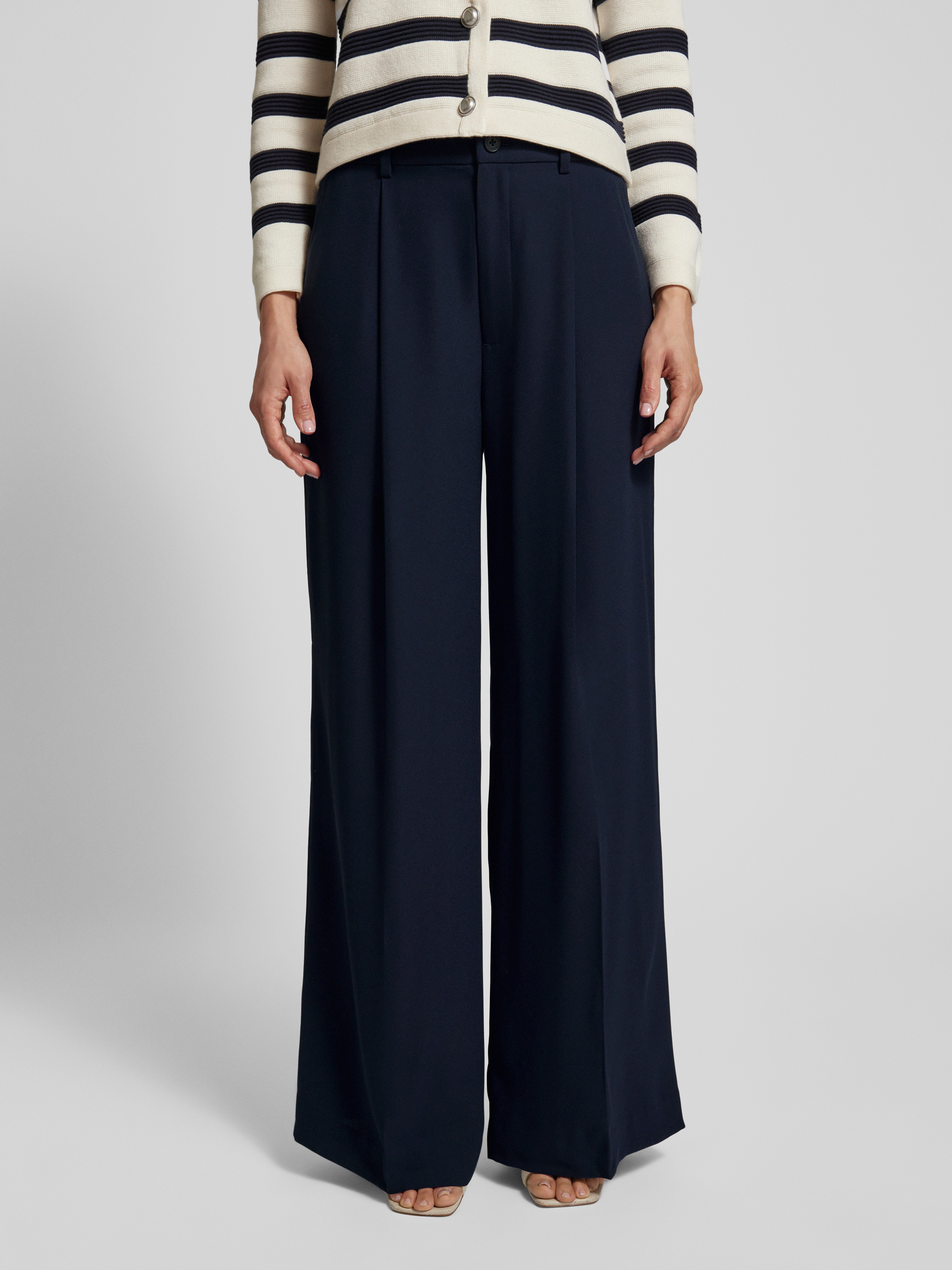 Spodnie materiałowe z zakładkami w pasie model ‘KIRAHN’ - granatowy