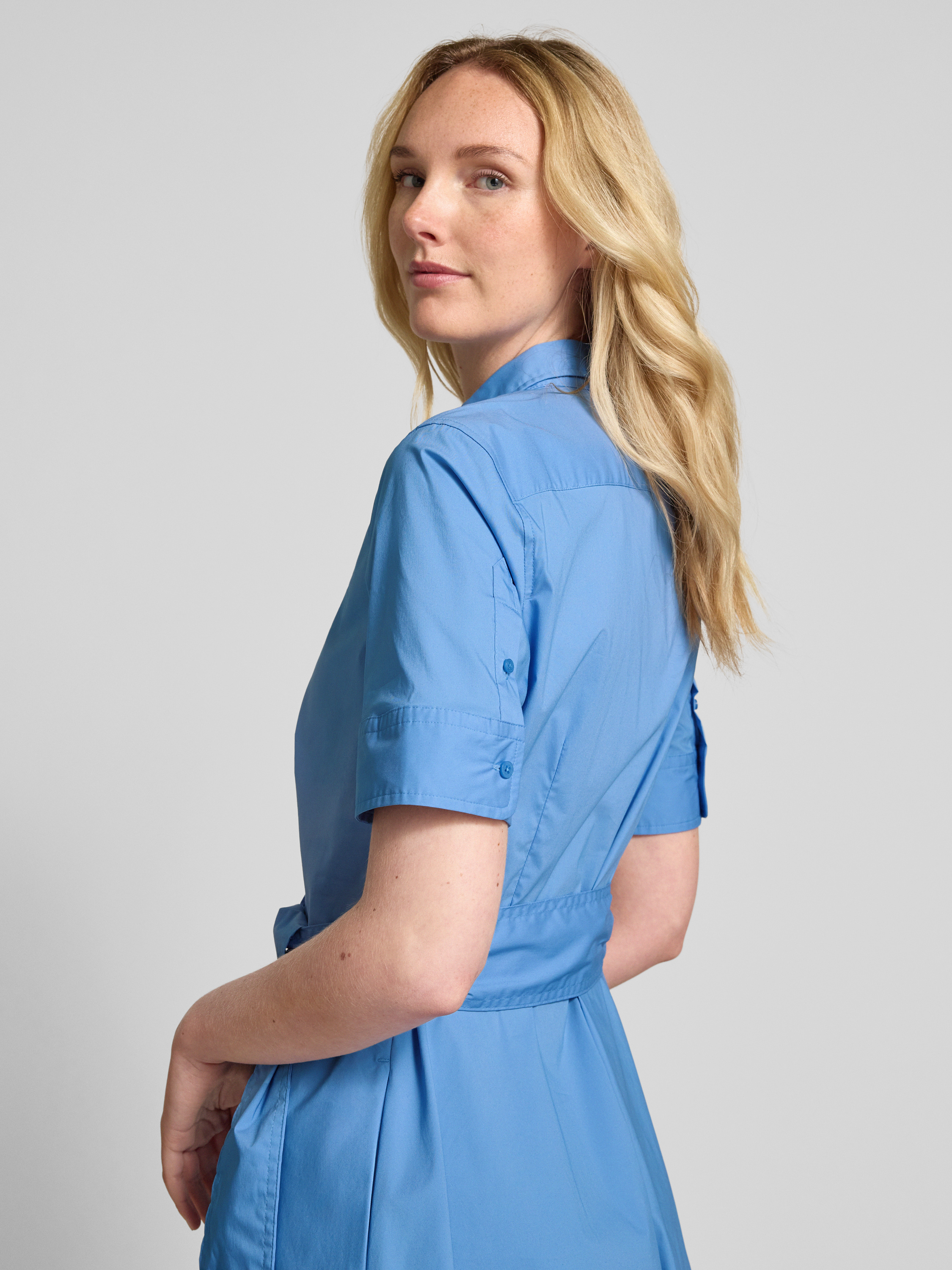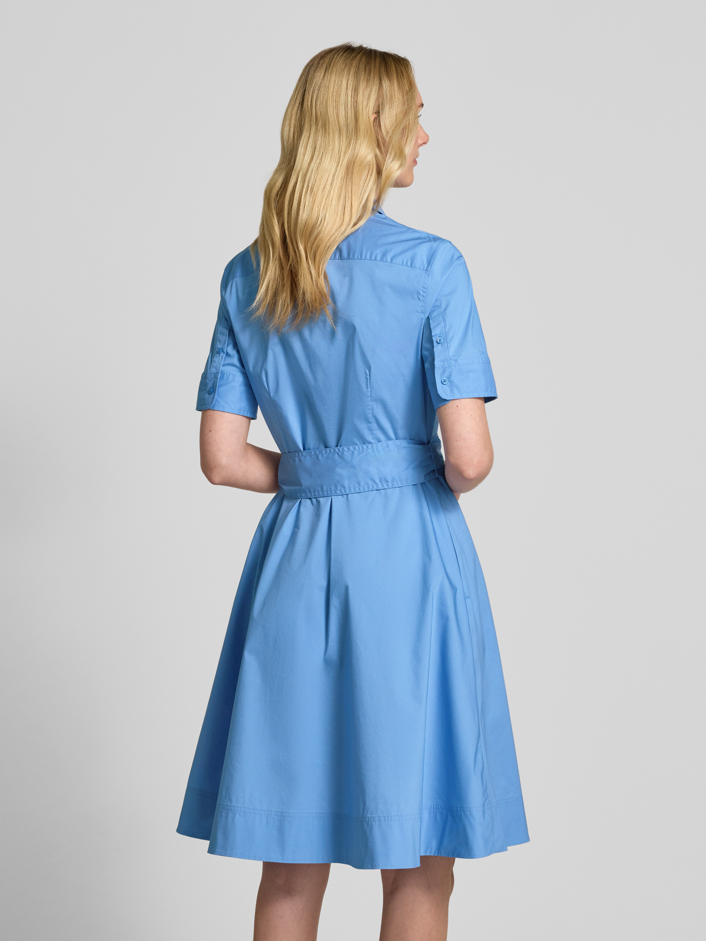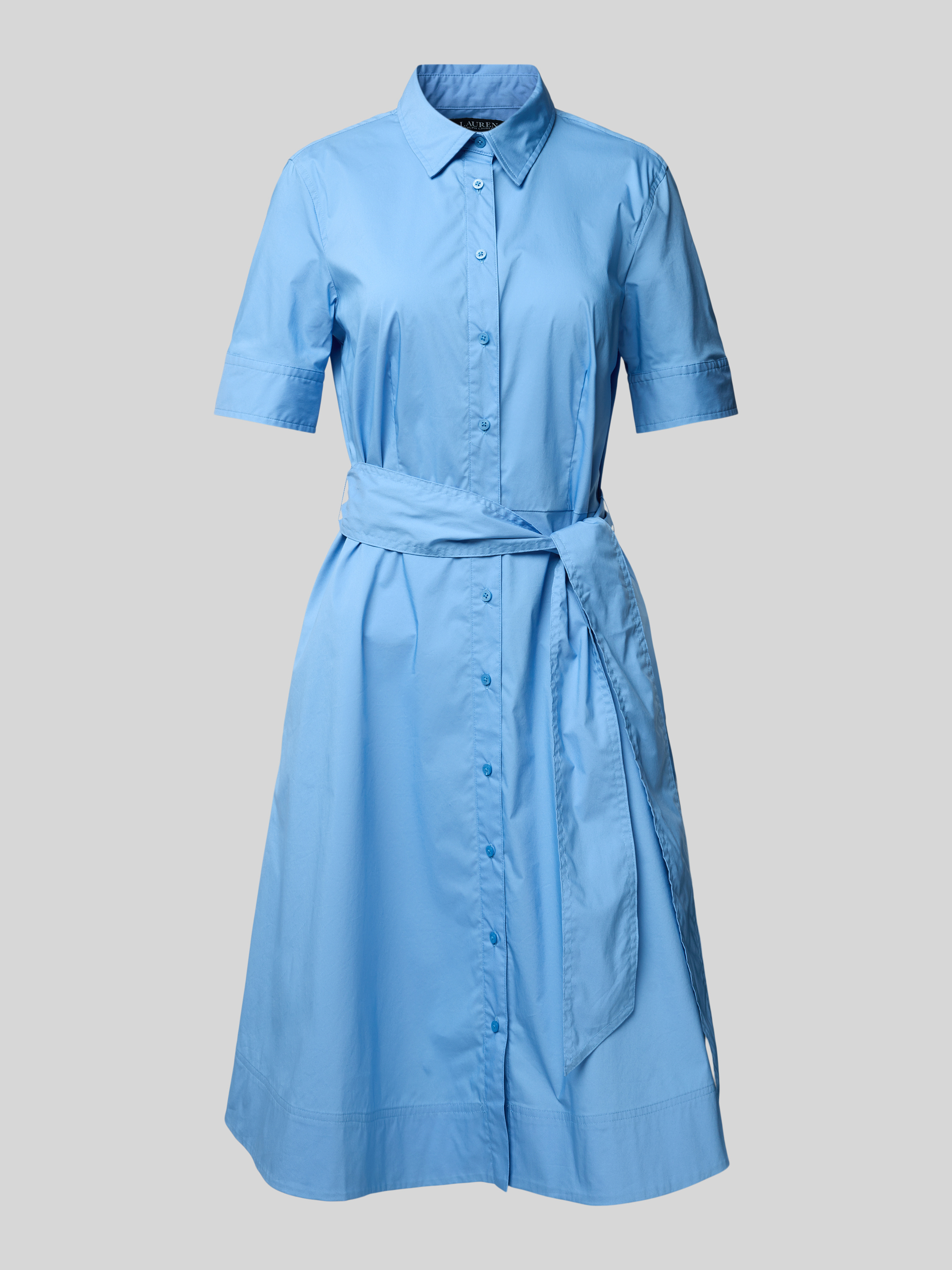 Sukienka koszulowa o długości do kolan z wiązanym paskiem - błękitno-niebieski