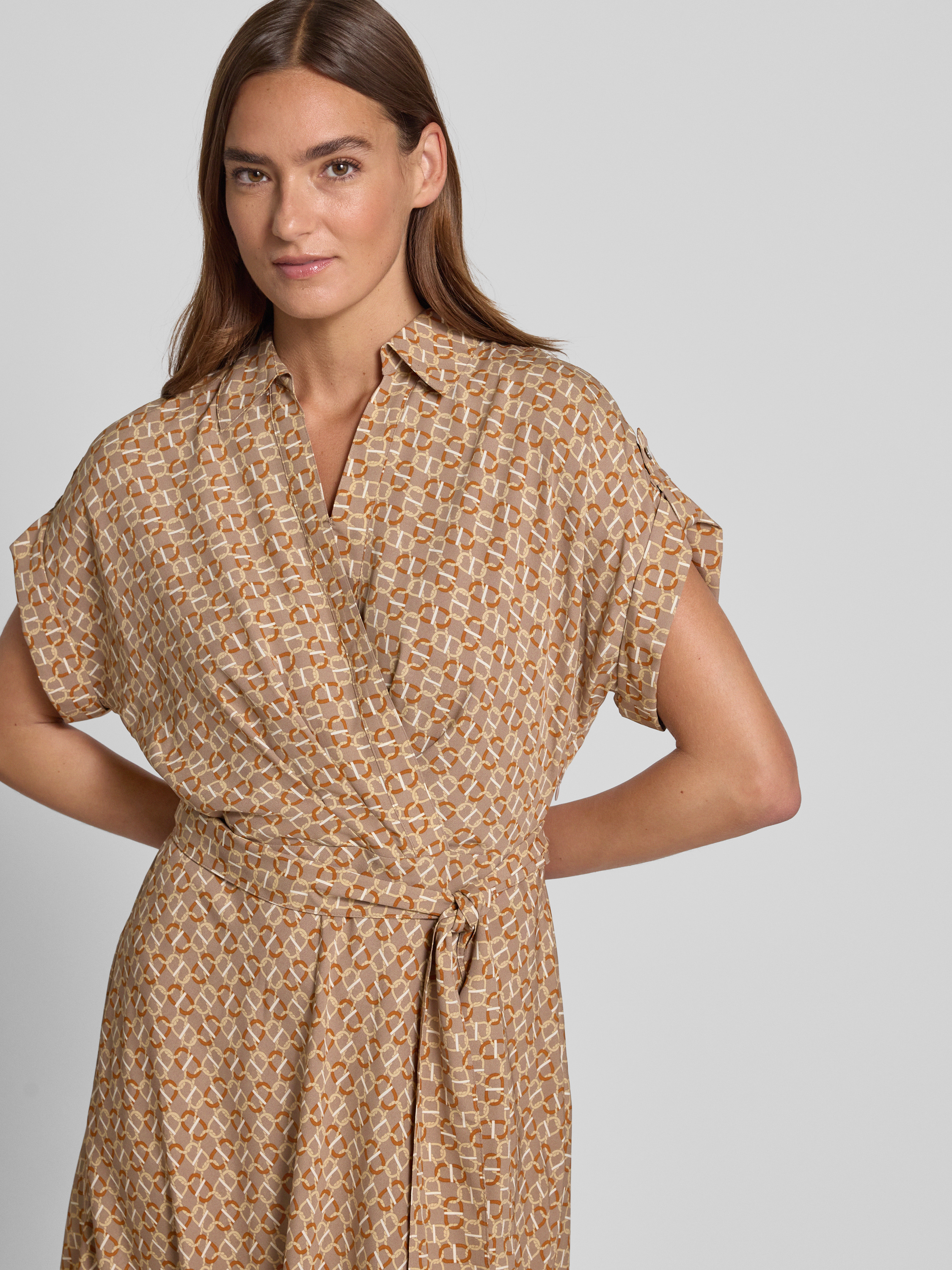 Sukienka koszulowa z wiązanym paskiem model ‘FRATILLIO’ - beżowy