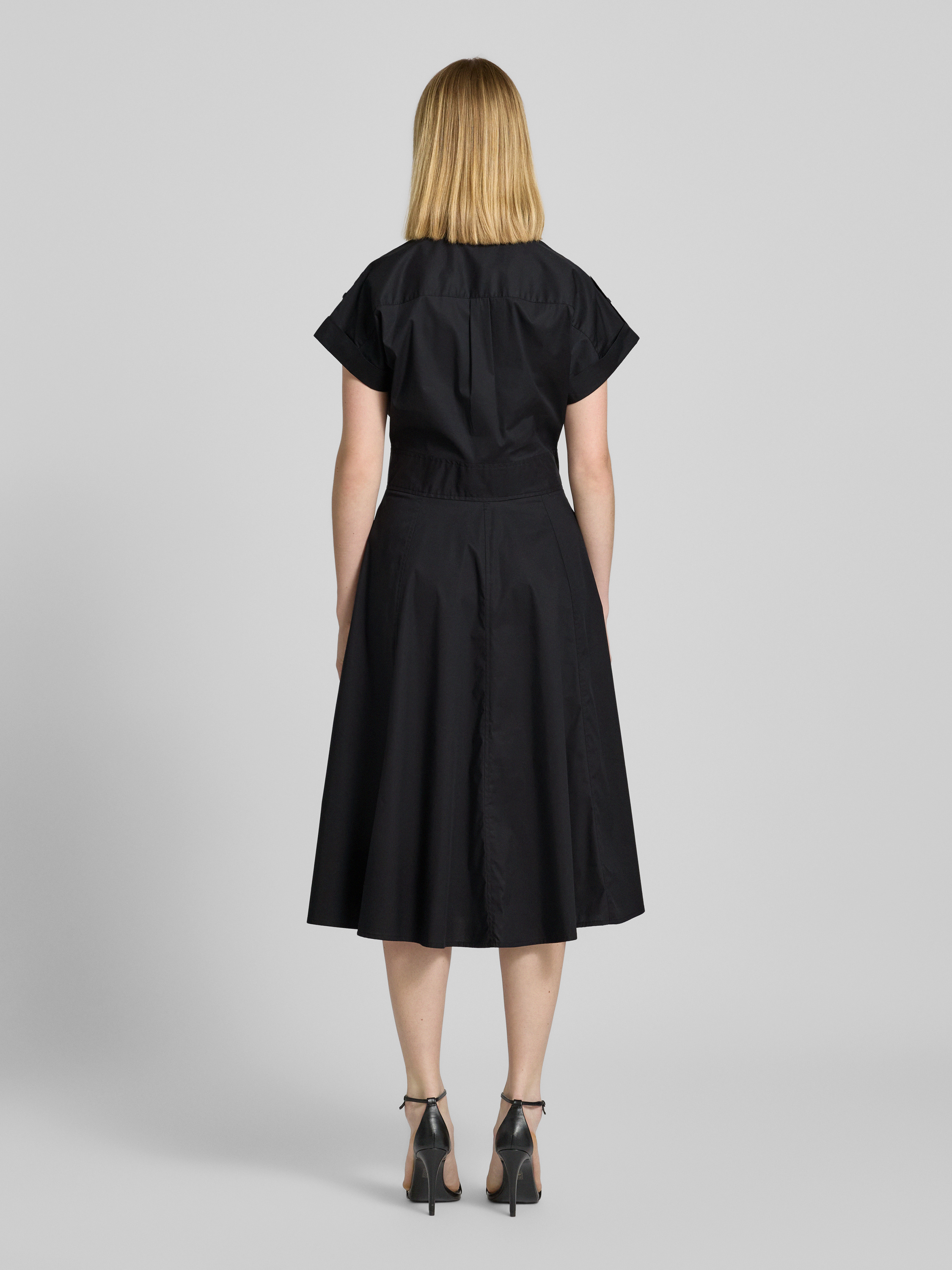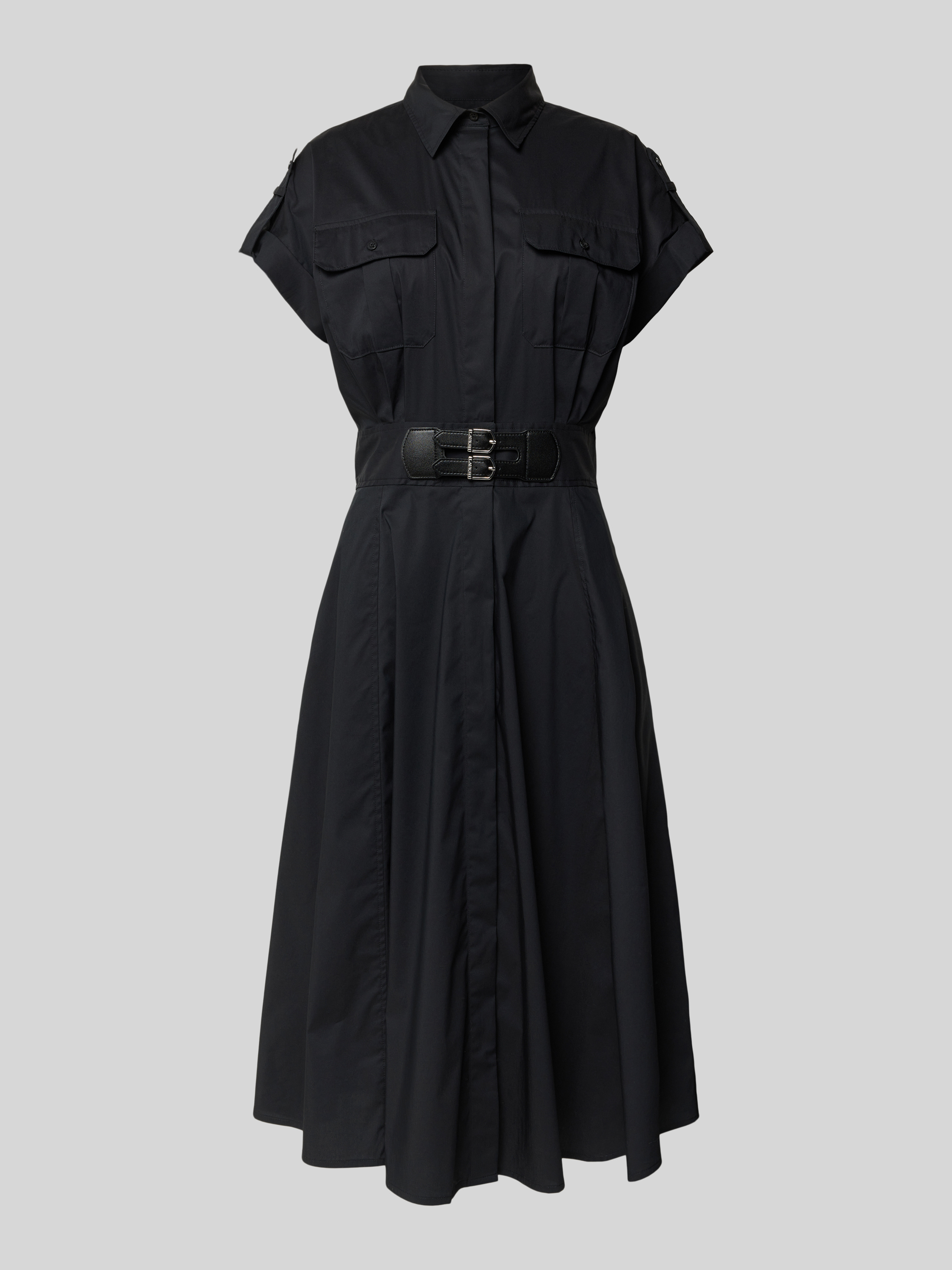 Sukienka midi z kołnierzykiem koszulowym - czarny