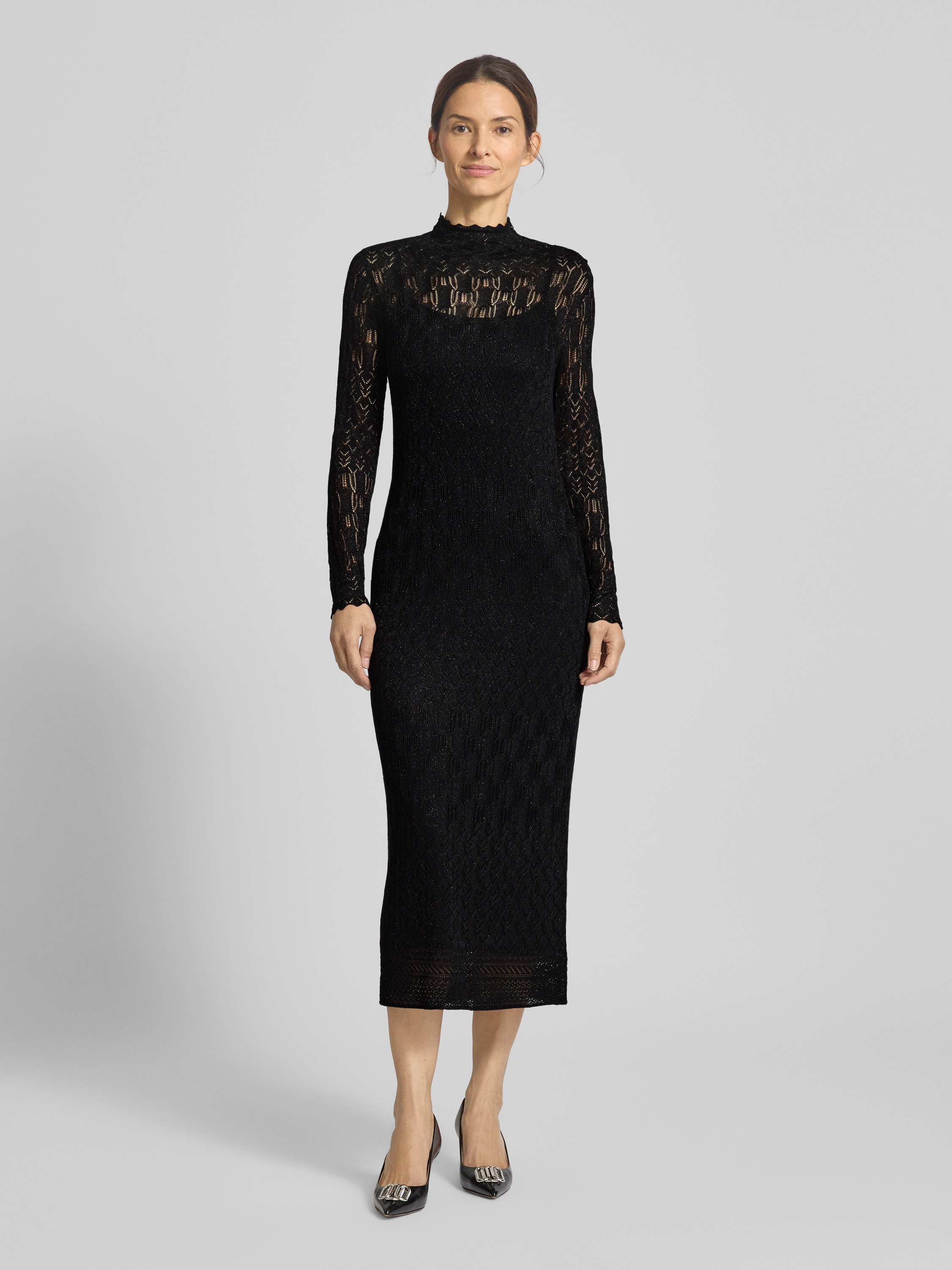 Sukienka midi z mieszanki wiskozy model ‘PAGDEN’ - czarny