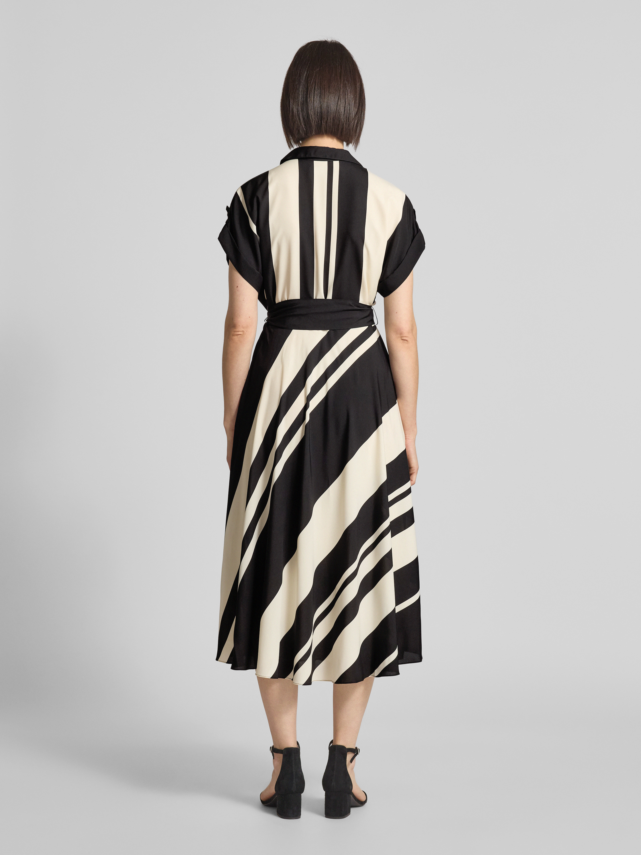 Sukienka midi z wiązanym paskiem model ‘FRATILLIO’ - złamany biały