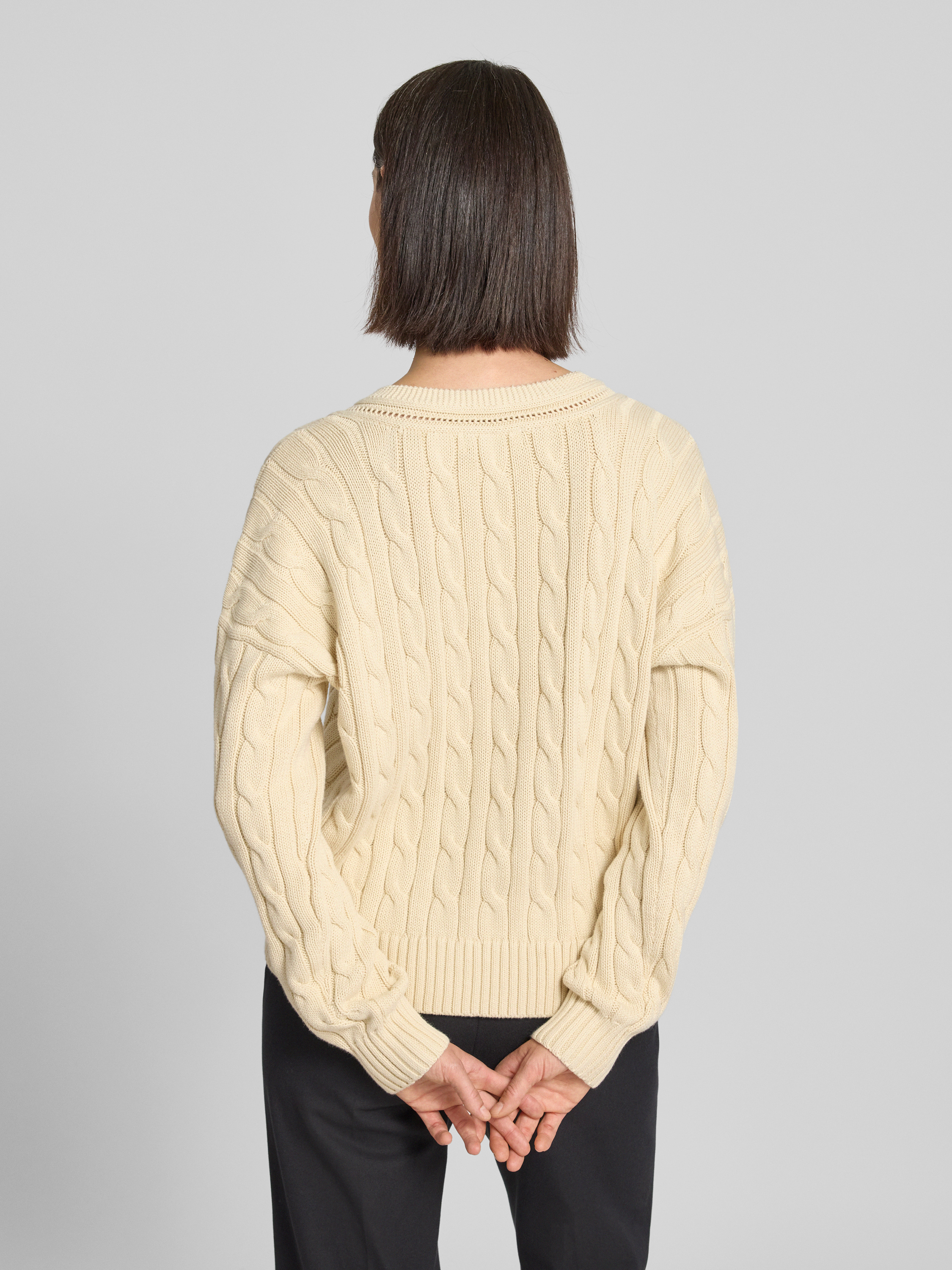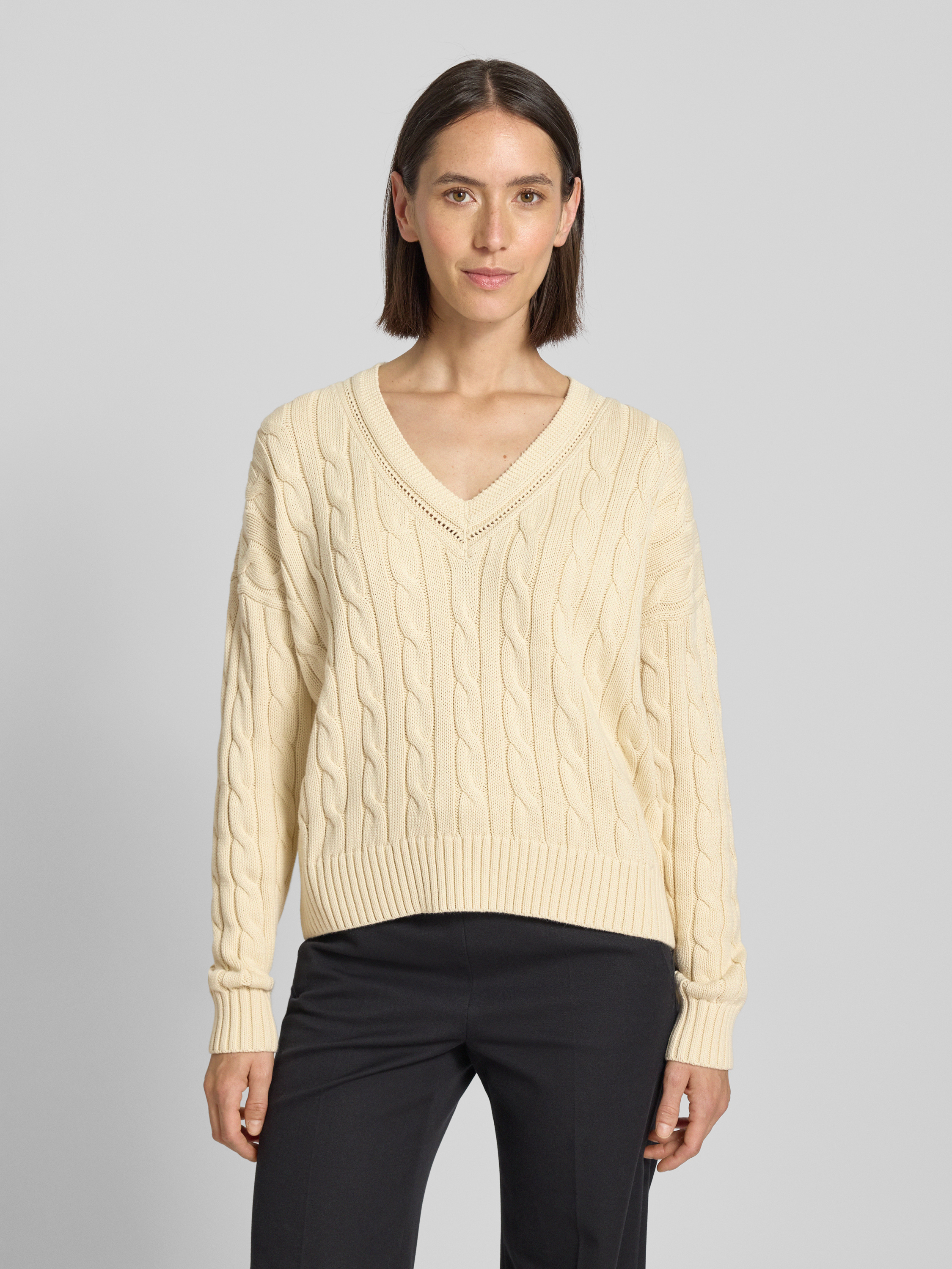 Sweter z dzianiny z dekoltem w serek model ‘TEDURPH’ - beżowy