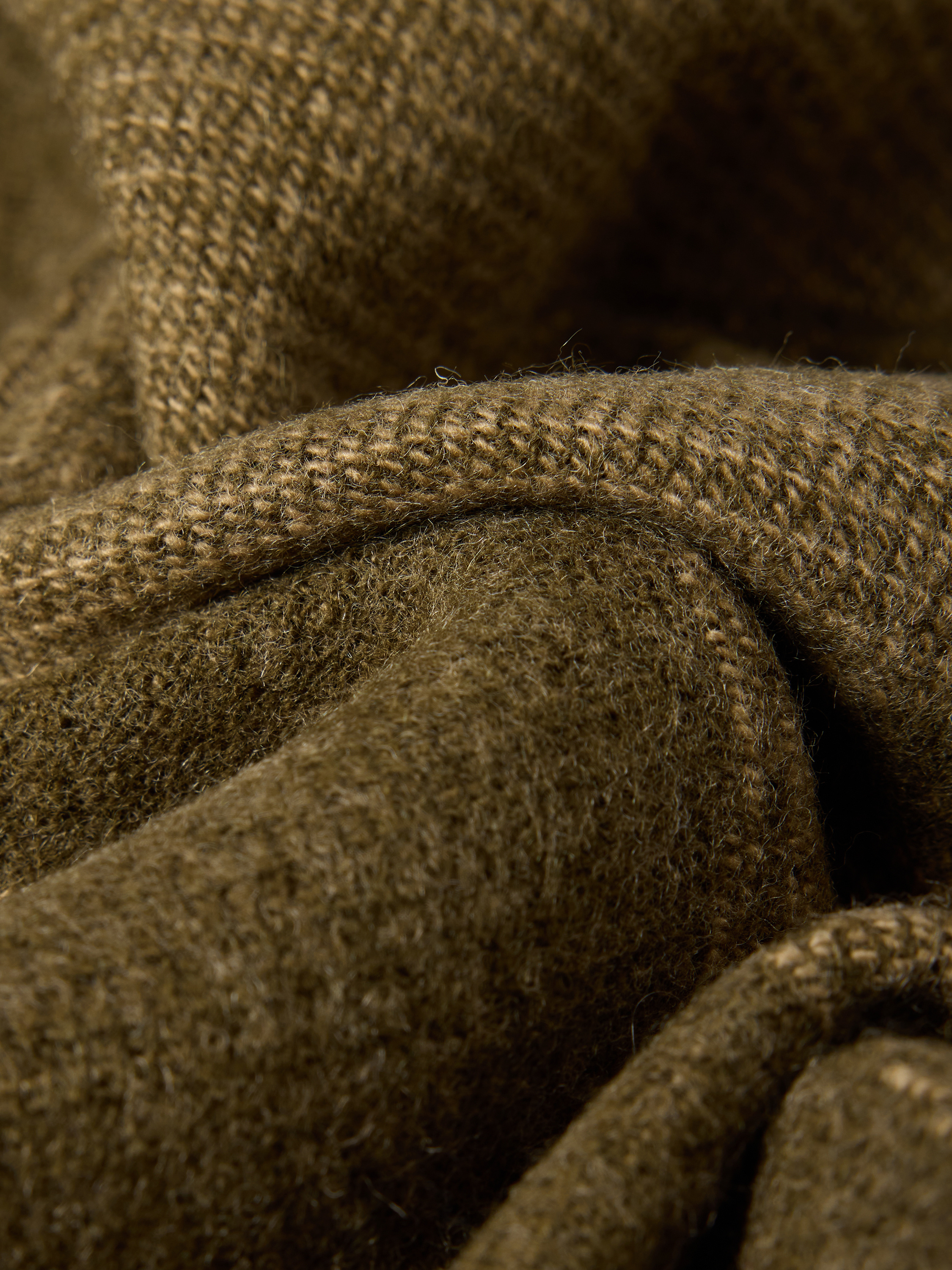 Szal ze wzorem na całej powierzchni z frędzlami - camel