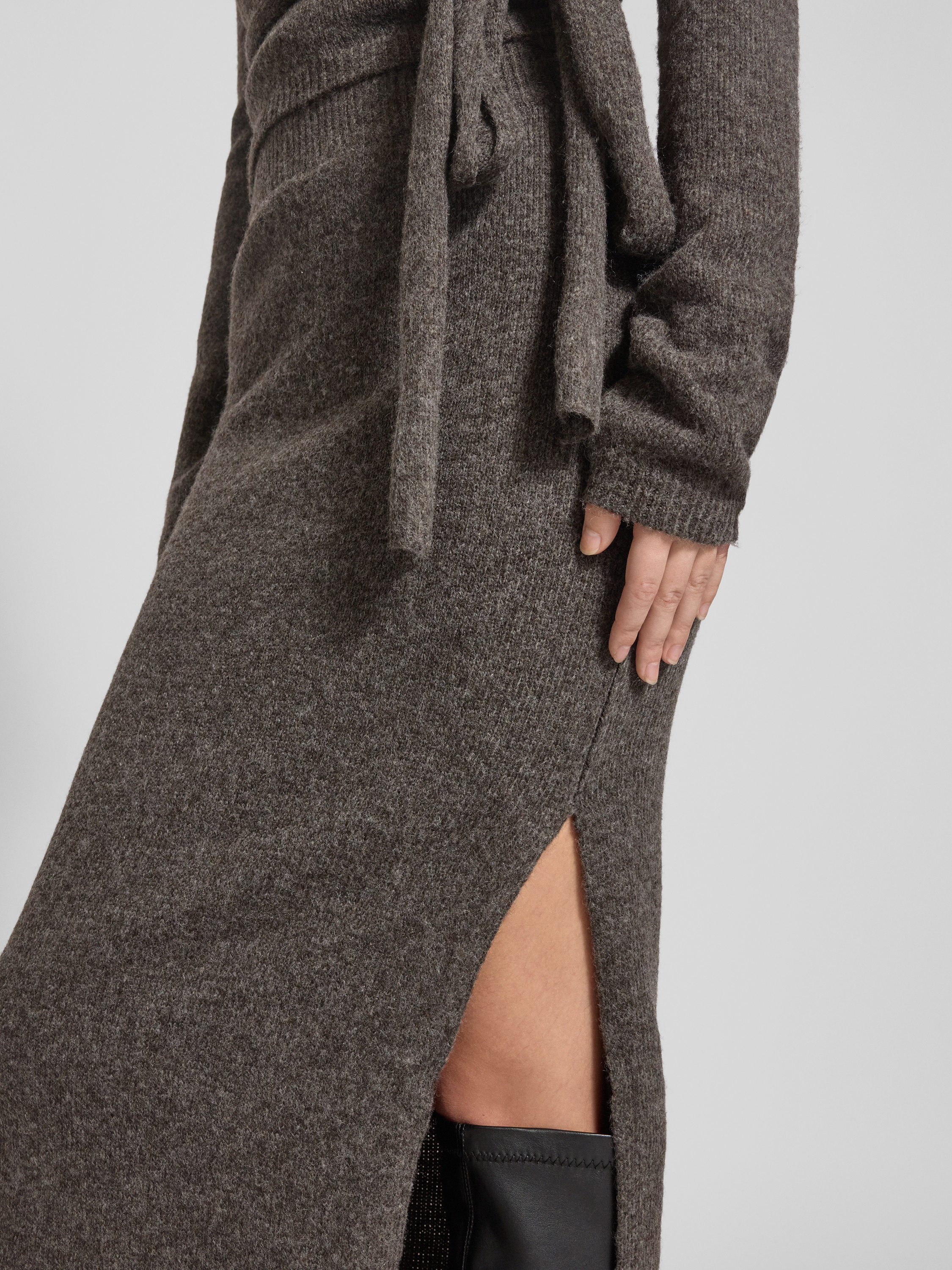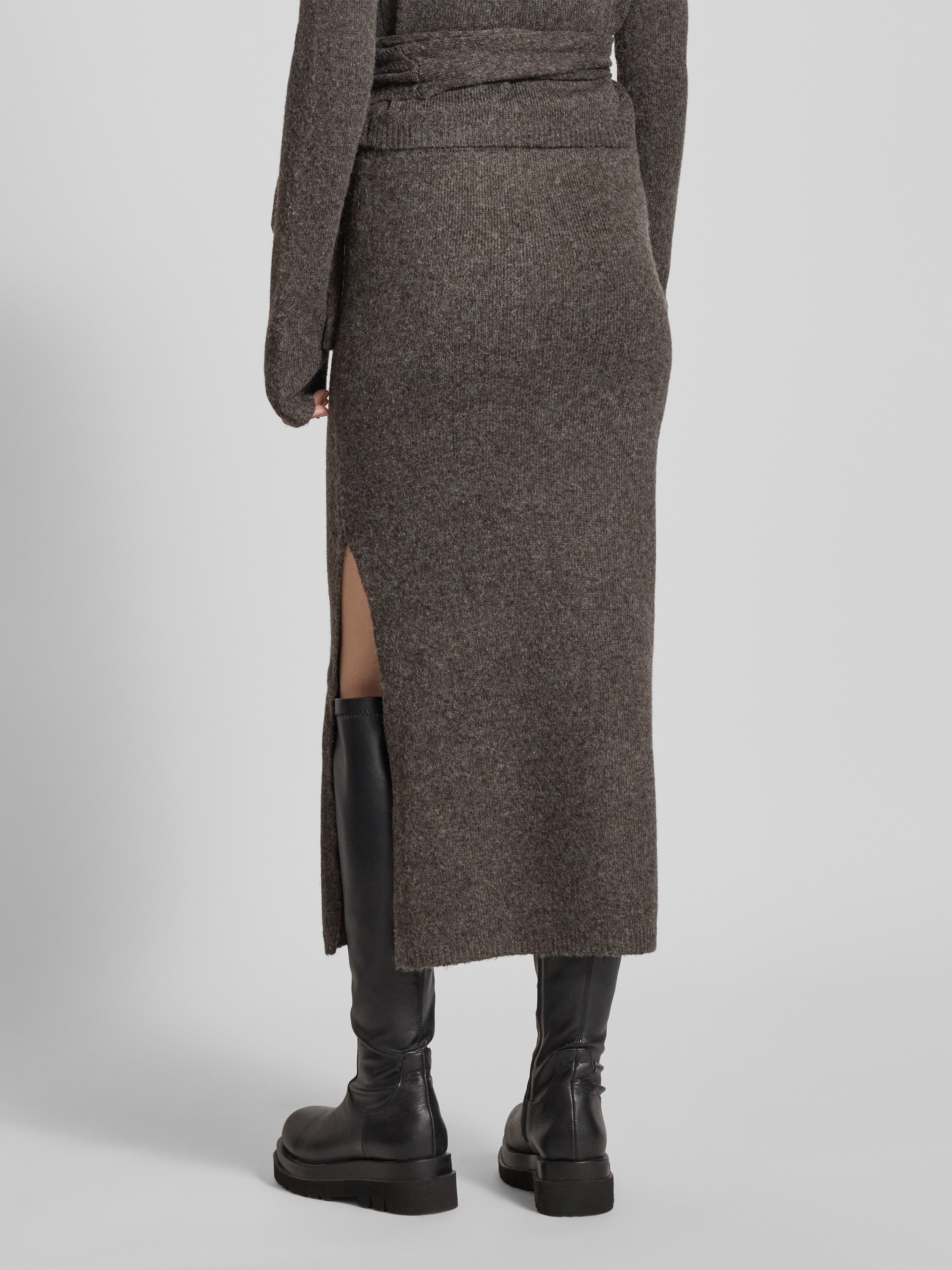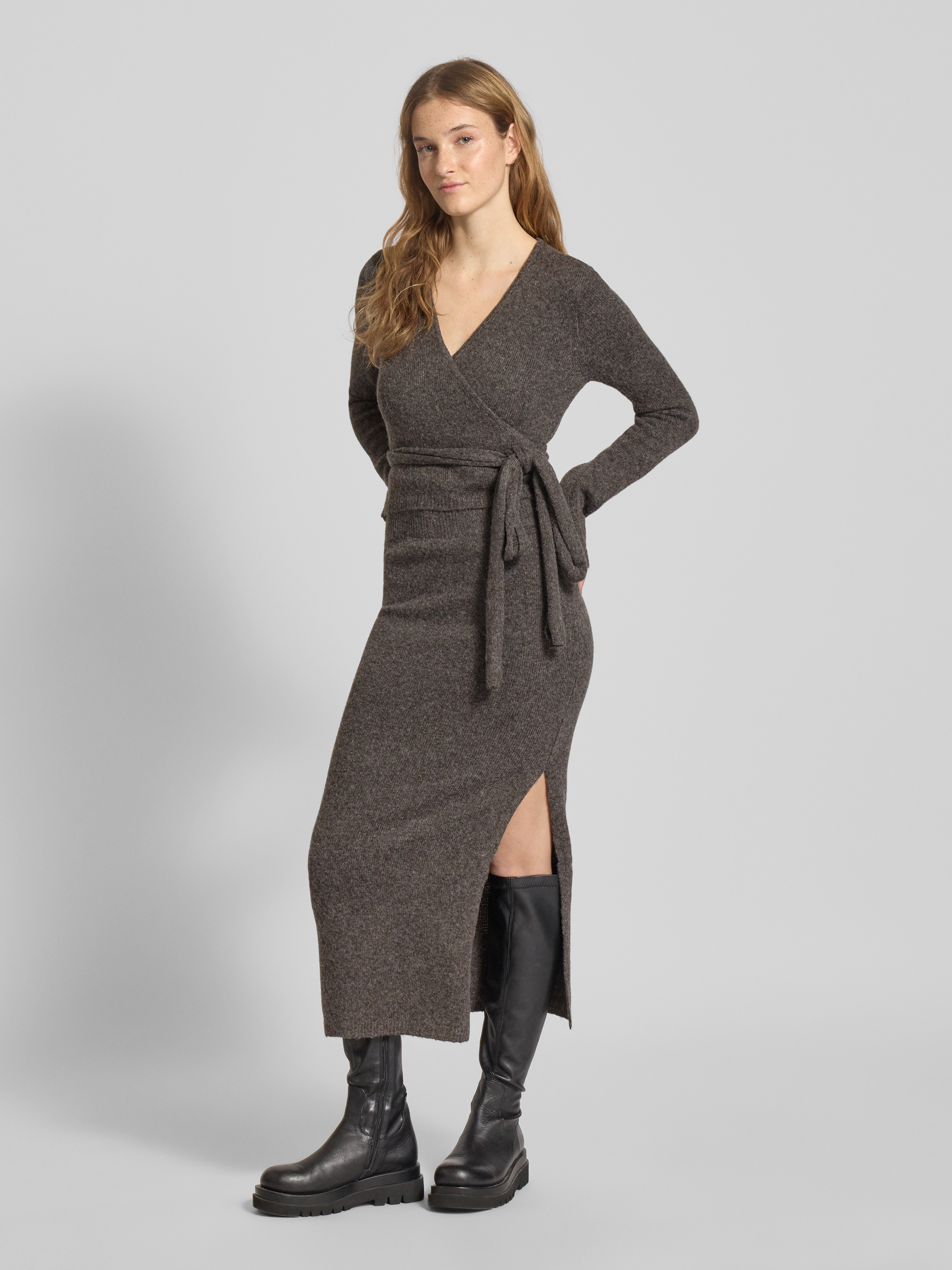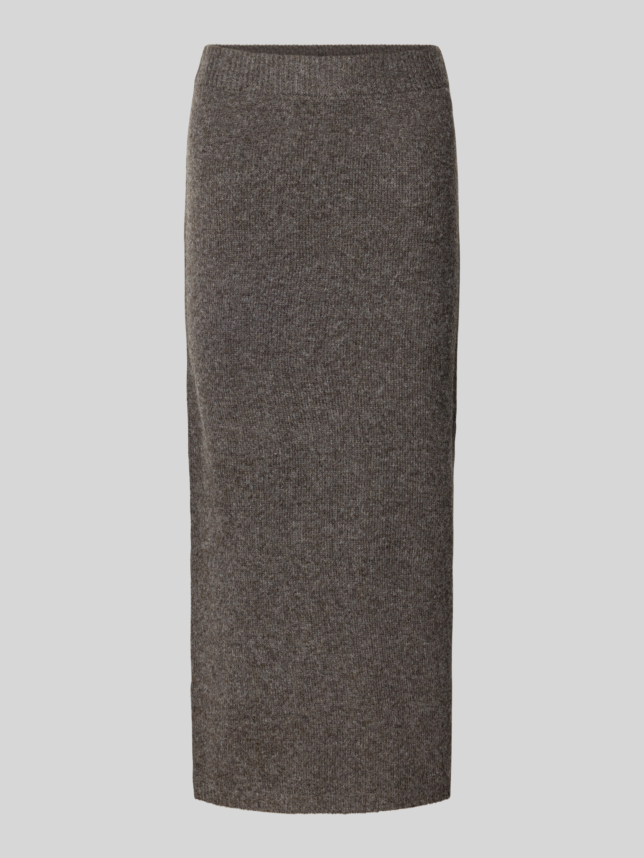 Spódnica midi o kroju slim fit z imitacji dzianiny model ‘Julienne’ - ciemnobrązowy