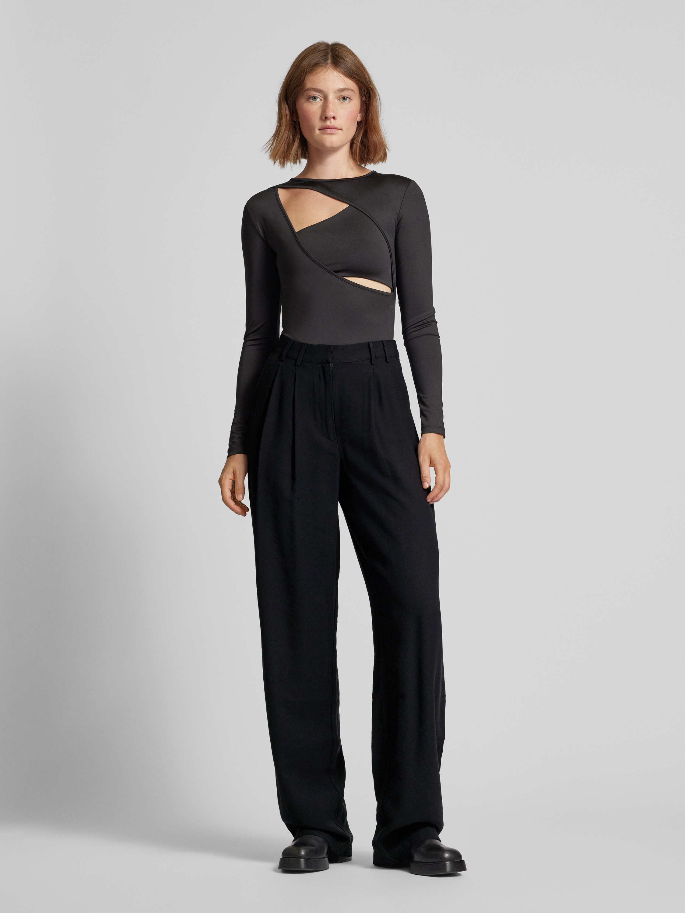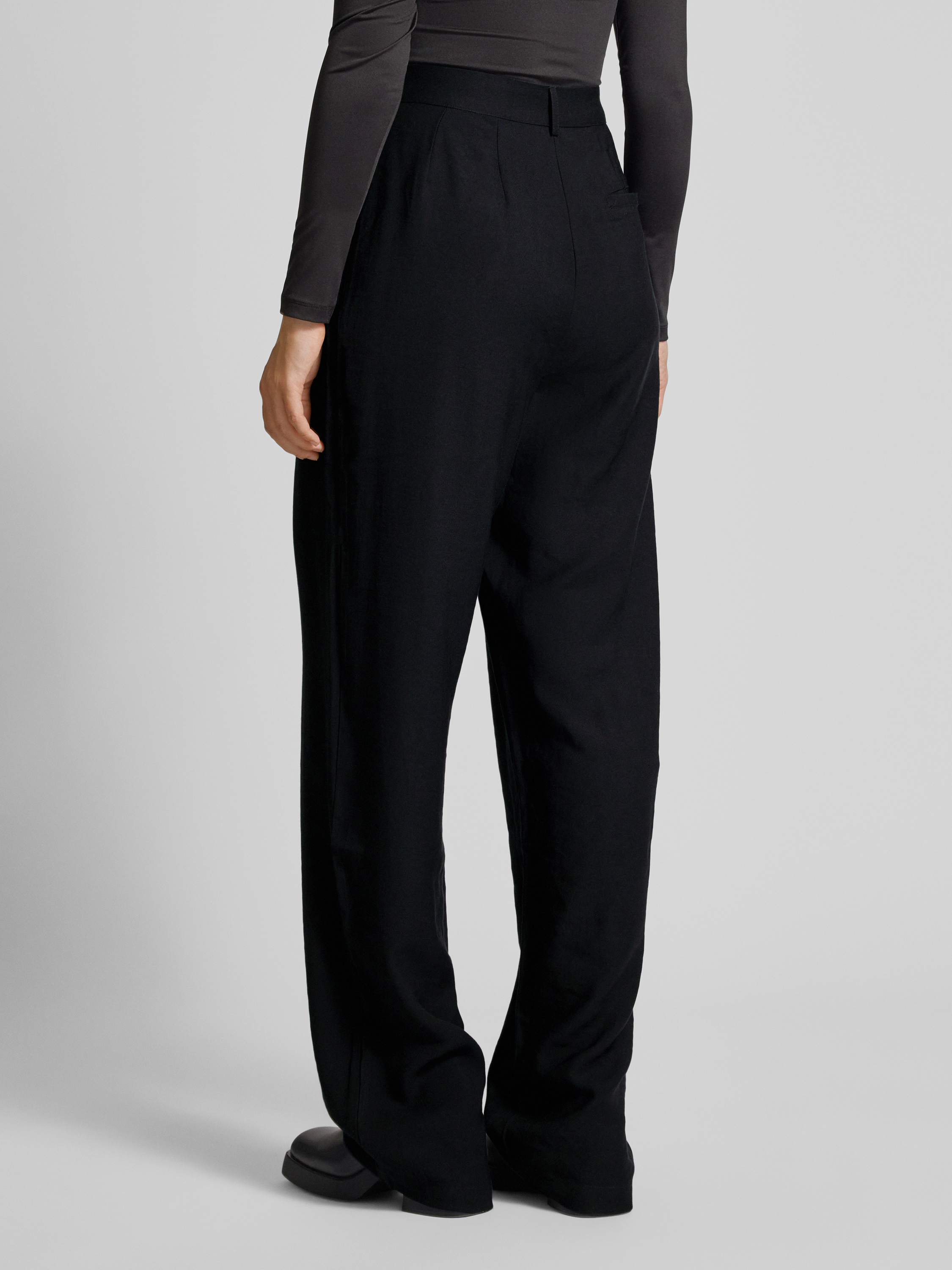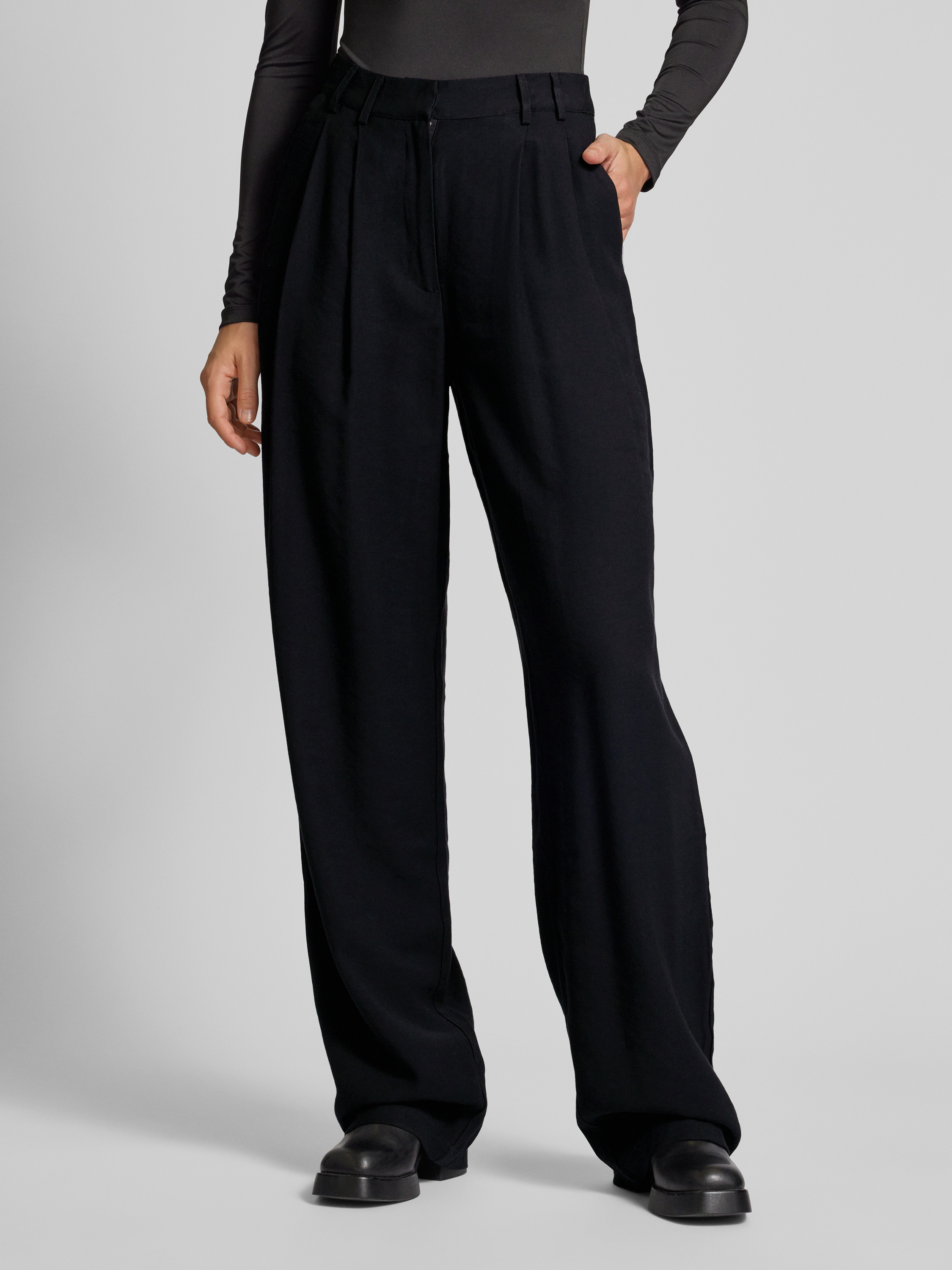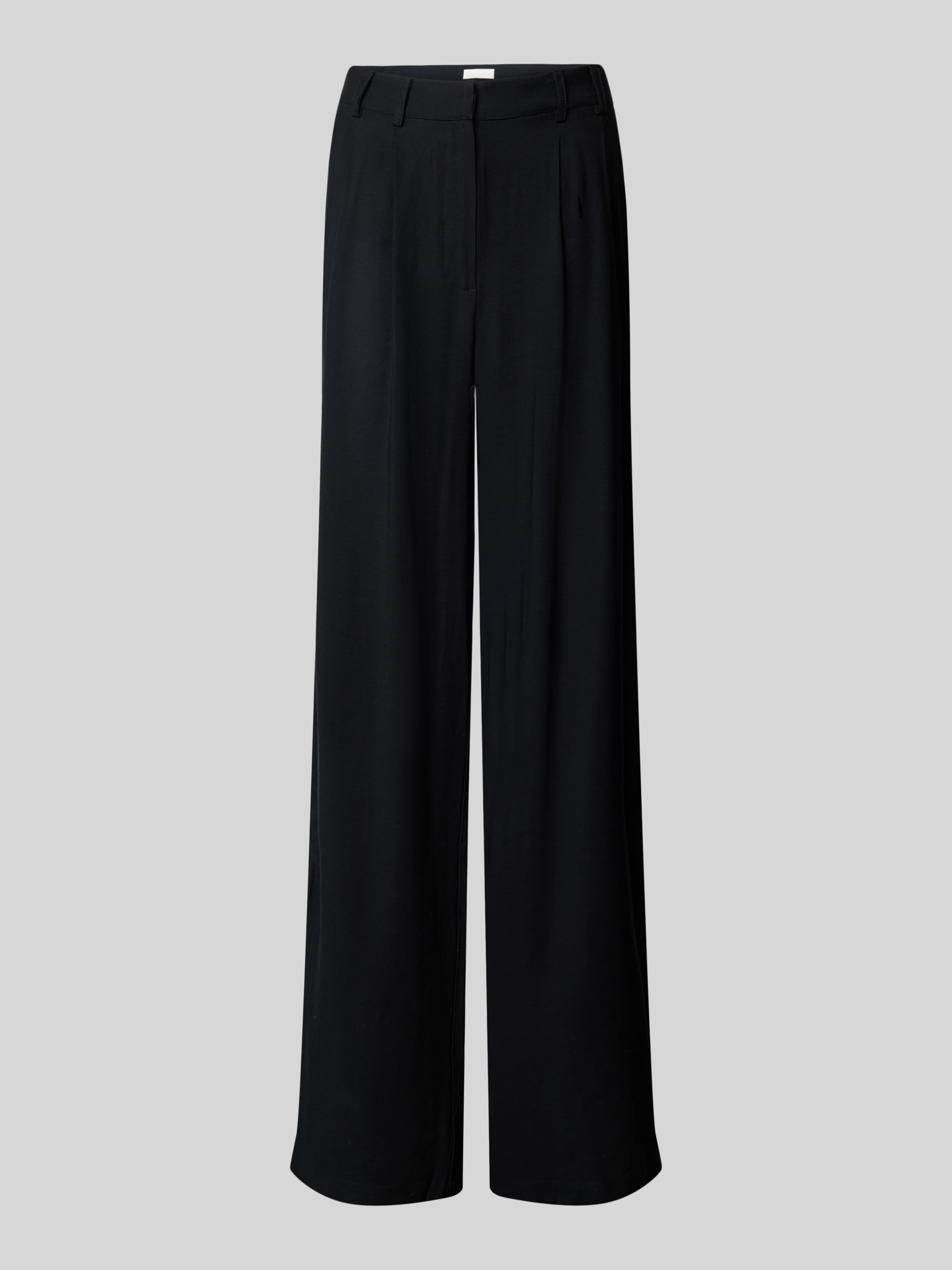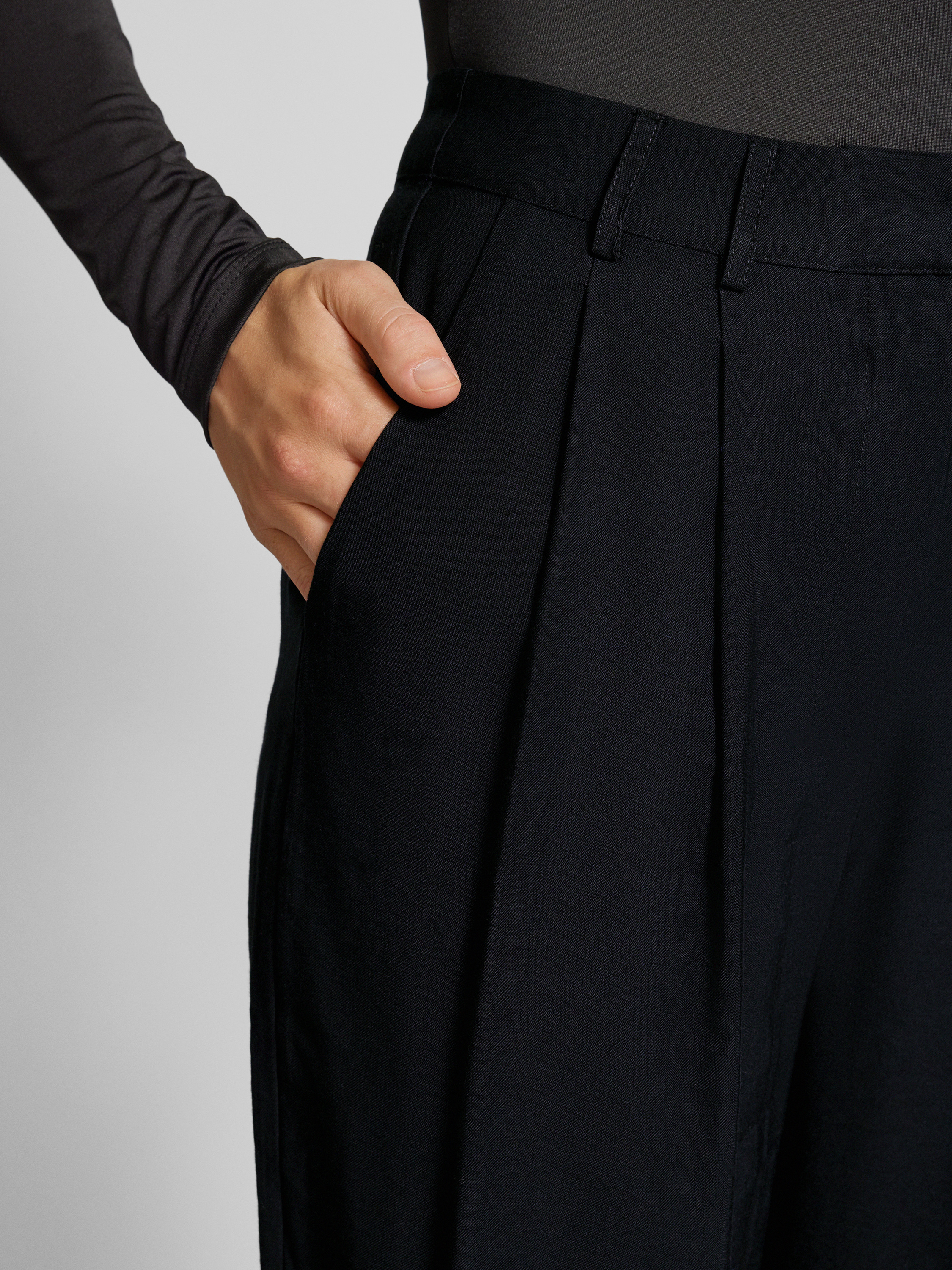 Spodnie materiałowe z szeroką nogawką i zakładkami w pasie model ‘Draco’ - czarny