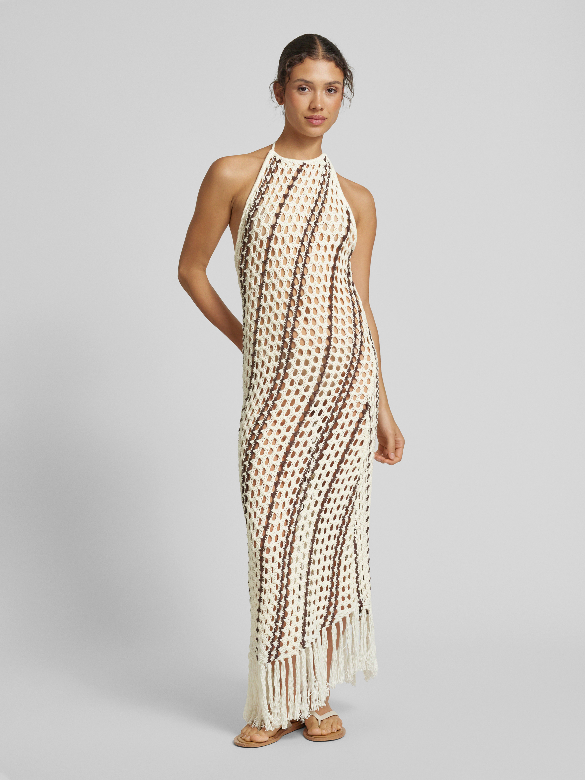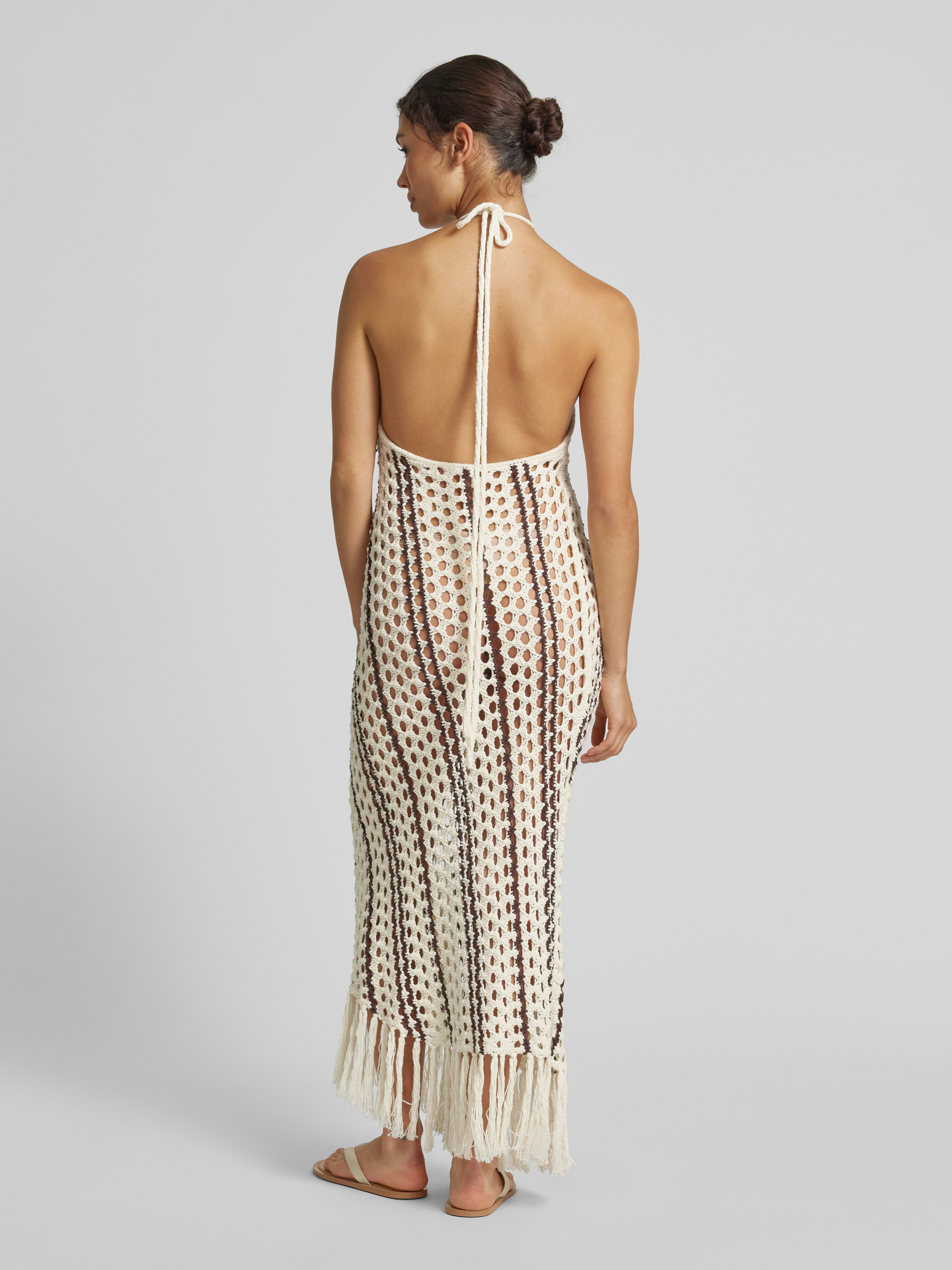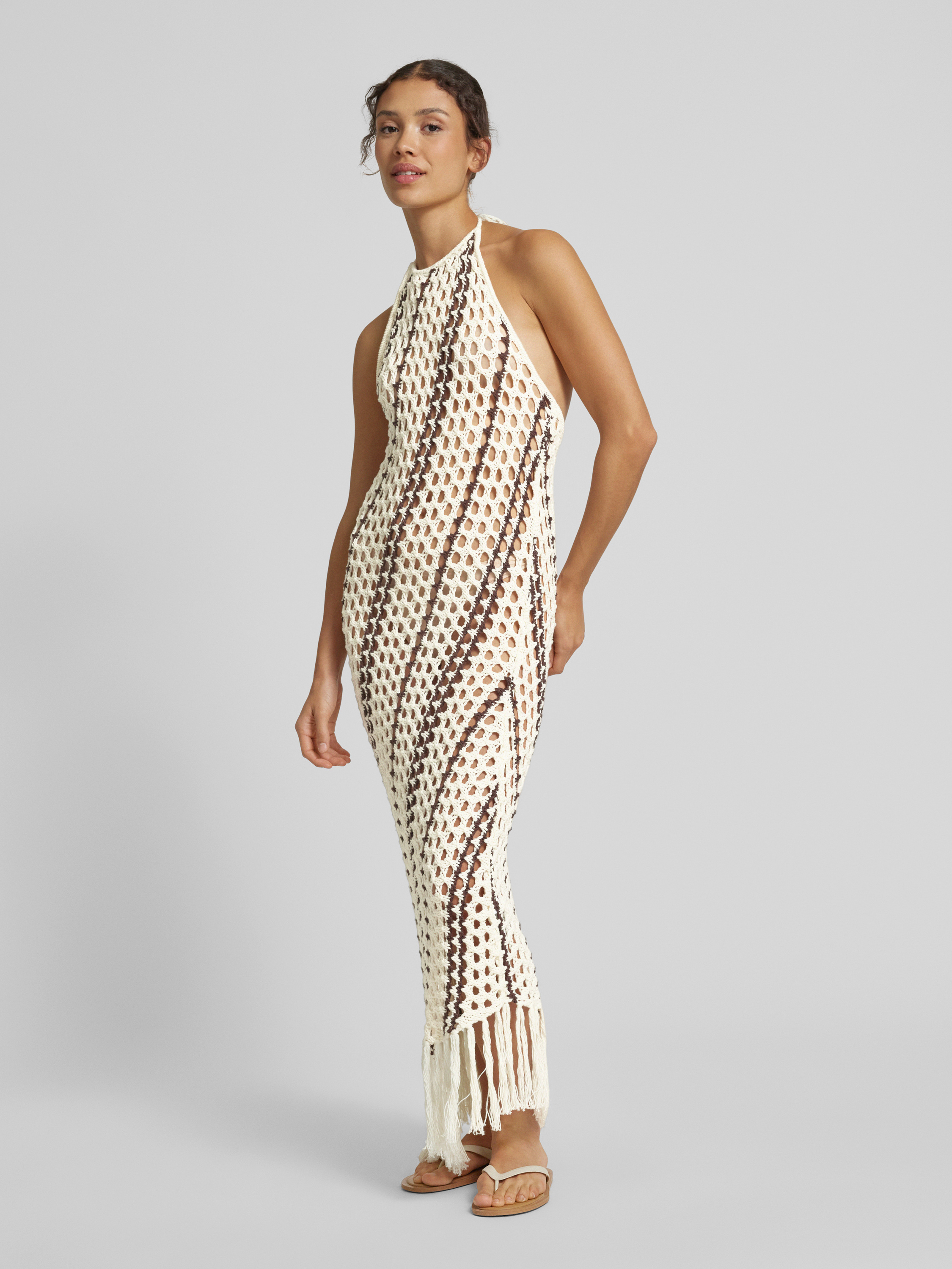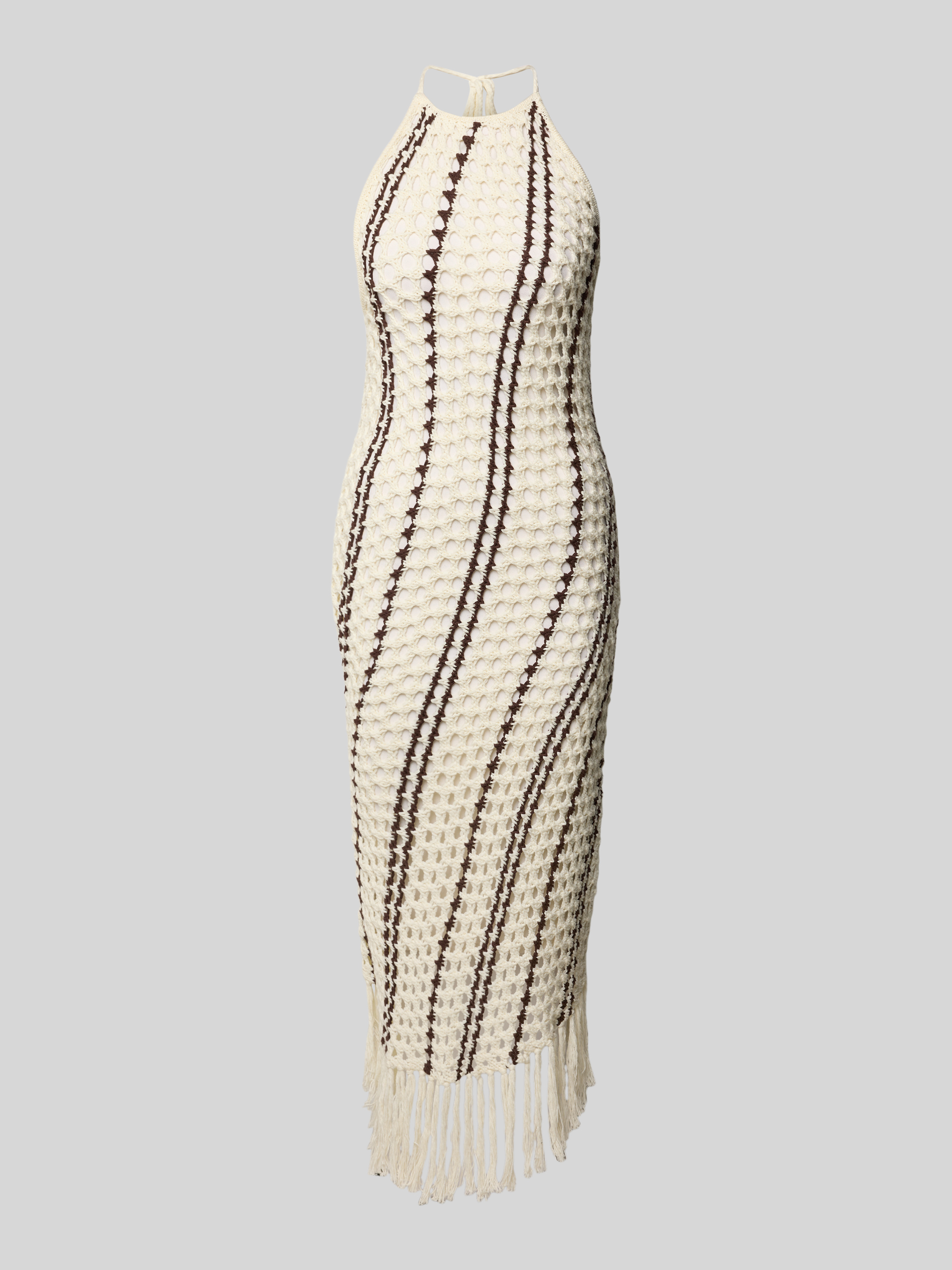 Sukienka z dzianiny z ażurowym wzorem - złamany biały