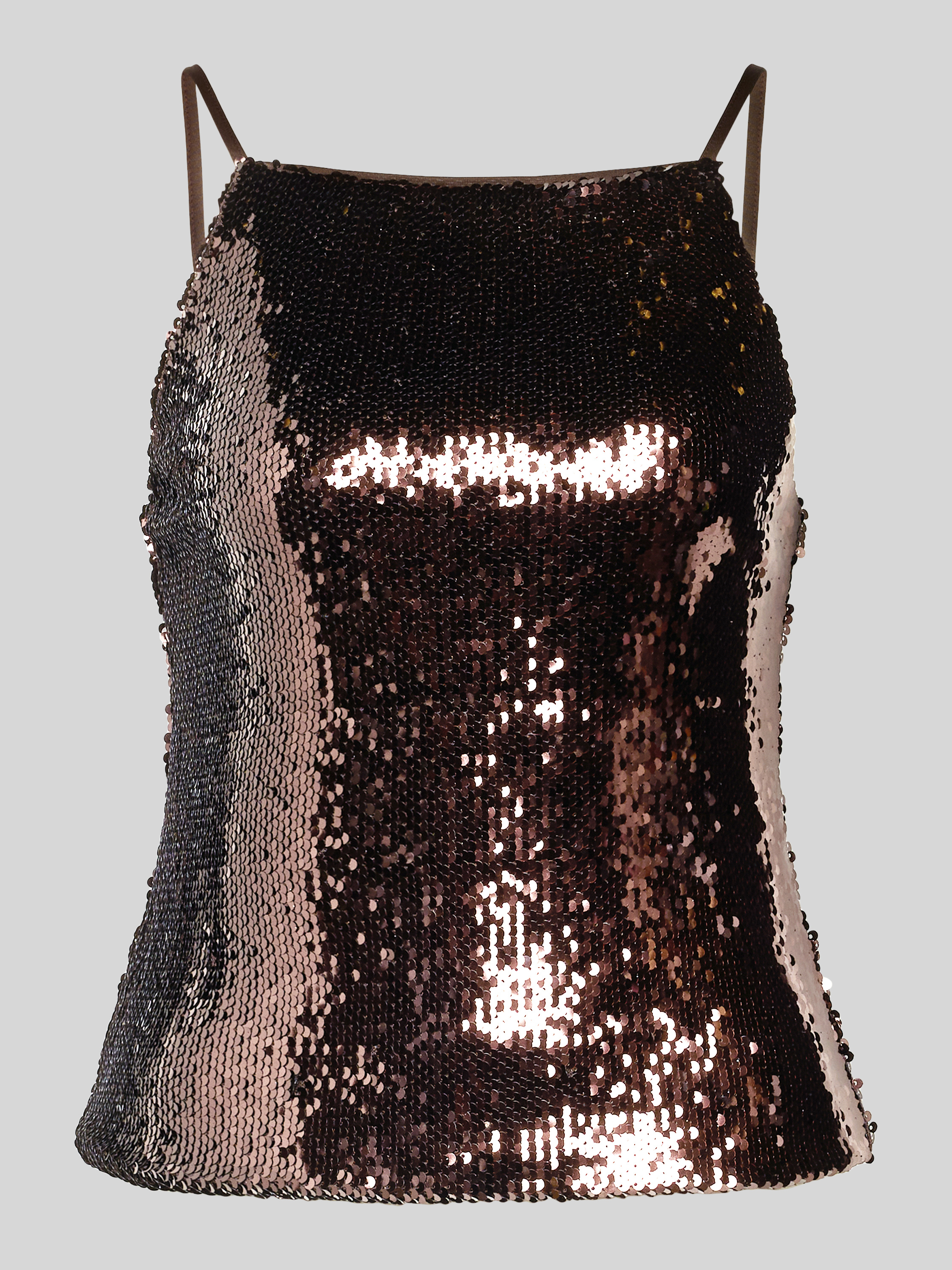 Top na ramiączkach z cekinami model ‘Inska’ - ciemnobrązowy