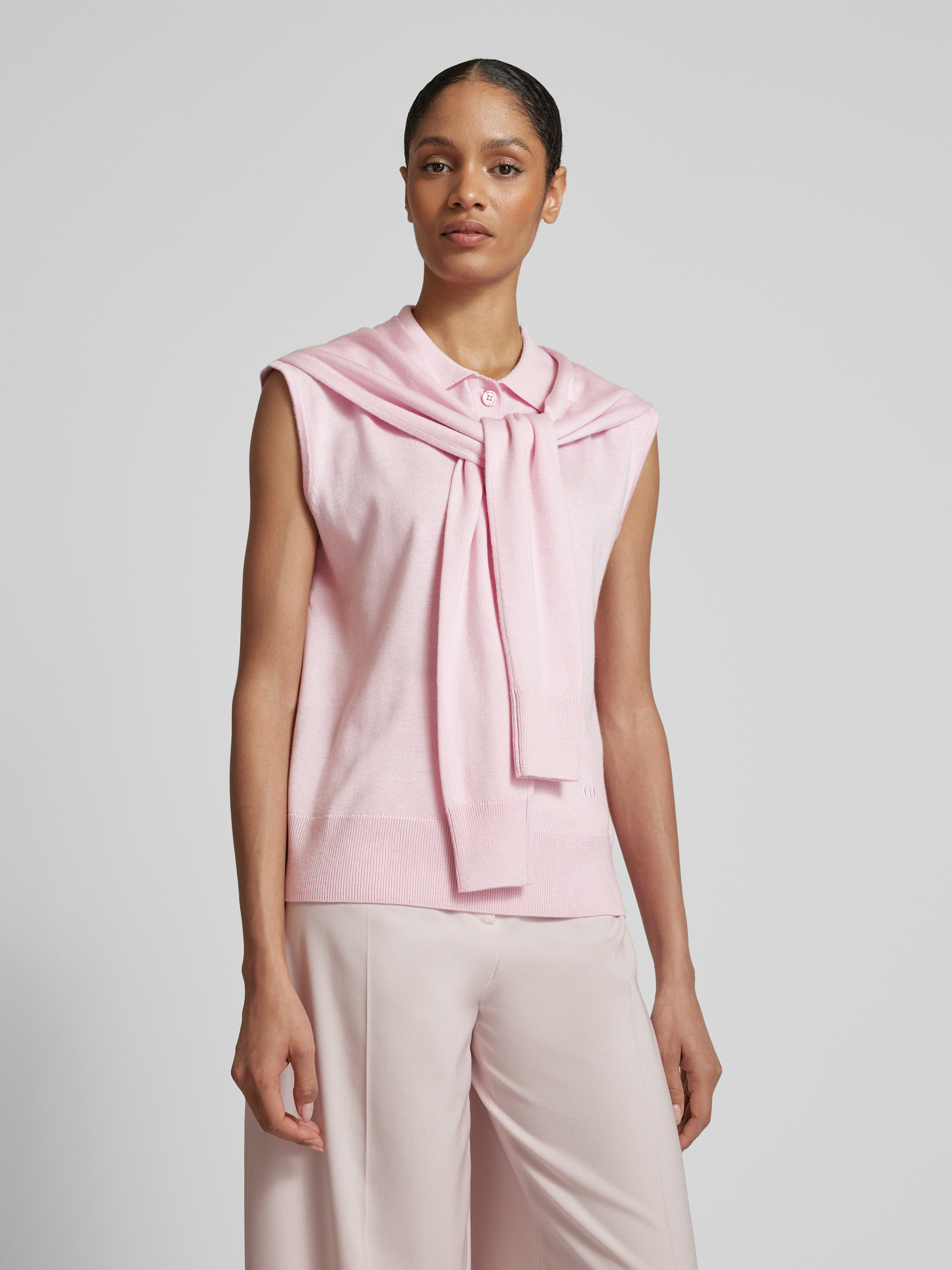 Top z dzianiny z dodatkiem jedwabiu - mocnoróżowy