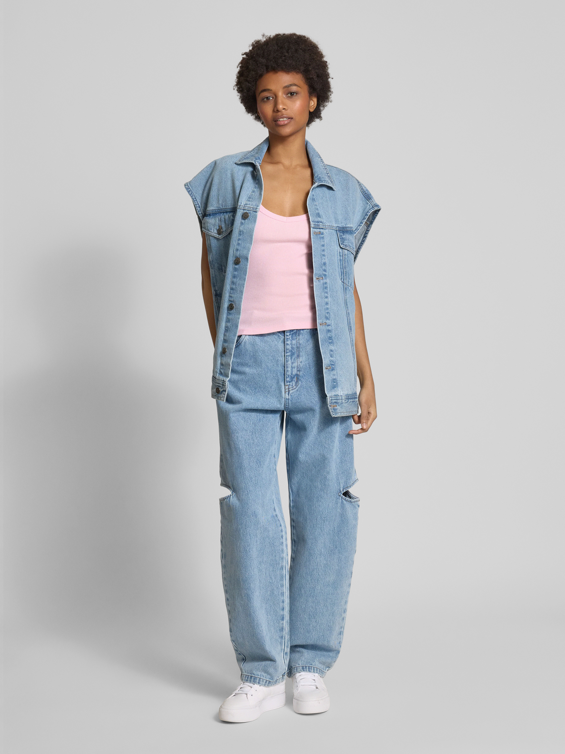Top z prążkowanymi wykończeniami model ‘Kaili’ - mocnoróżowy