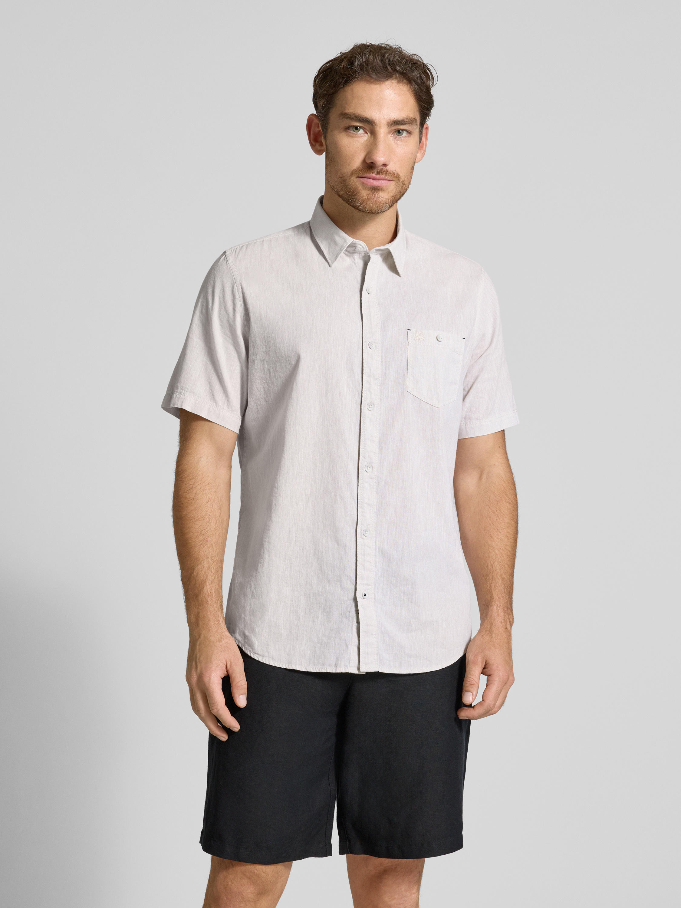 Koszula casualowa o kroju regular fit z kieszenią na piersi - beżowy