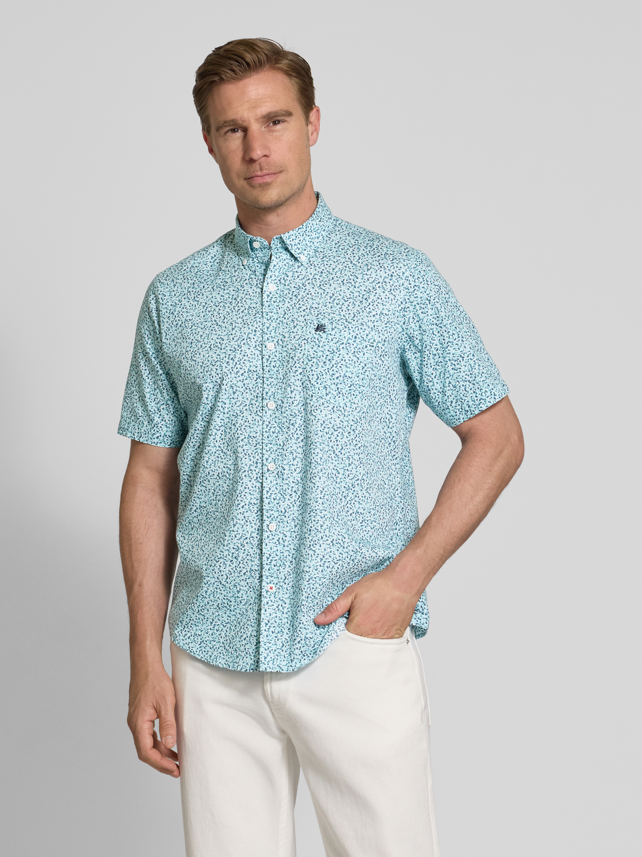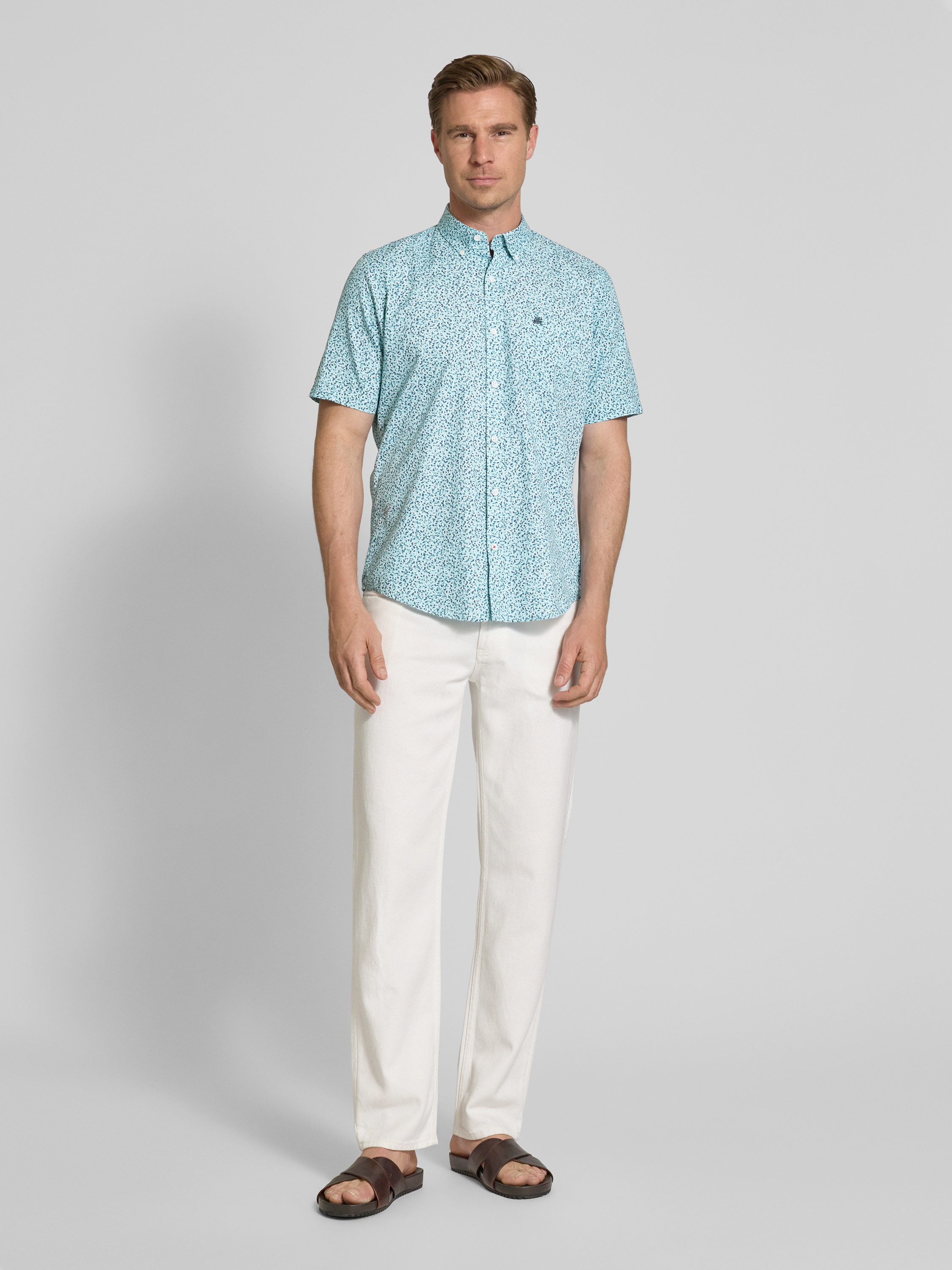 Koszula casualowa o kroju regular fit z wyhaftowanym logo - turkusowy