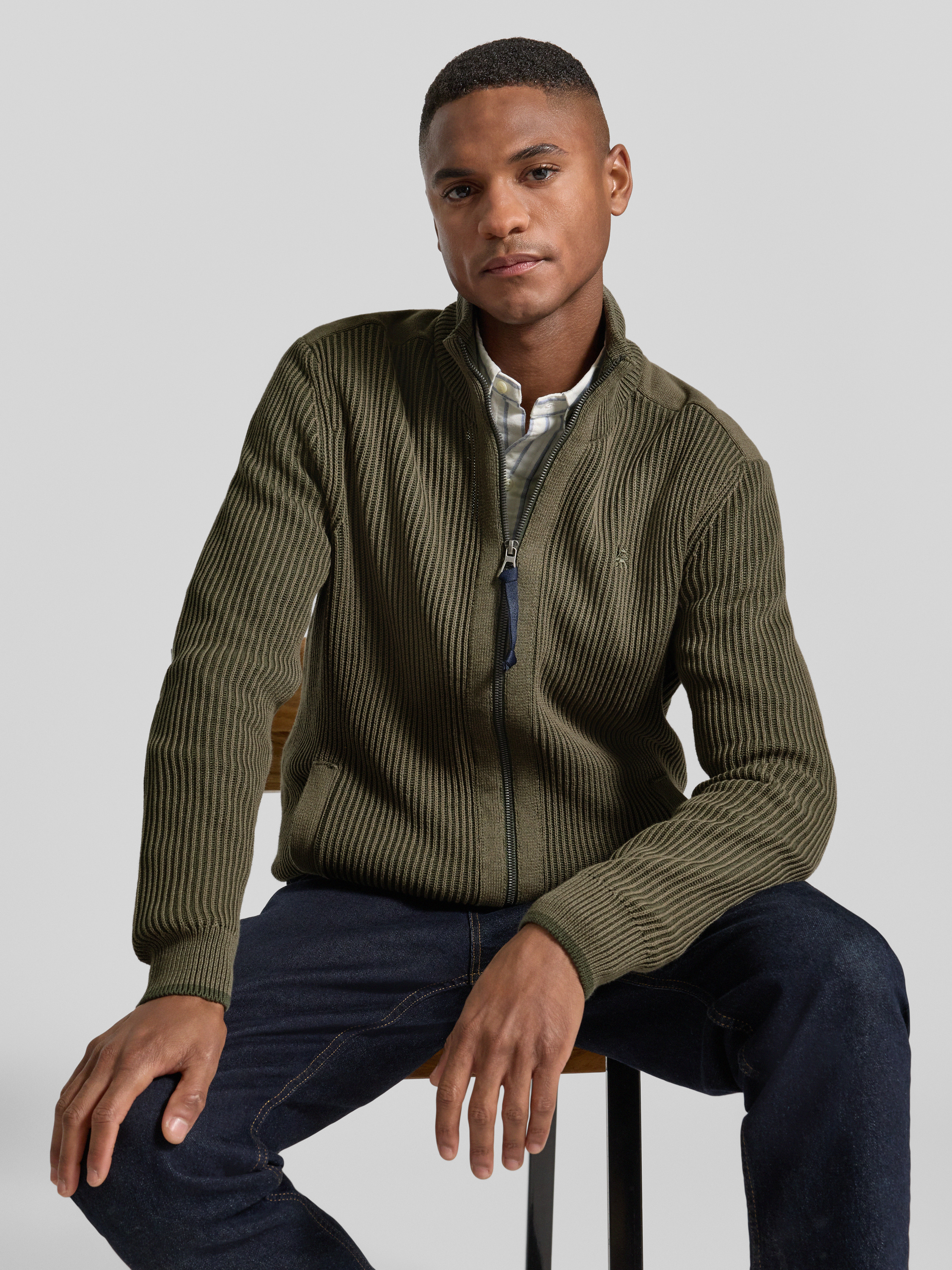 Kurtka z dzianiny z zamkiem błyskawicznym - oliwkowy