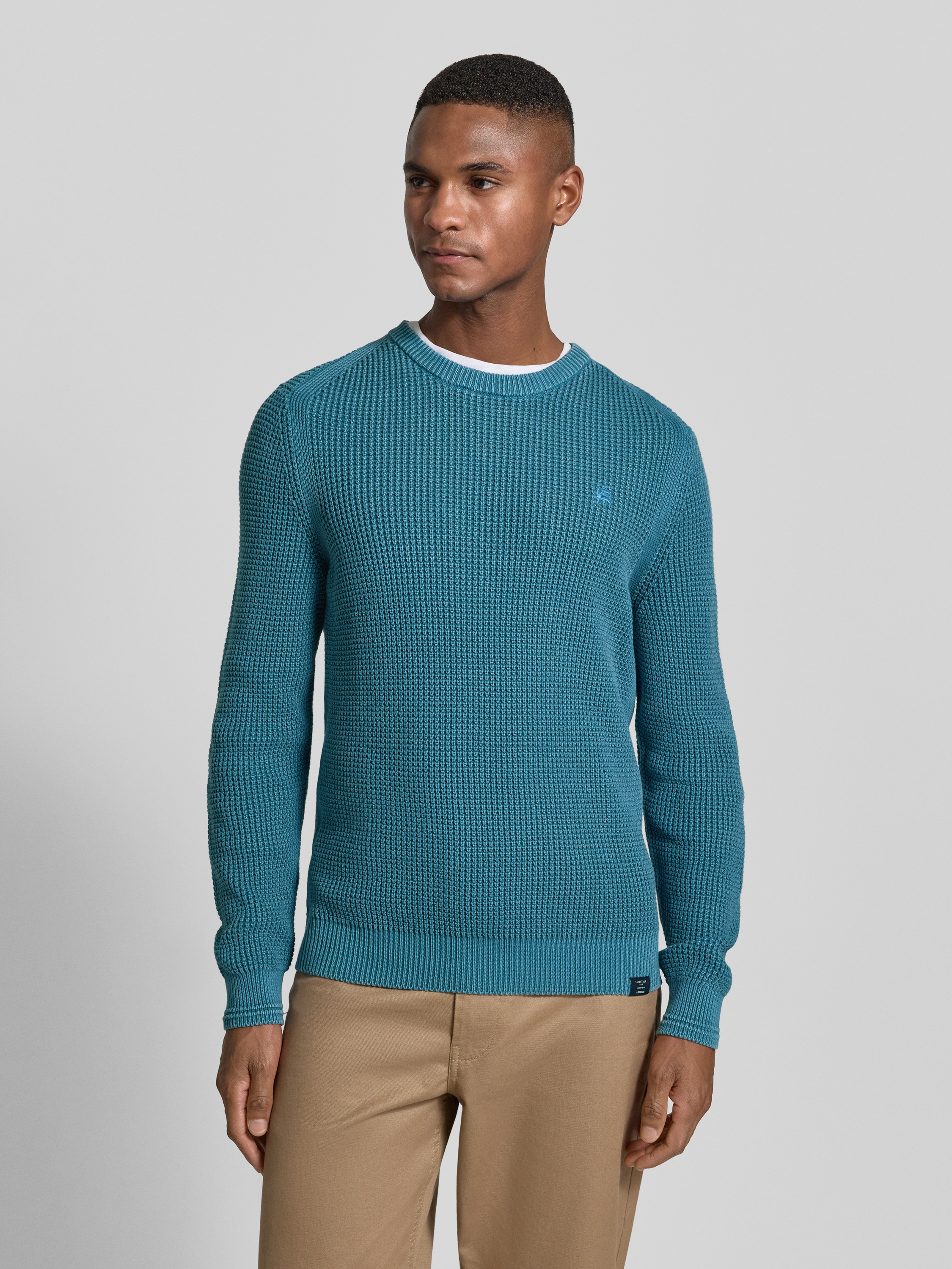 Sweter o kroju regular fit z imitacji dzianiny - morski