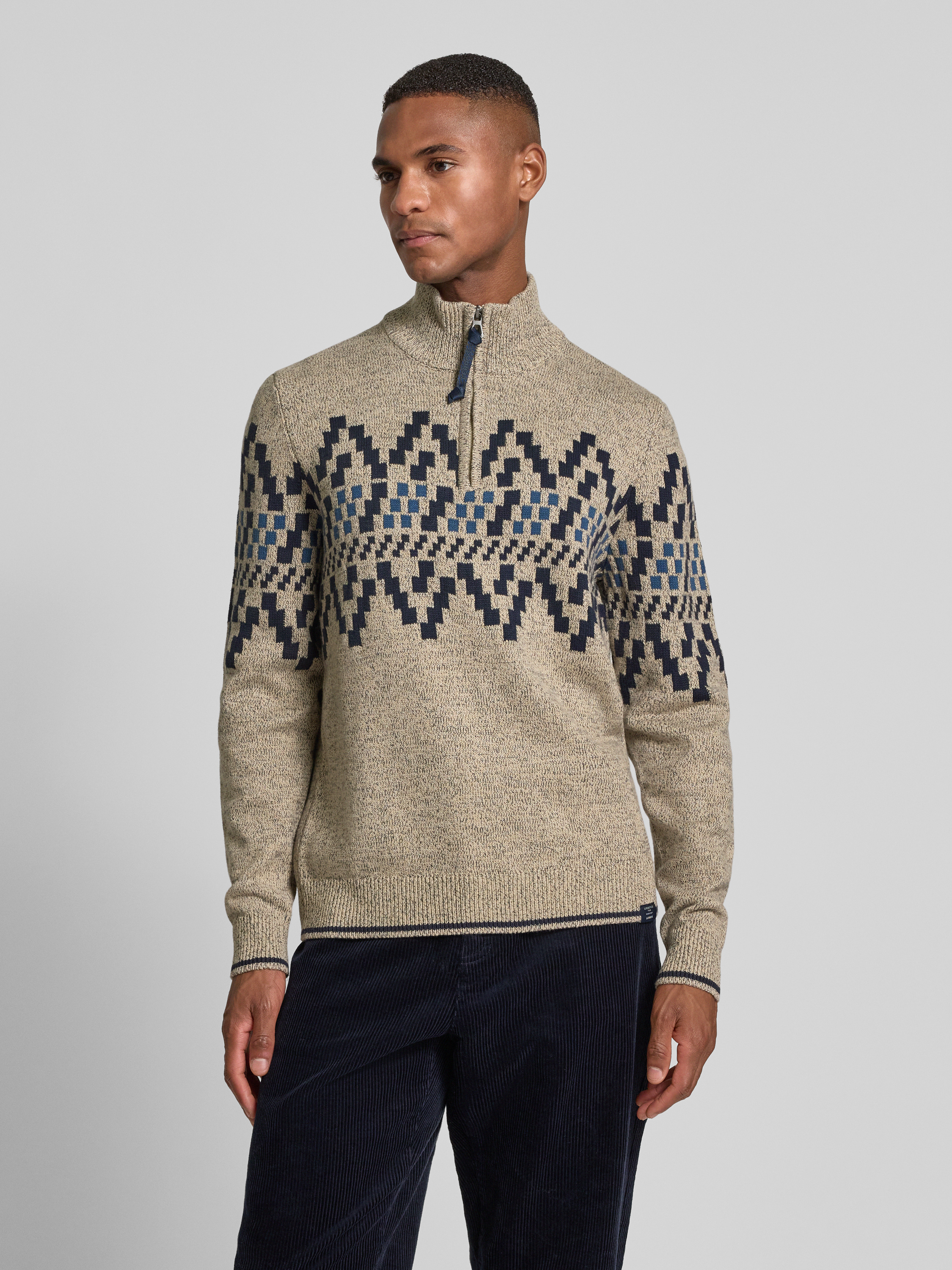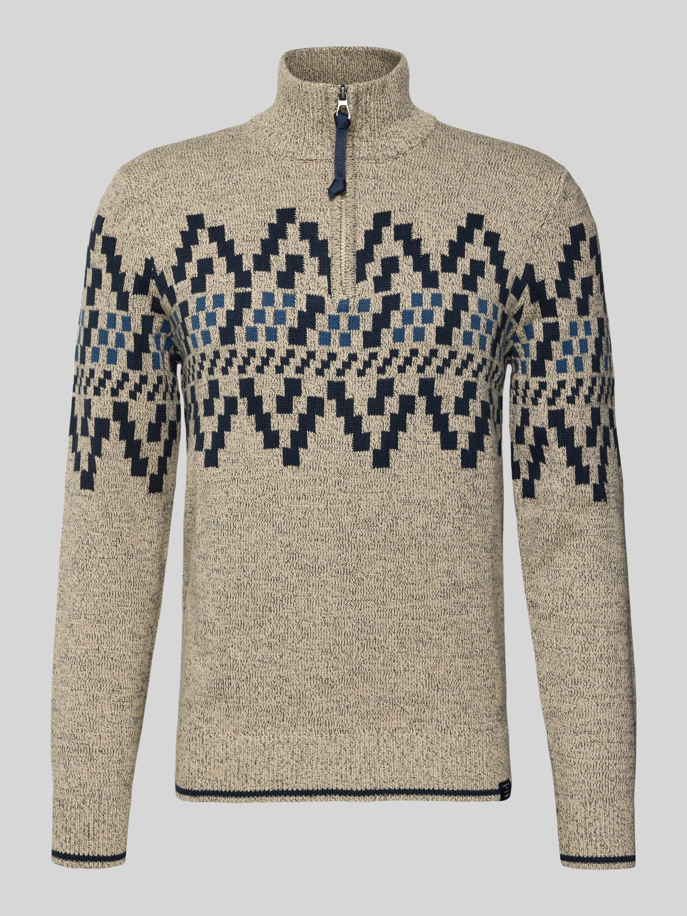 Sweter z dzianiny o kroju regular fit z kołnierzem zapinanym - beżowy