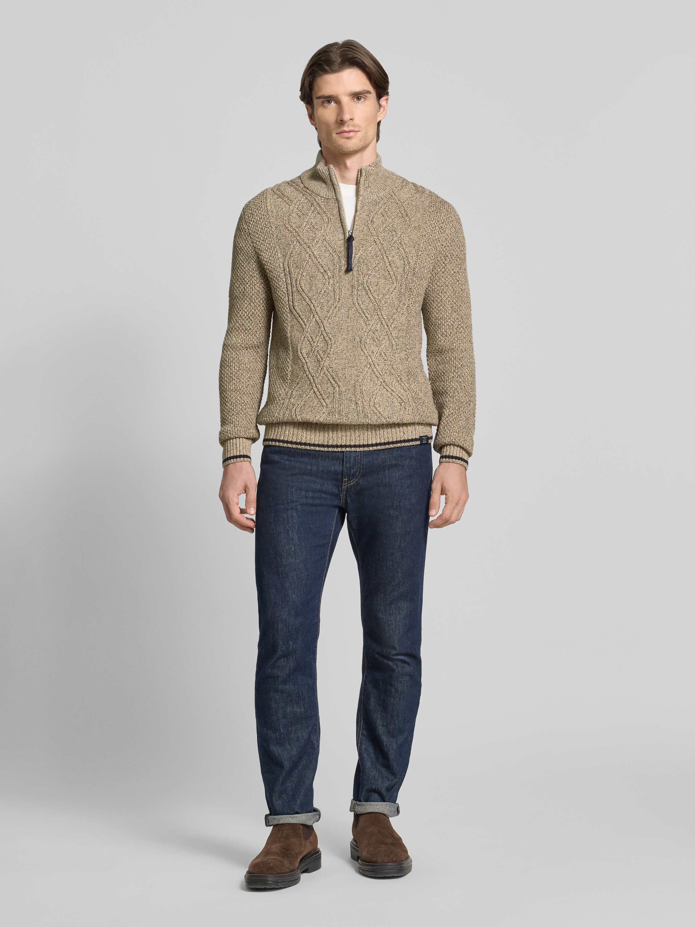 Sweter z dzianiny z kołnierzem - beżowy