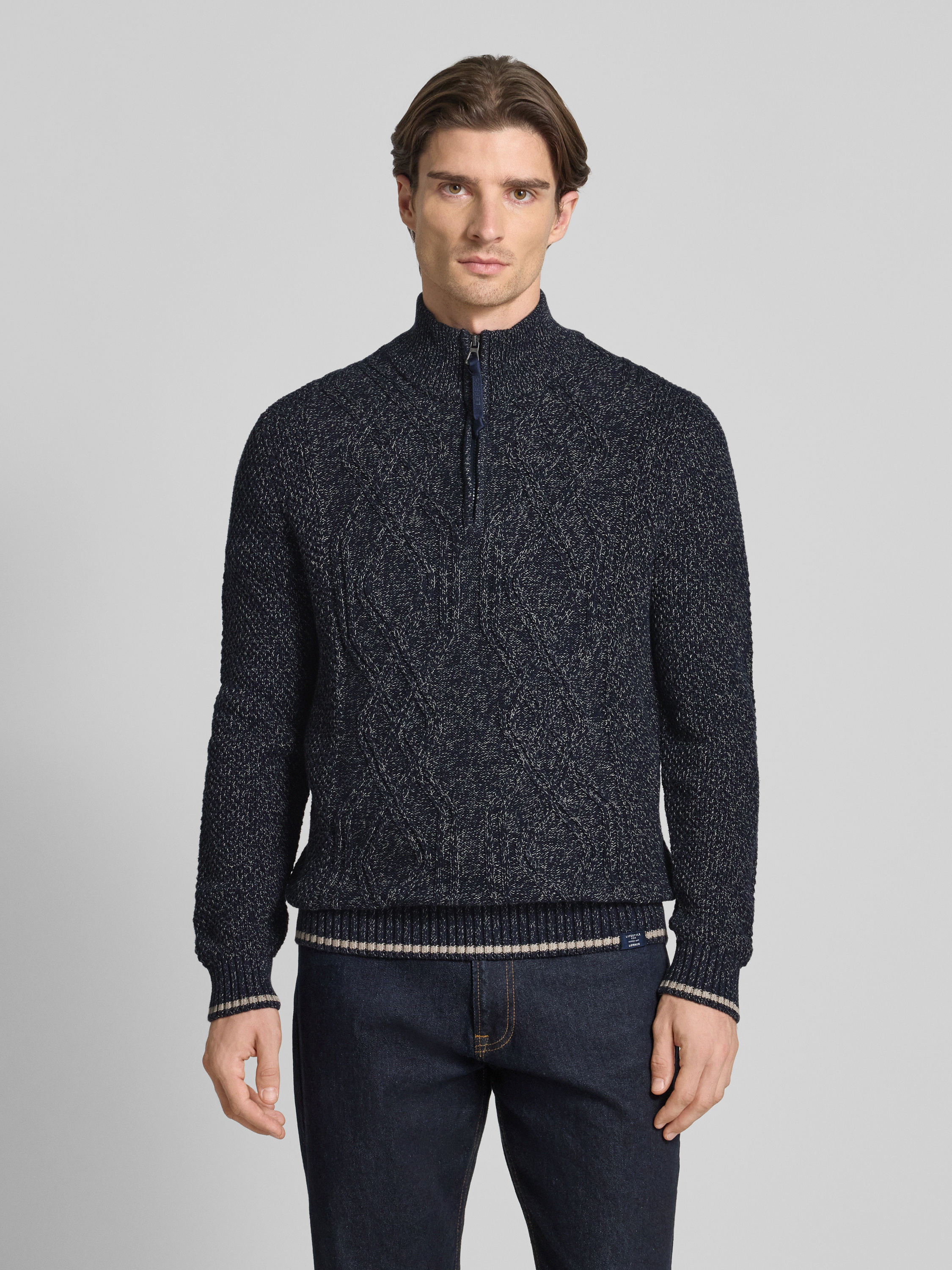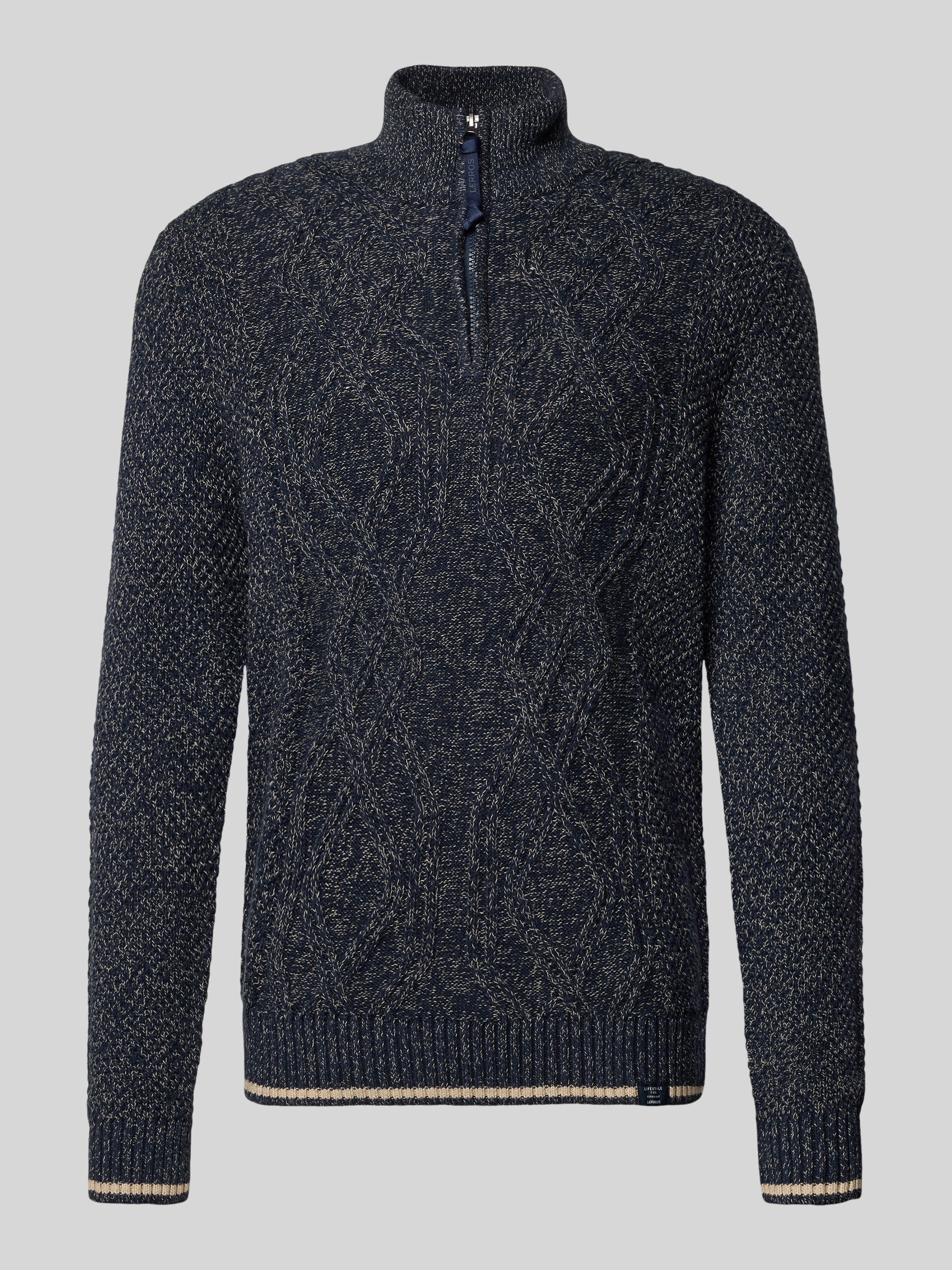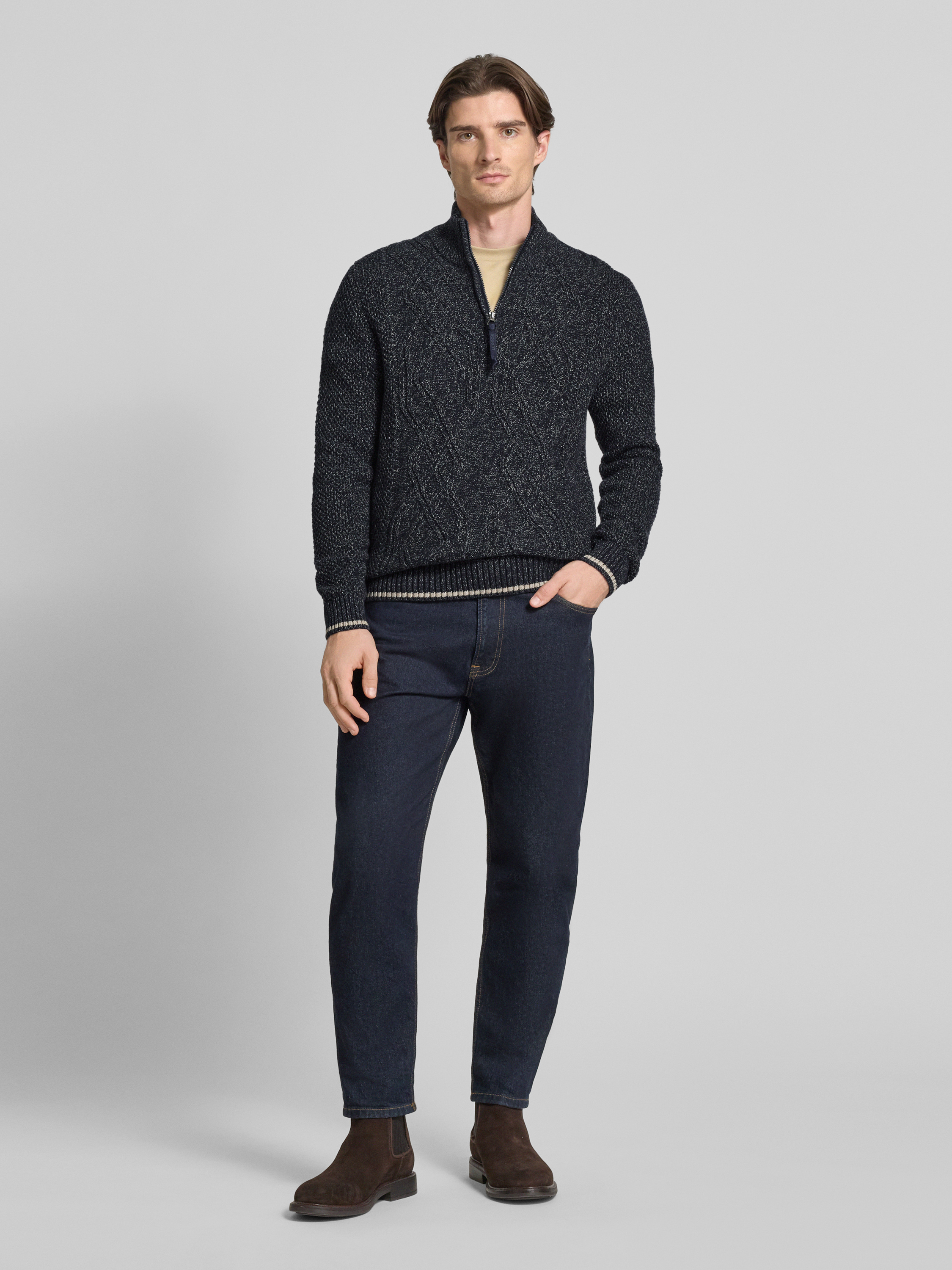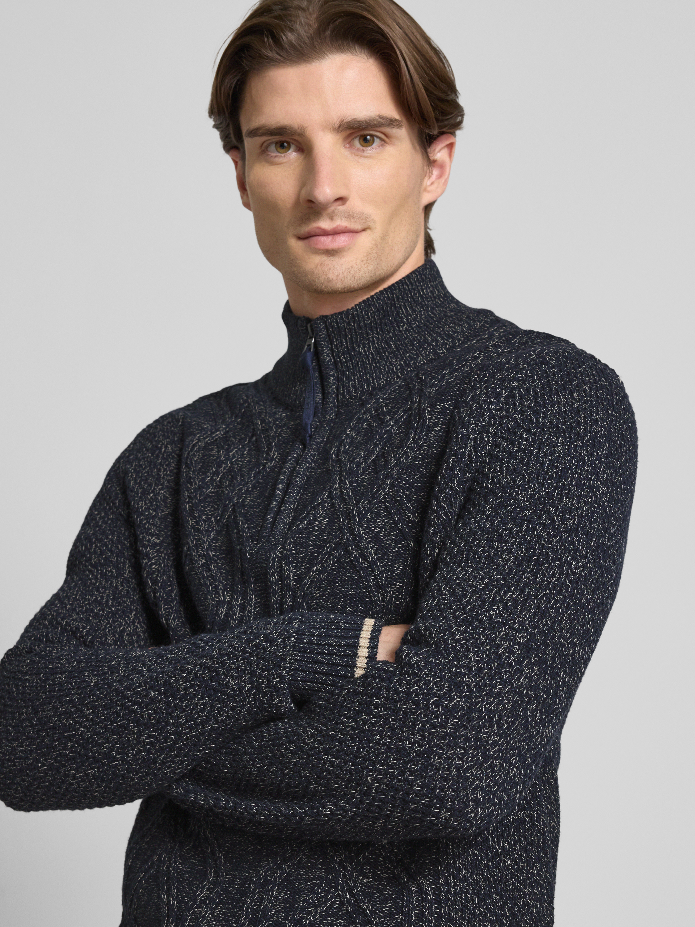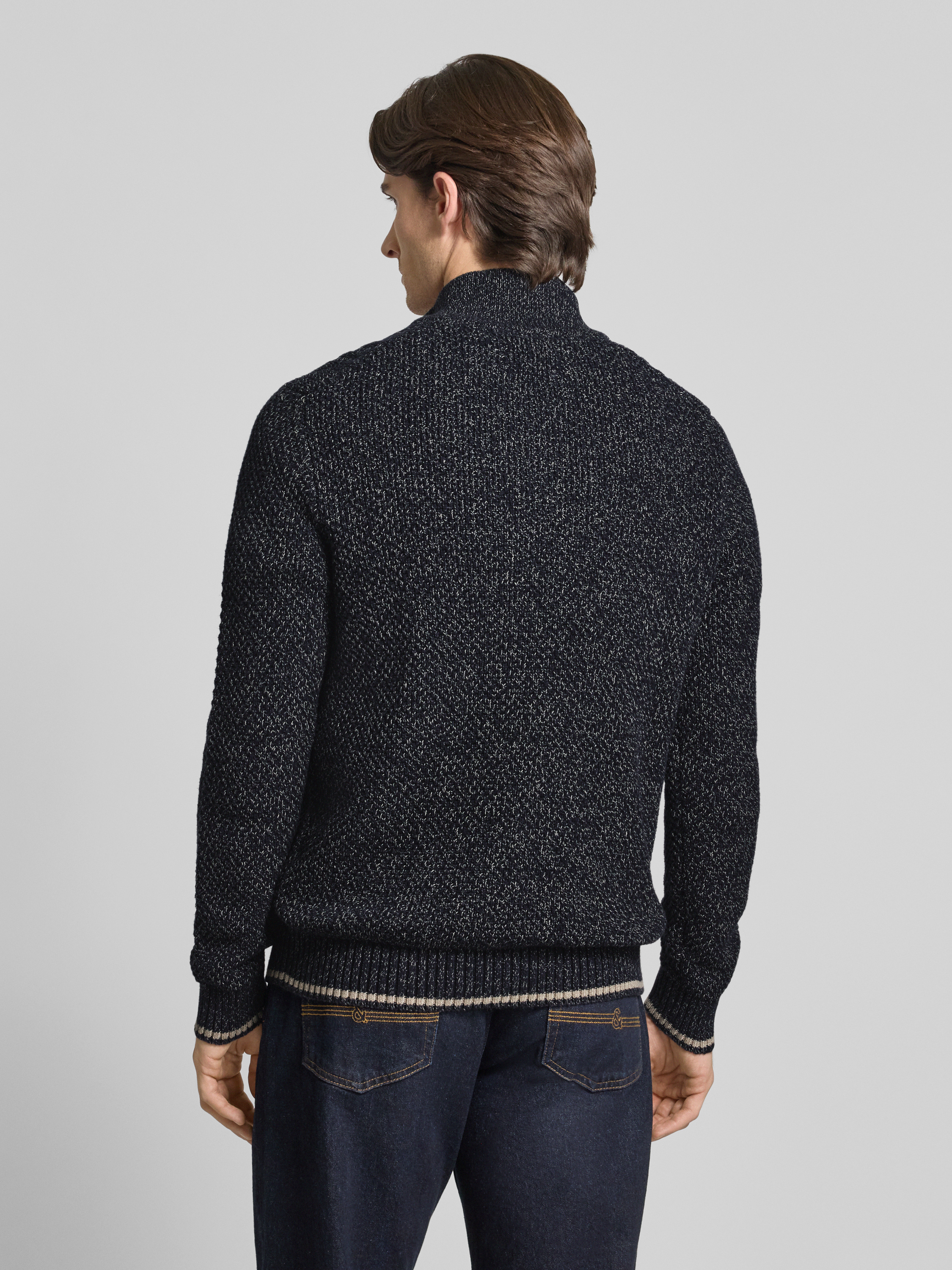 Sweter z dzianiny z kołnierzem - ciemnoniebieski