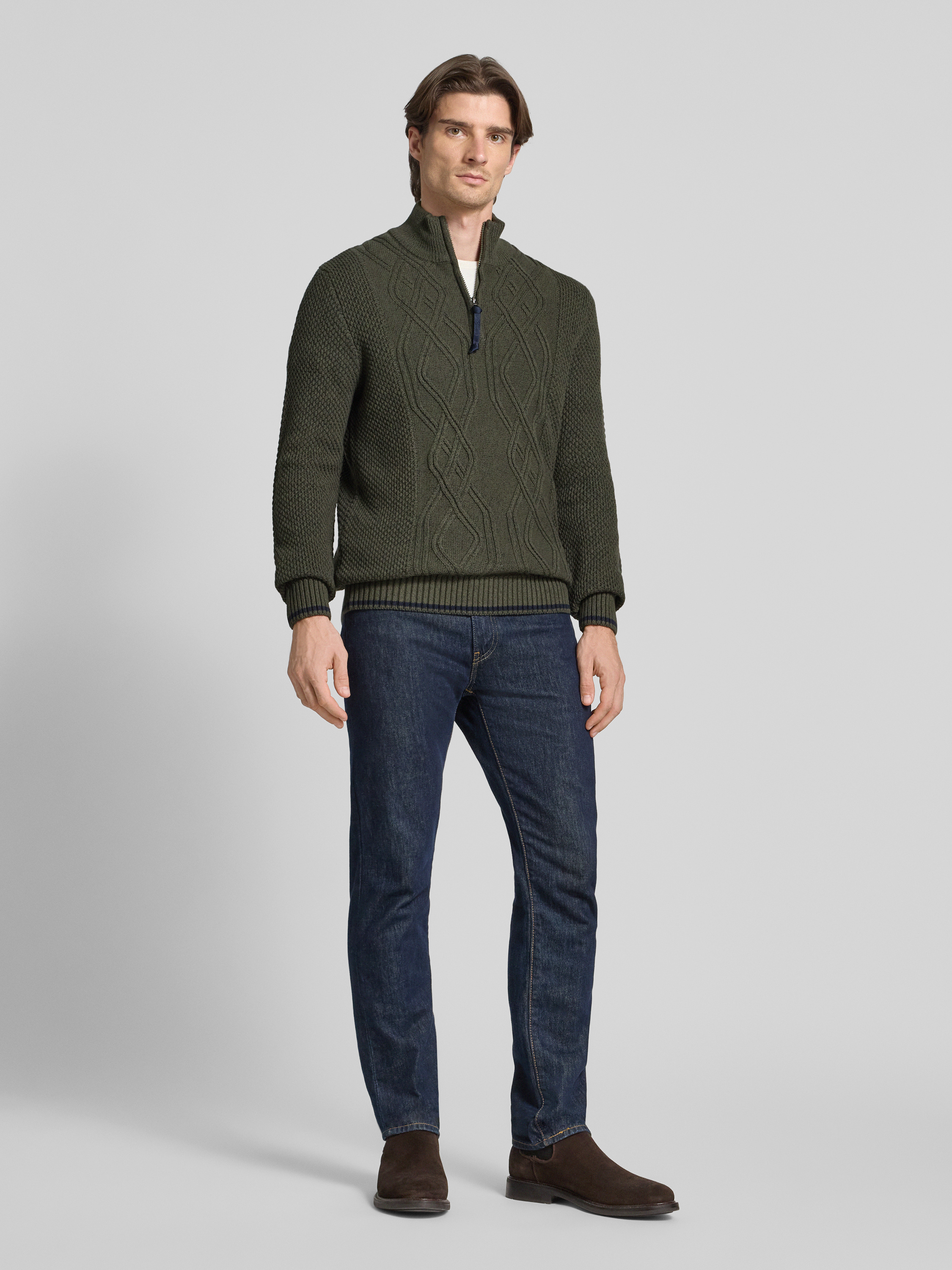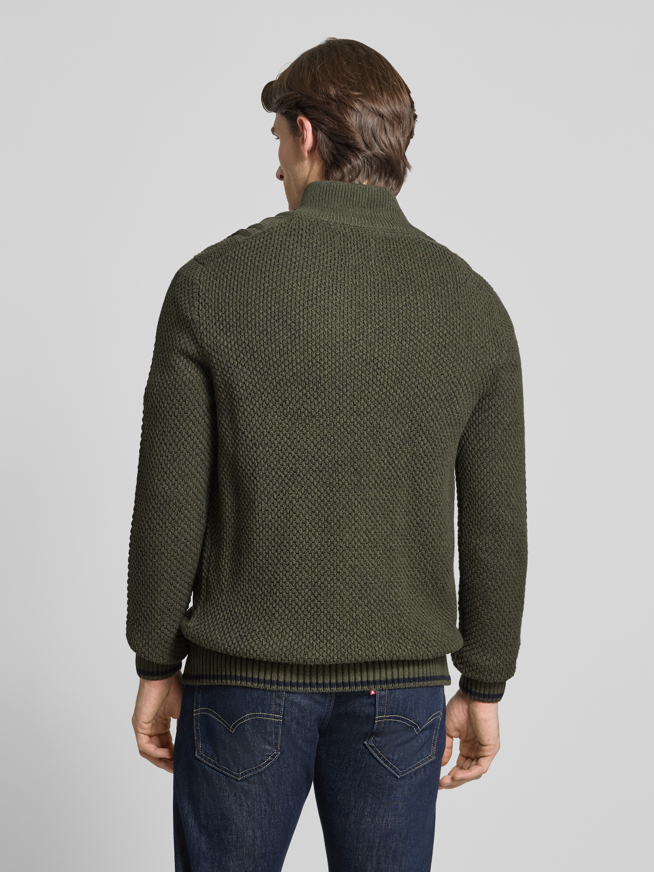 Sweter z dzianiny z kołnierzem - oliwkowy