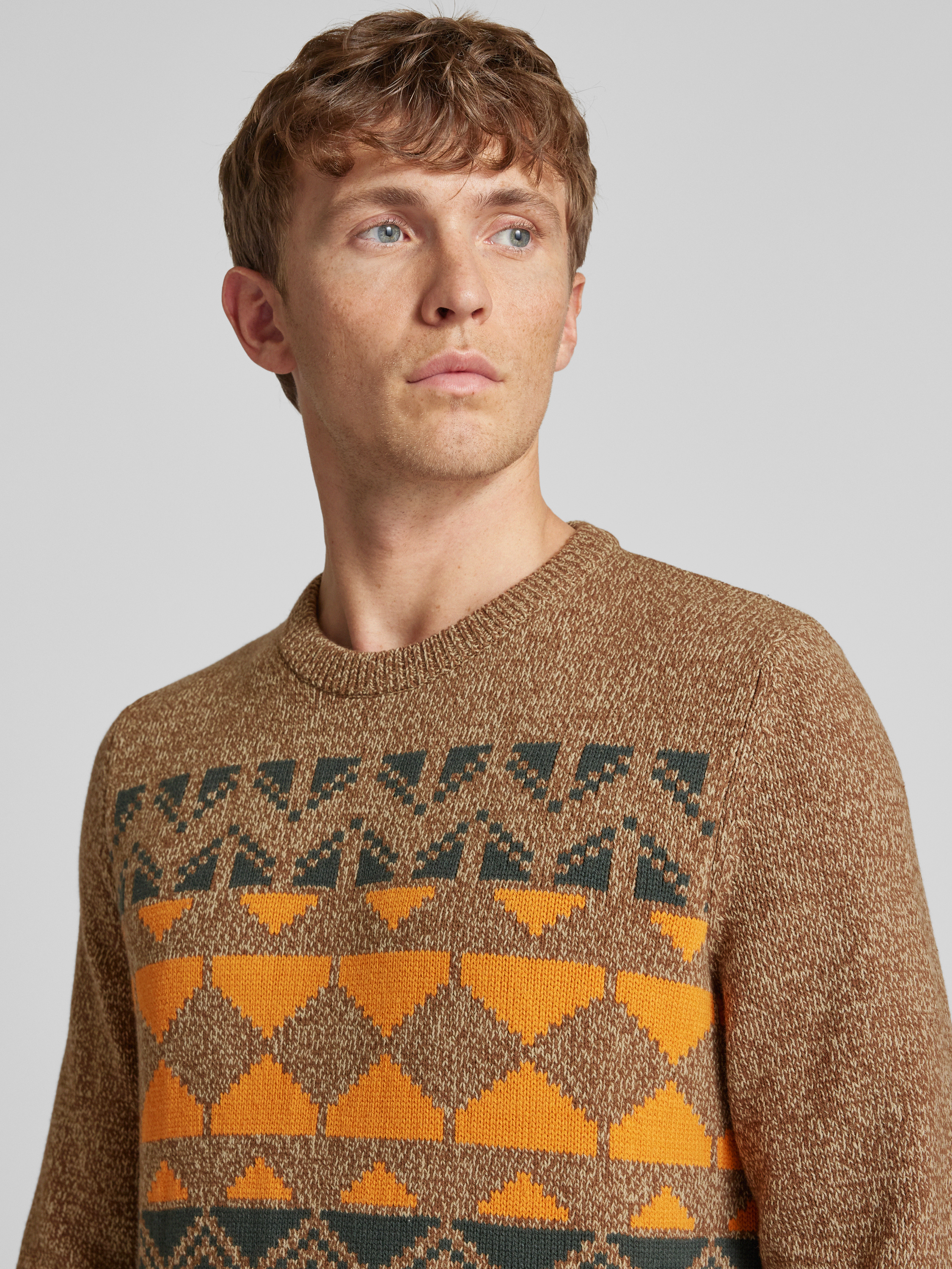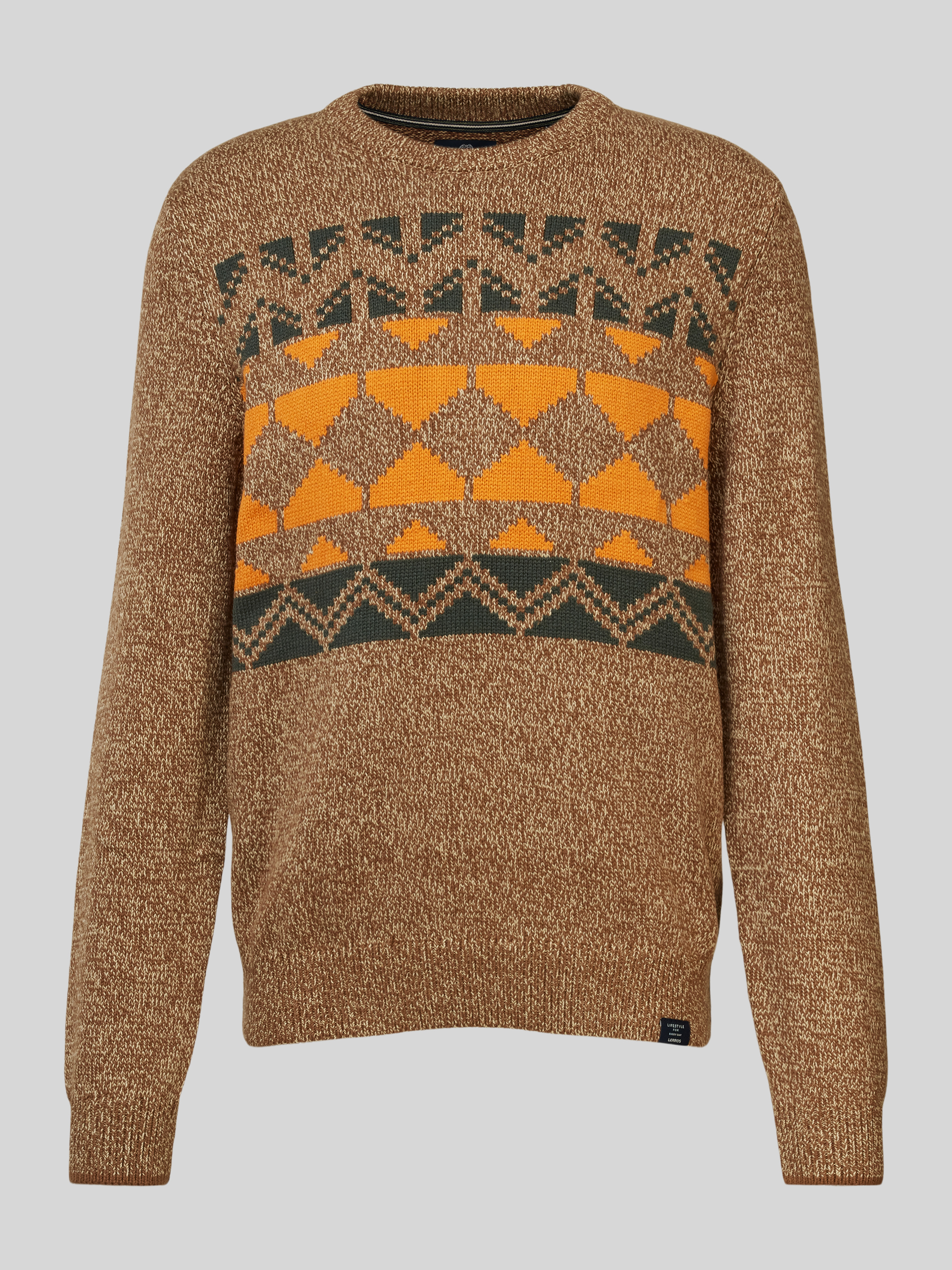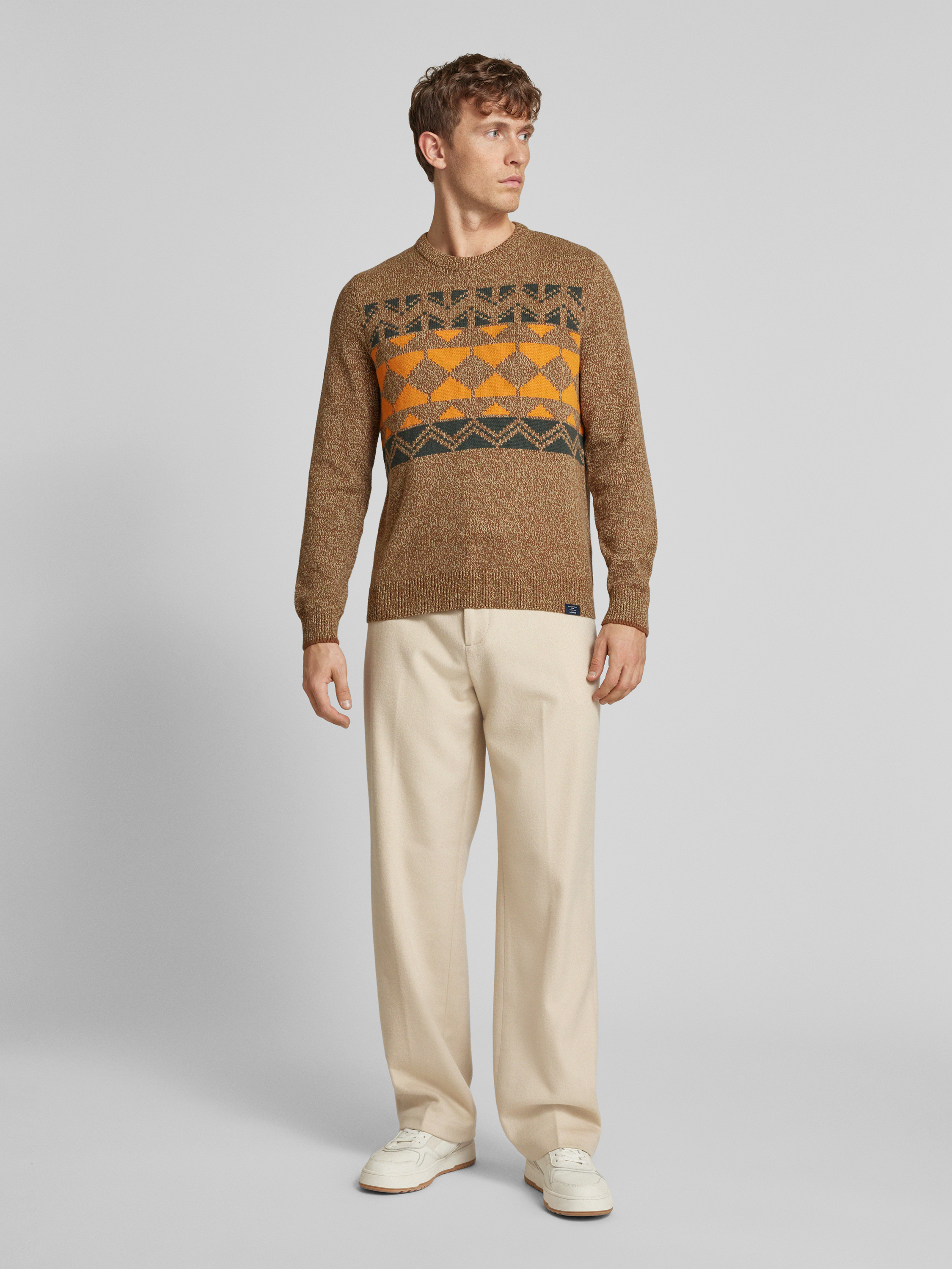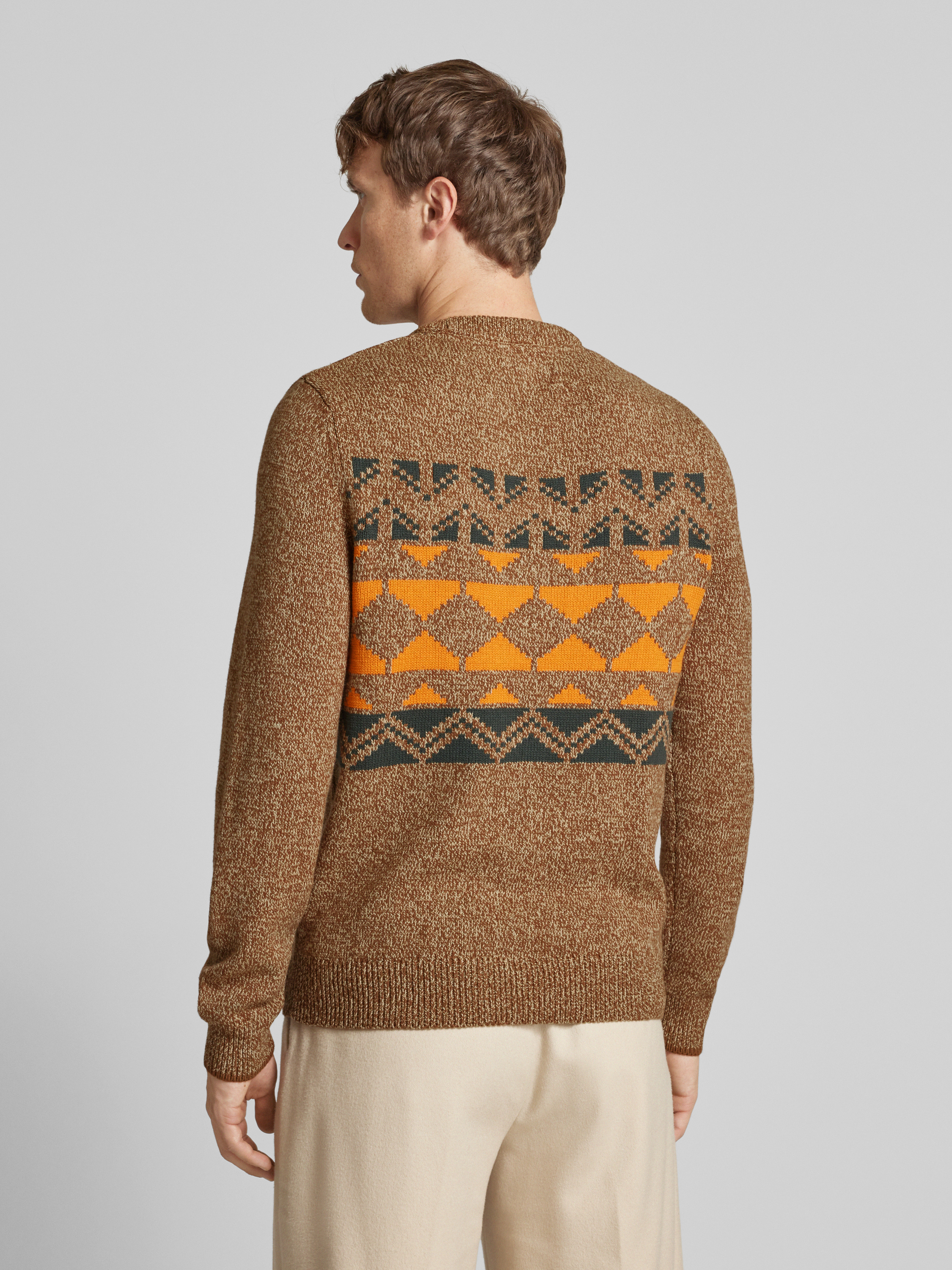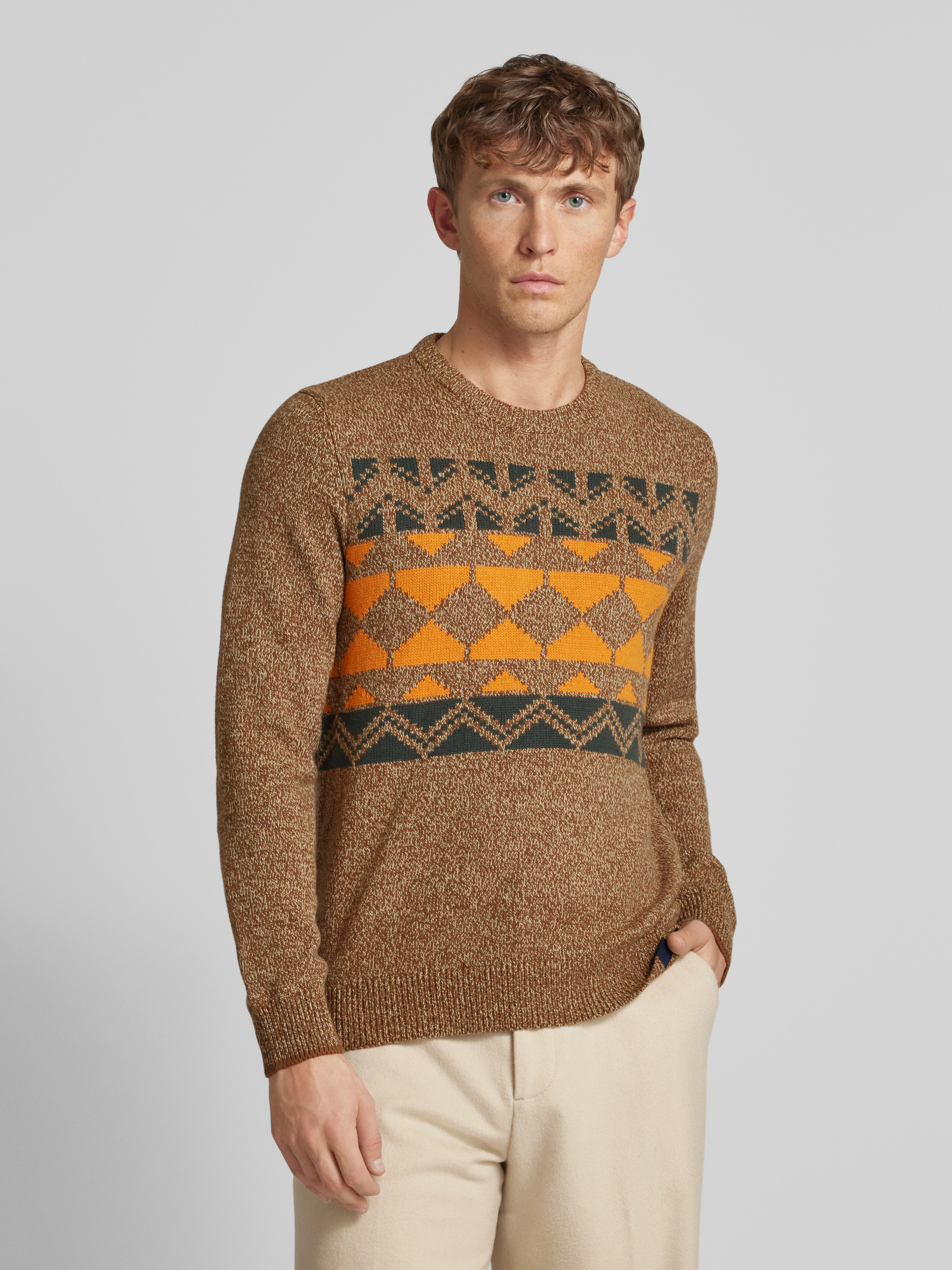 Sweter z dzianiny z okrągłym dekoltem - średniobrązowy