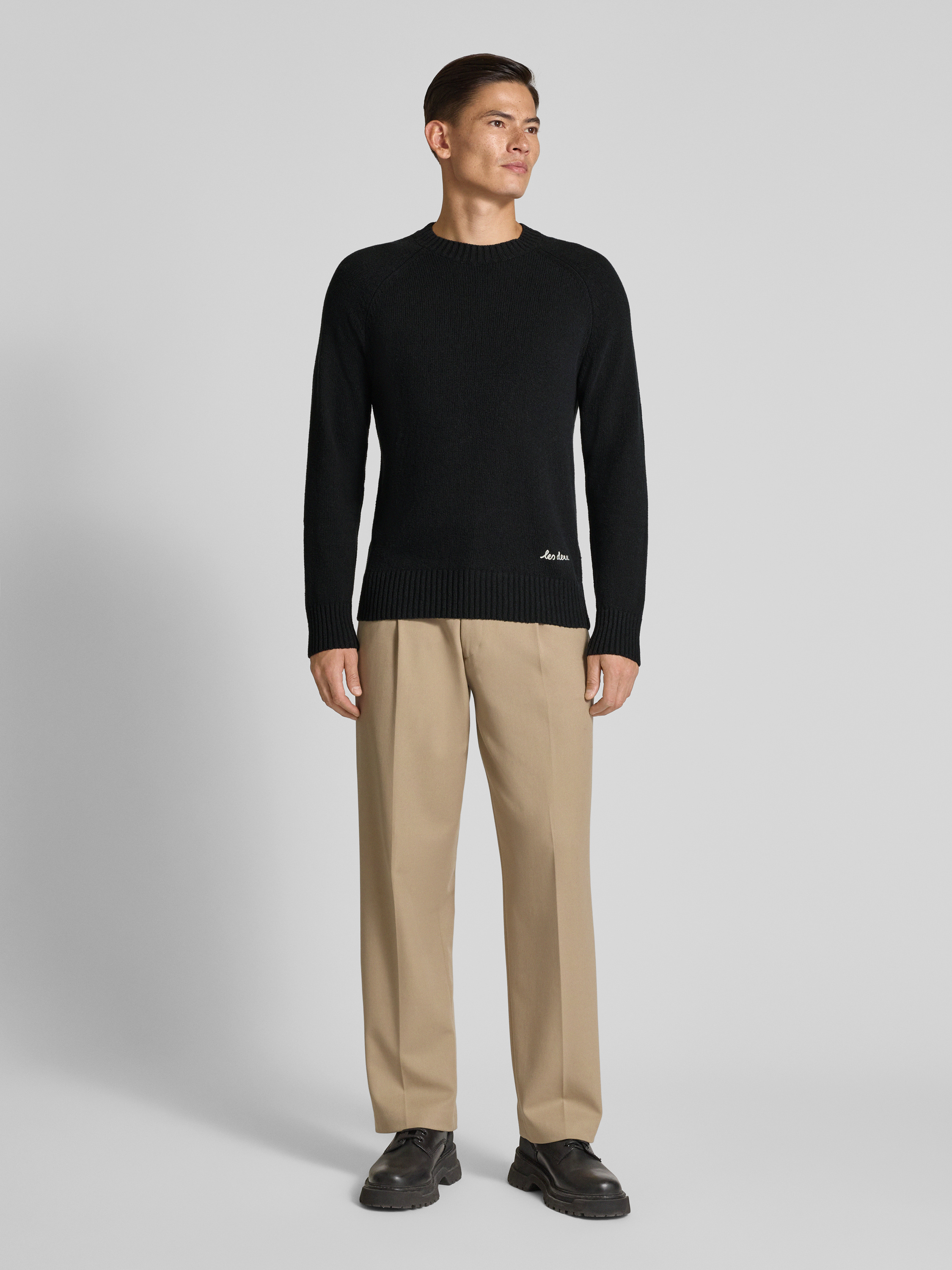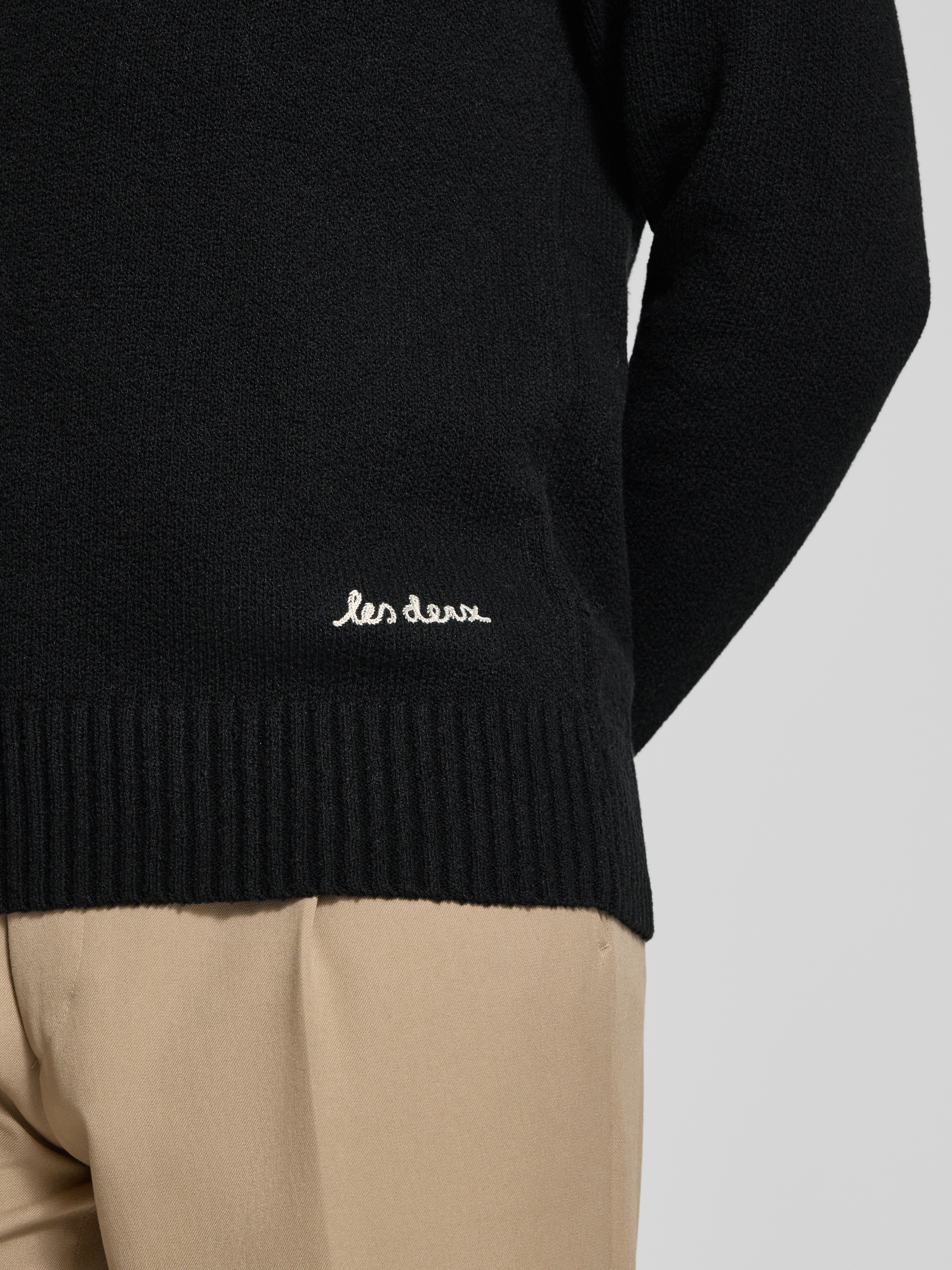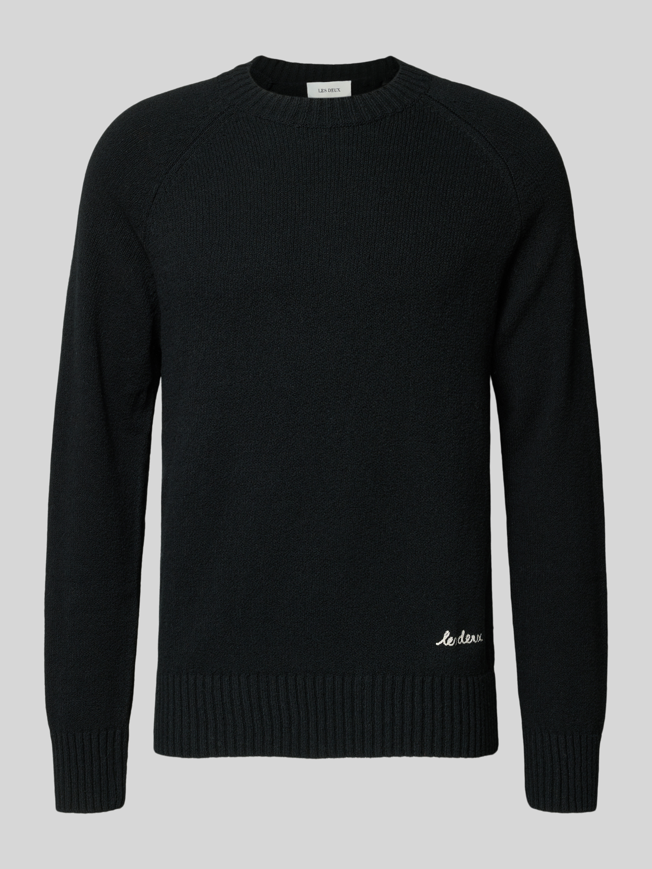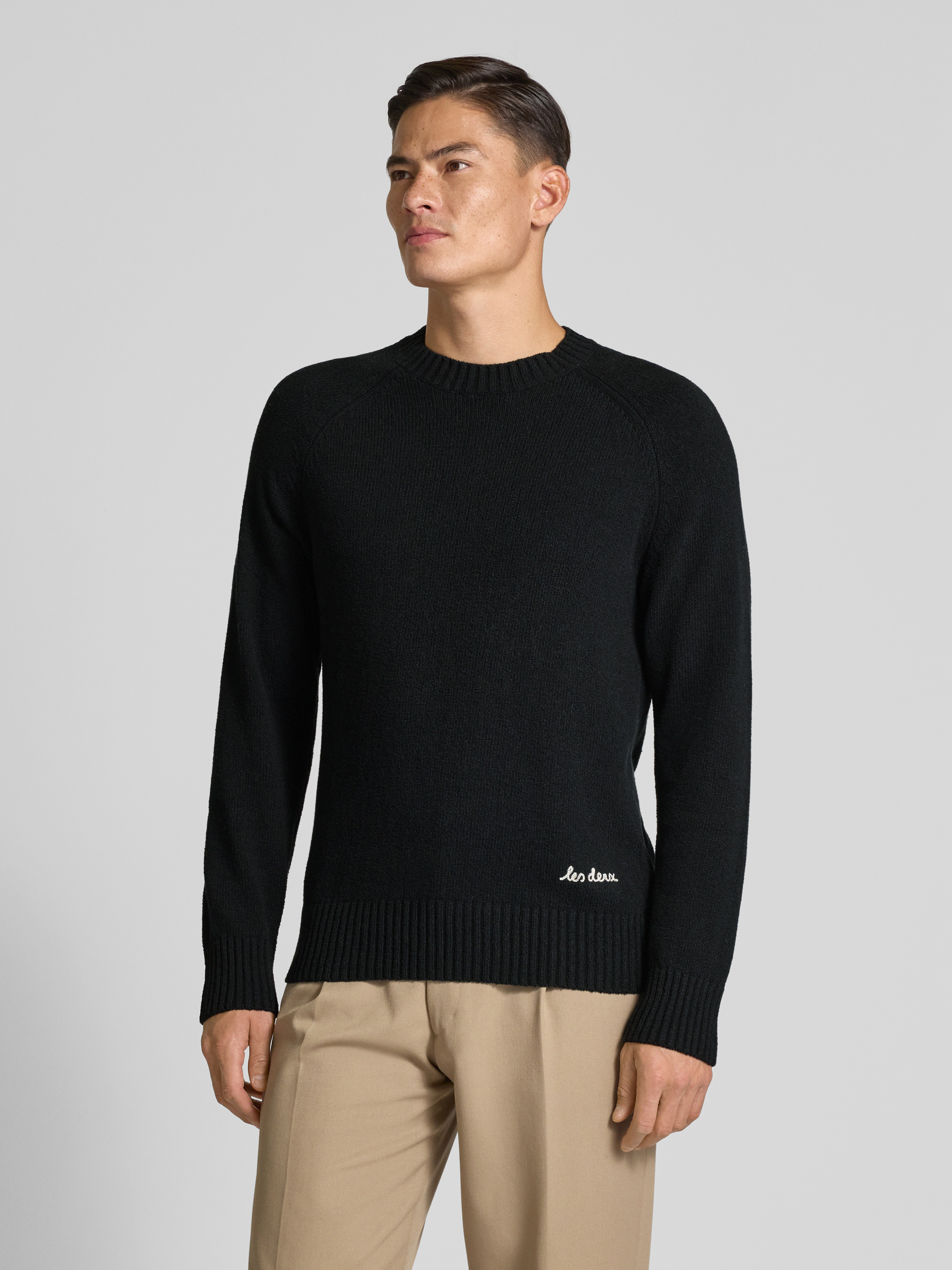 Sweter z dzianiny z prążkowanymi wykończeniami - czarny