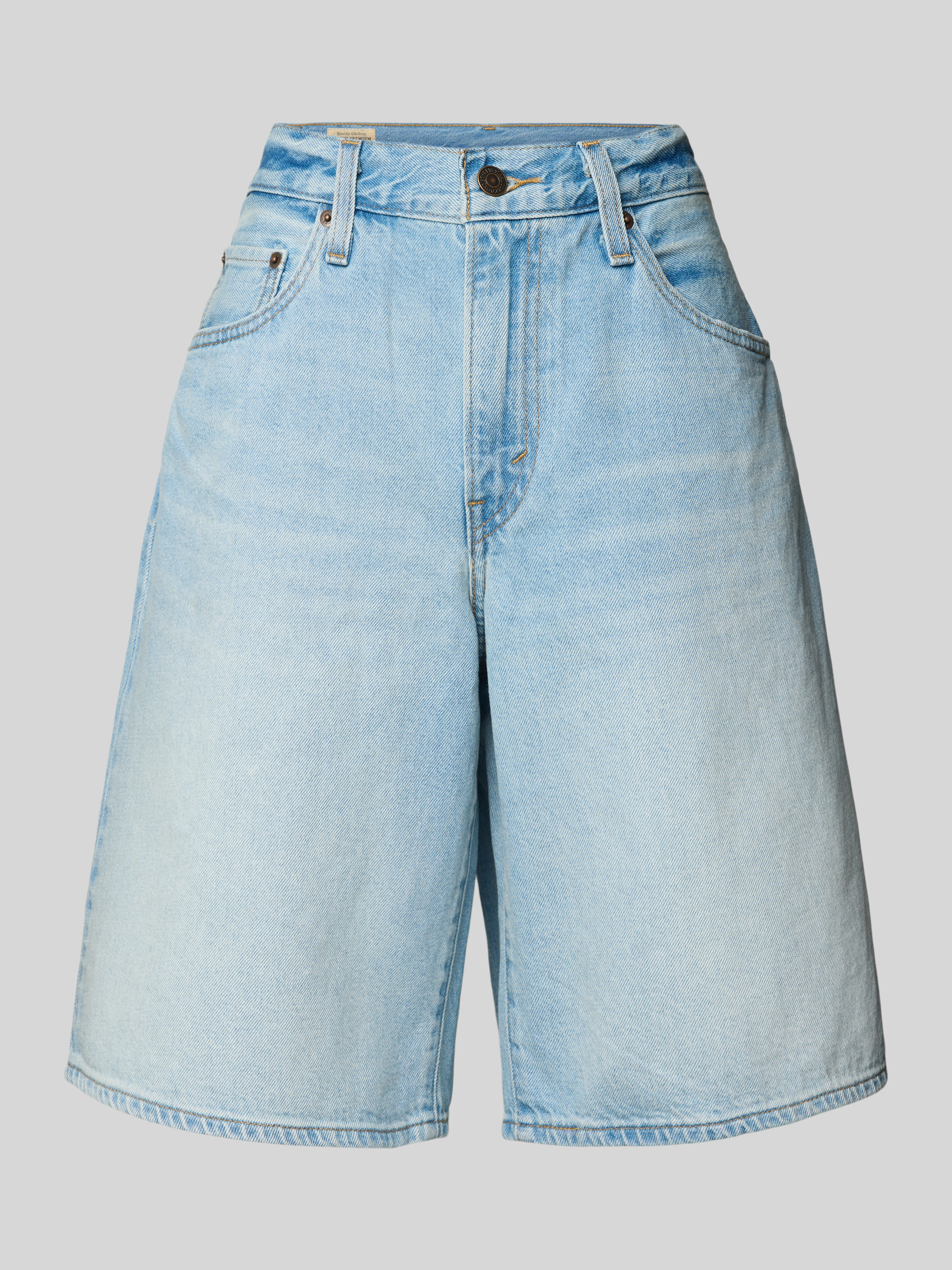 Bermudy o kroju baggy fit z przetarciami i wpuszczanymi kieszeniami - jasnoniebieski