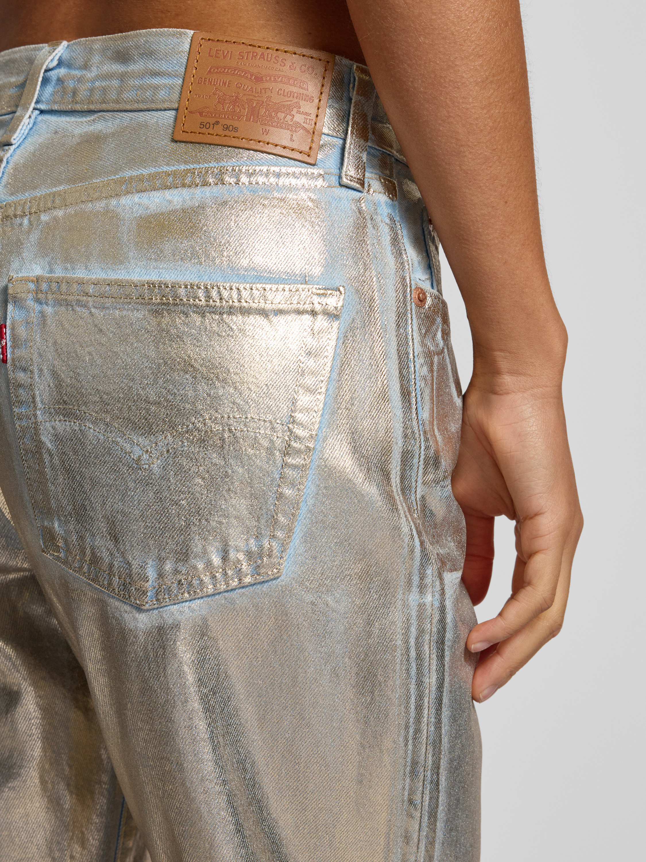 Jeansy o luźnym kroju z 5 kieszeniami model ‘501’ - metaliczny niebieski