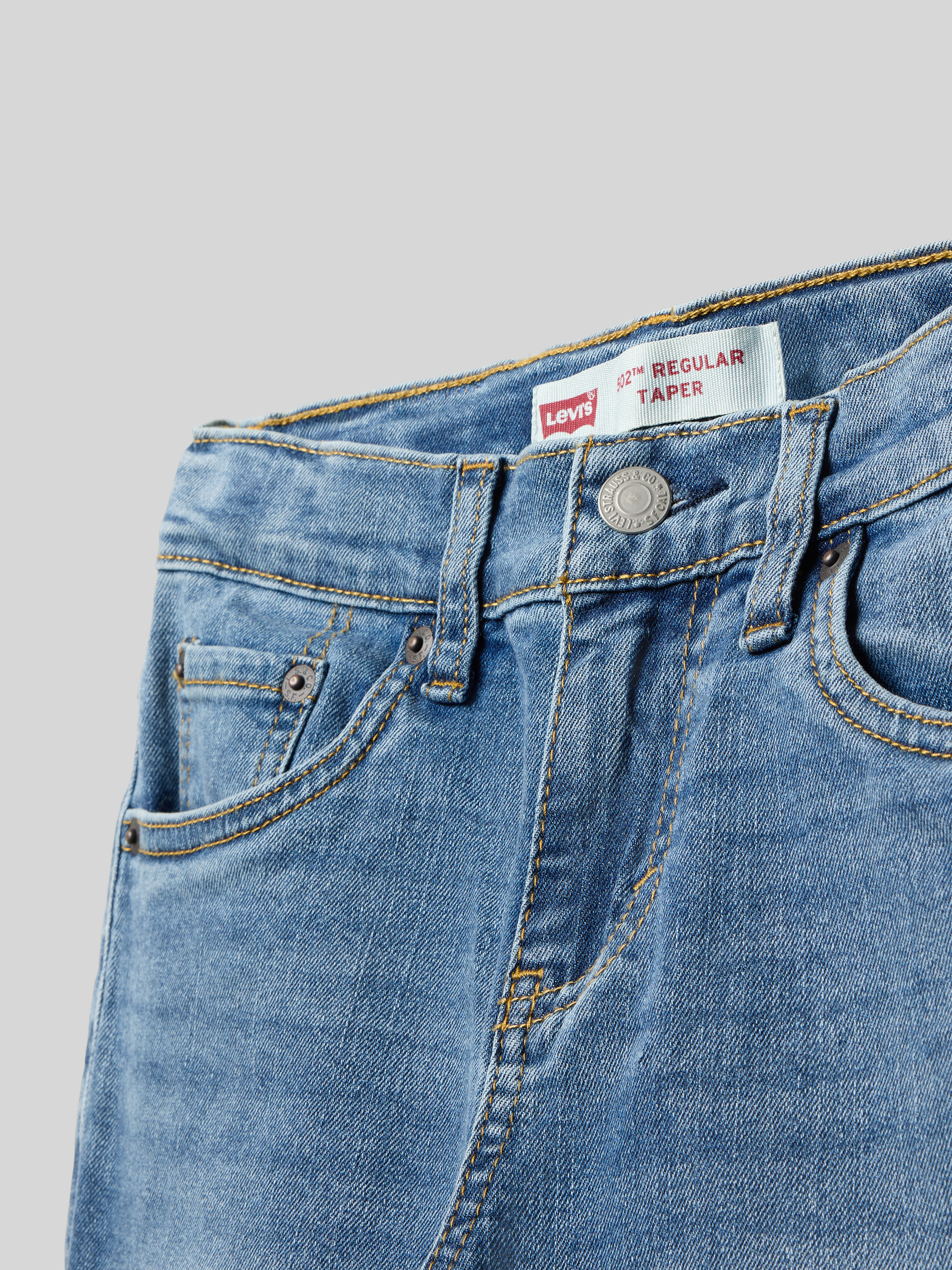 Jeansy o kroju tapered fit z 5 kieszeniami - niebieski