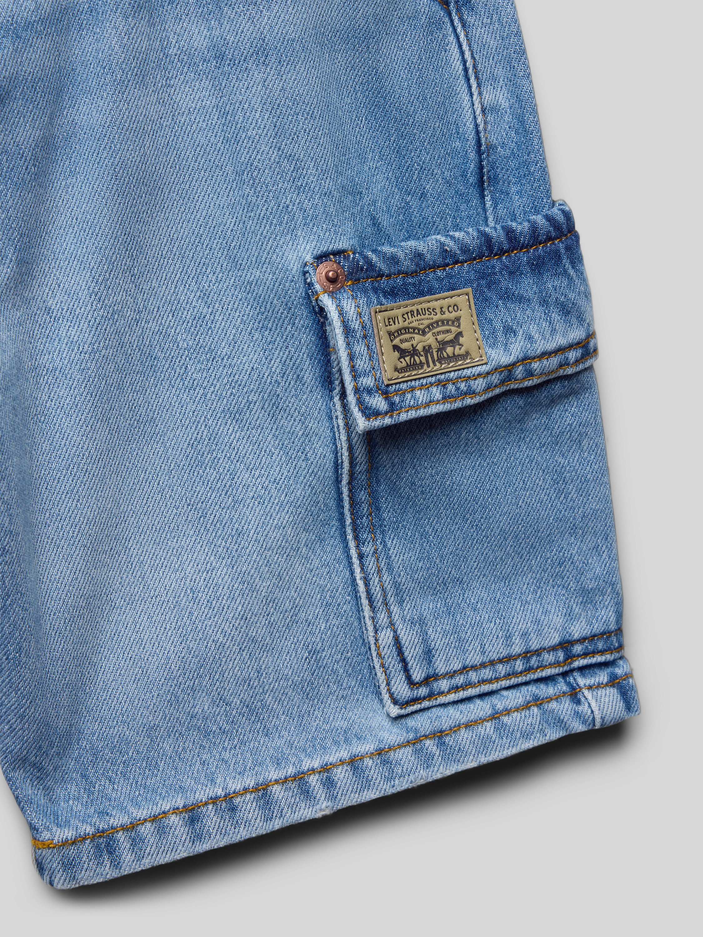 Szorty jeansowe o kroju relaxed fit z kieszeniami cargo - niebieski