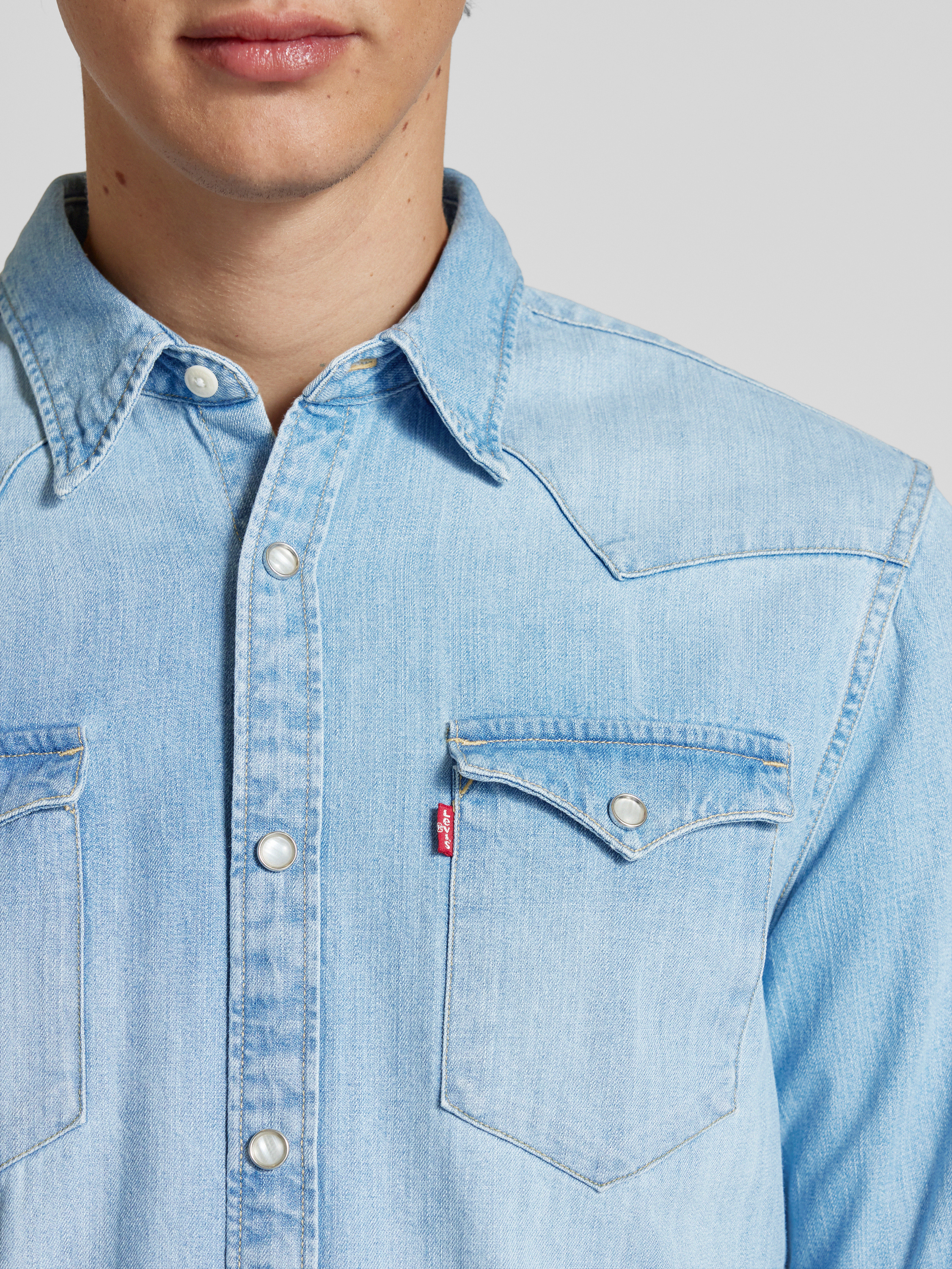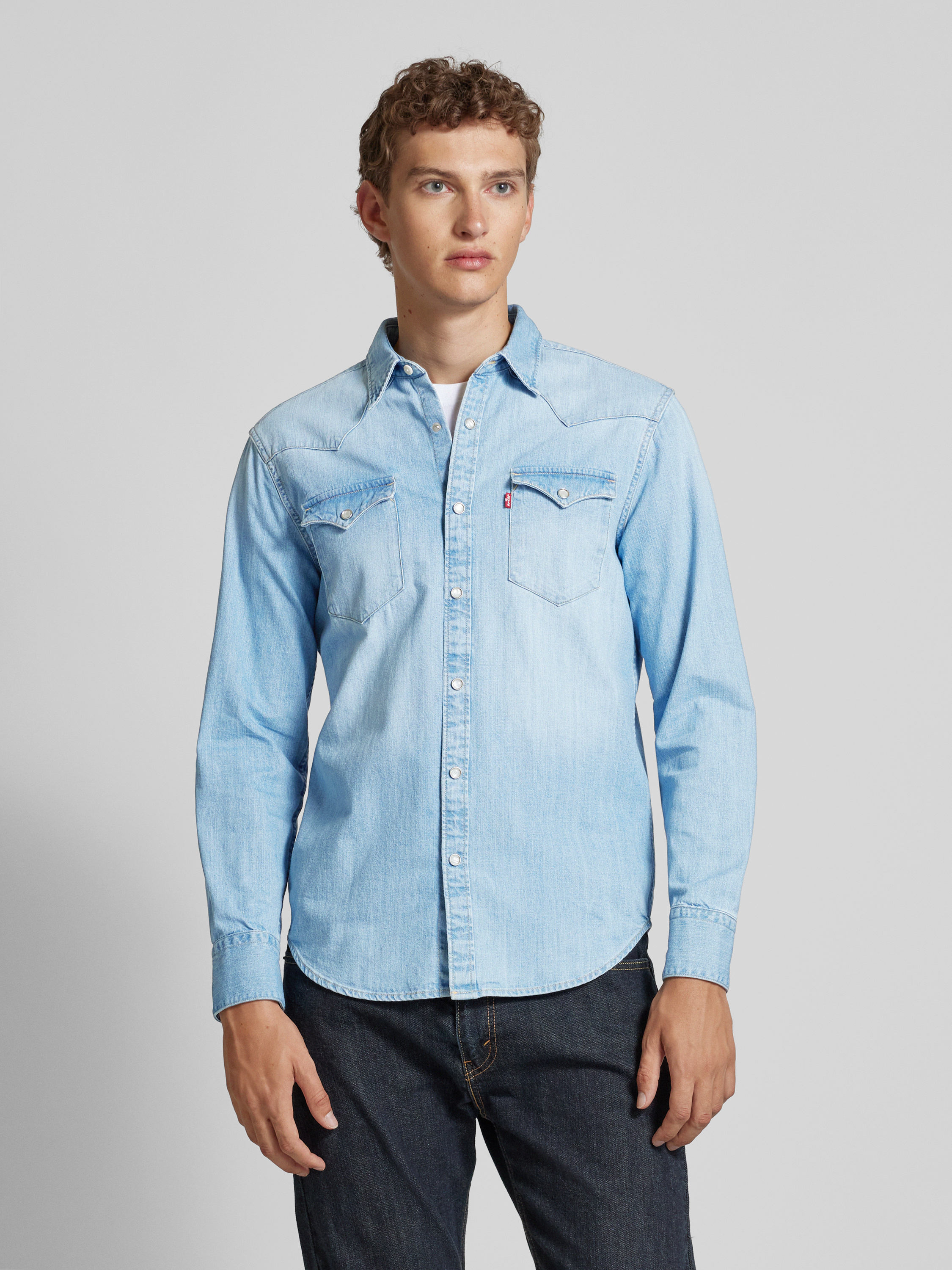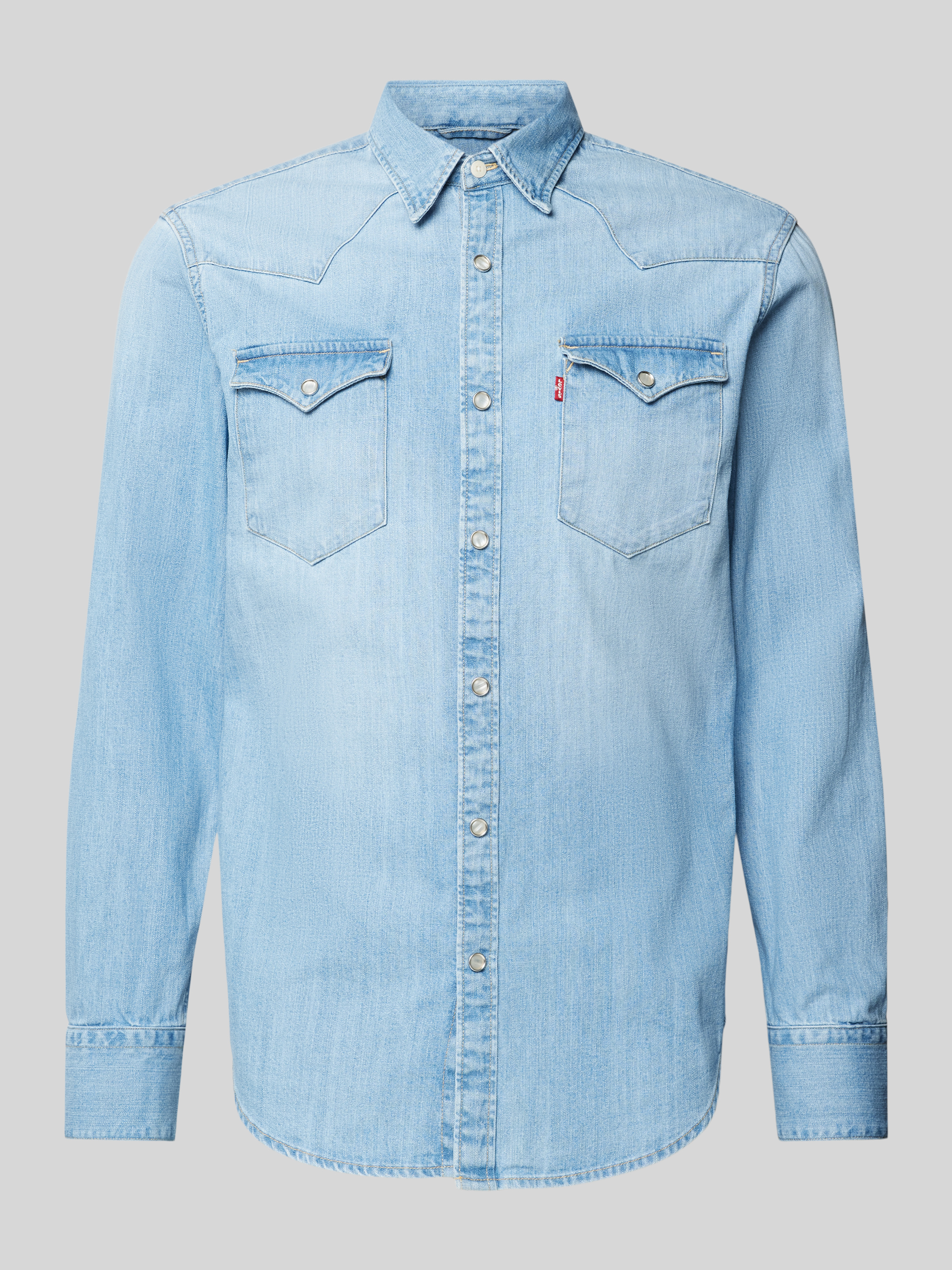 Koszula casualowa o kroju regular fit z kieszeniami z patką model ‘BARSTOW’ - jeansowy niebieski